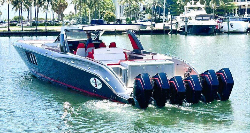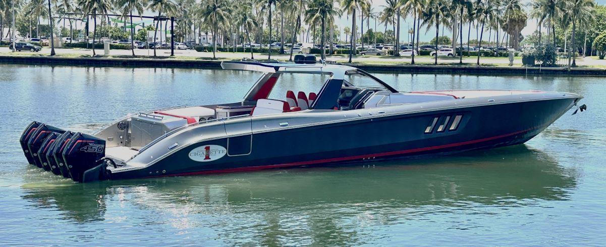 New to the market is a beautiful 59 Cigarette Tirranna repowered with (6) 450 H.P. Mercury Racing Engines with only 9 hours (Installed 6/2023) and full warranty. This is Cigarette's flagship boat with its racing background and luxurious interior and incredible attention to detail she will not disappoint. Just to highlight a few of the options on this absolutely loaded boat she is equipped with a Seakeaper 6, diesel generator, bow and stern thrusters, monster JL Audio sound system, real teak decks throughout. If you are looking for the absolute best in offshore performance and luxury then this is it.
