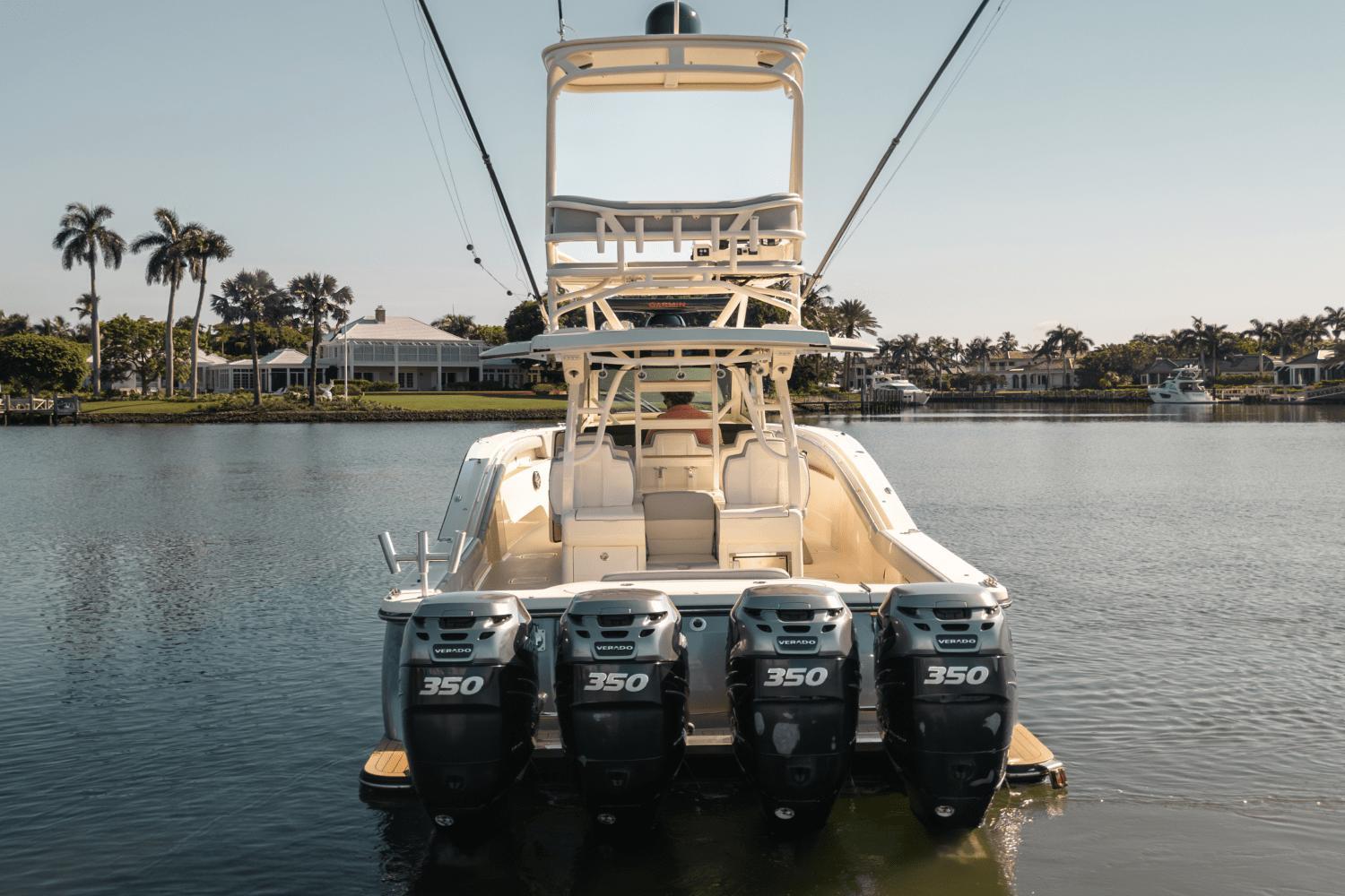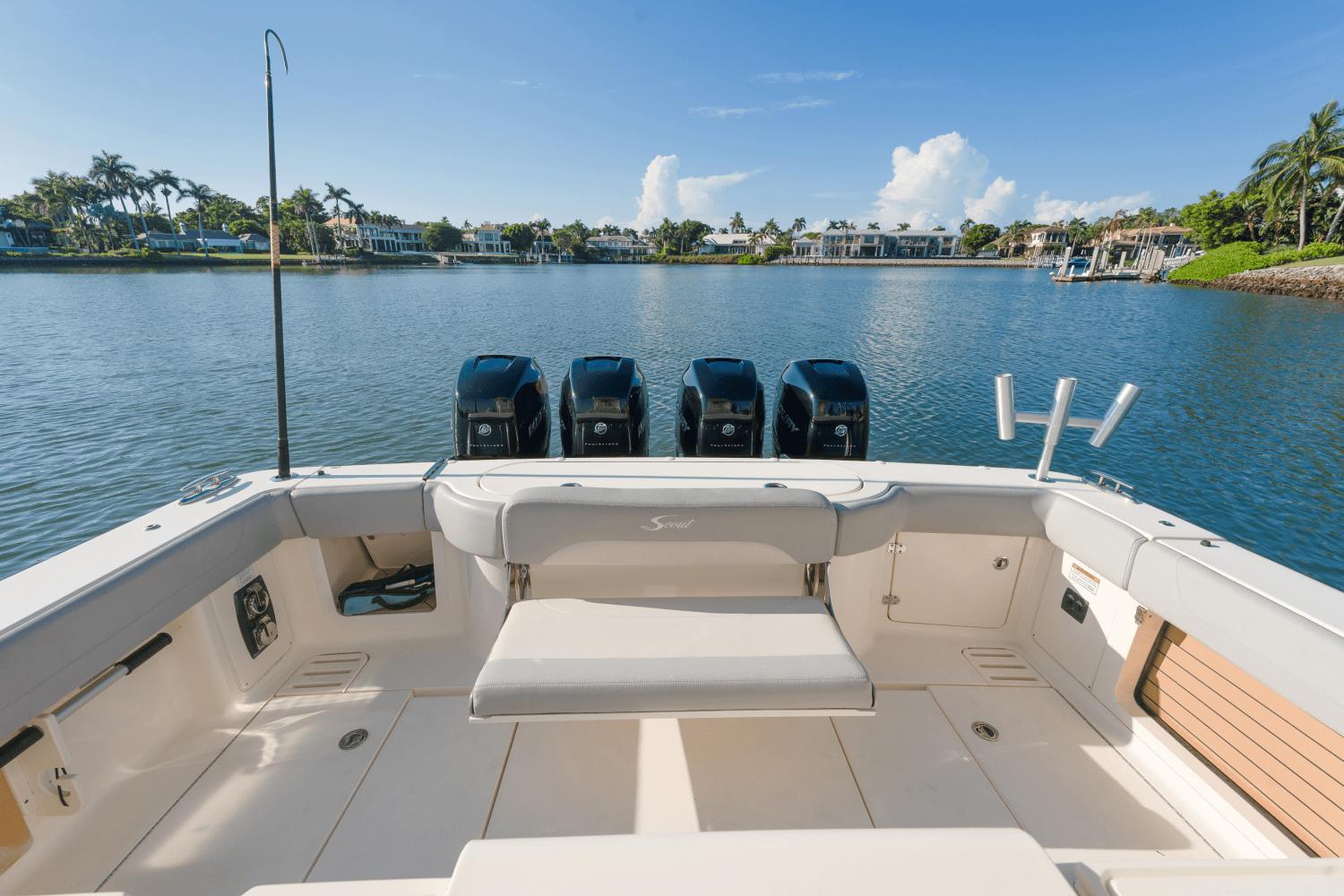 The Scout 420 LXF is an industry leader in the luxury center console fishing boat arena.It has enough room for a large group of guests, whether you’re going sport fishing or sunset cruising.This incredible vessel delivers a level of comfort, space, and convenience that will rival any yacht on the water.Highlights include Seakeeper, Sure Shade, Hydraulic Beach Platform, Retractable Rocket Launchers, a Sea Lion Portable Dive System, and Underwater Lighting (7).The cabin features a wine cooler and 2 single beds that easily convert into a queen.There are 605 engine hours on Quad 350HP Mercury Verados.Located in Naples, Florida.