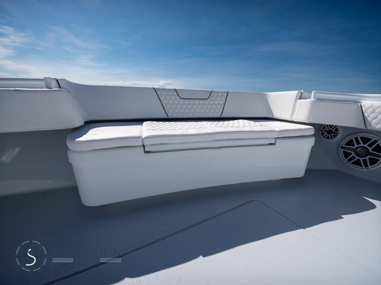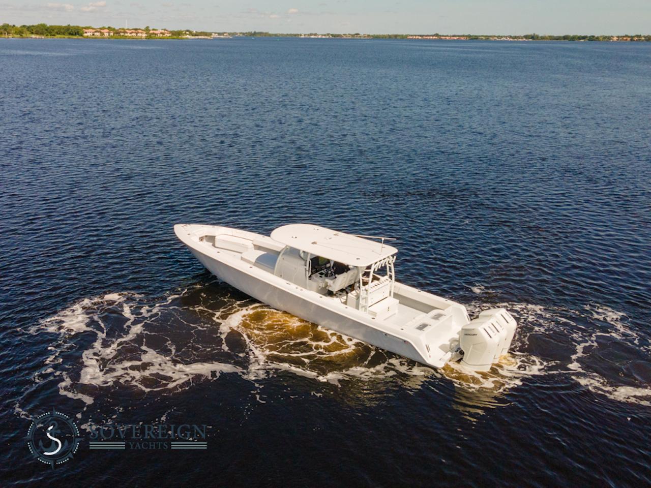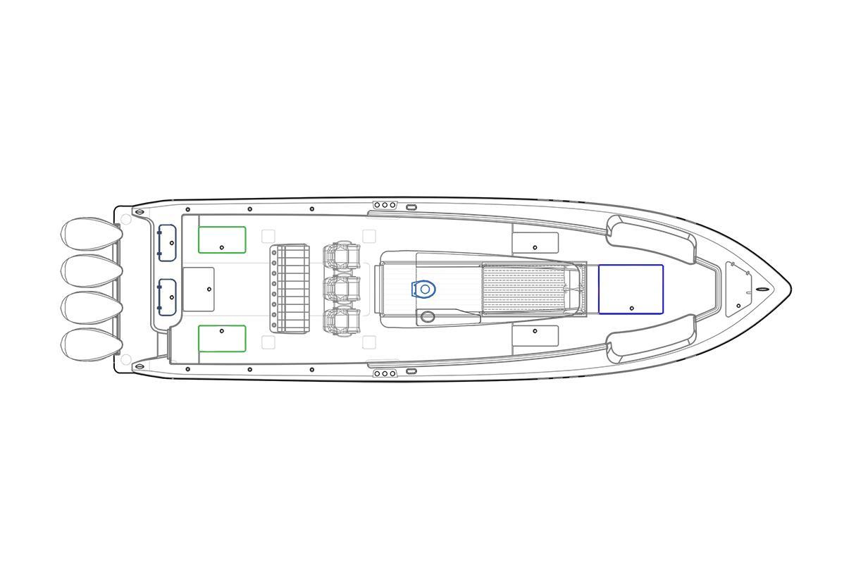 Introducing the 44CB, combining the unparalleled fishability of the 44ST with room to escape the elements. Equipped with a console berth, the 44CB excels in the comfort and functionality needed for those long canyon runs. With a maximum power rating of 2000HP, the 44CB will get you to the grounds quickly and comfortably.