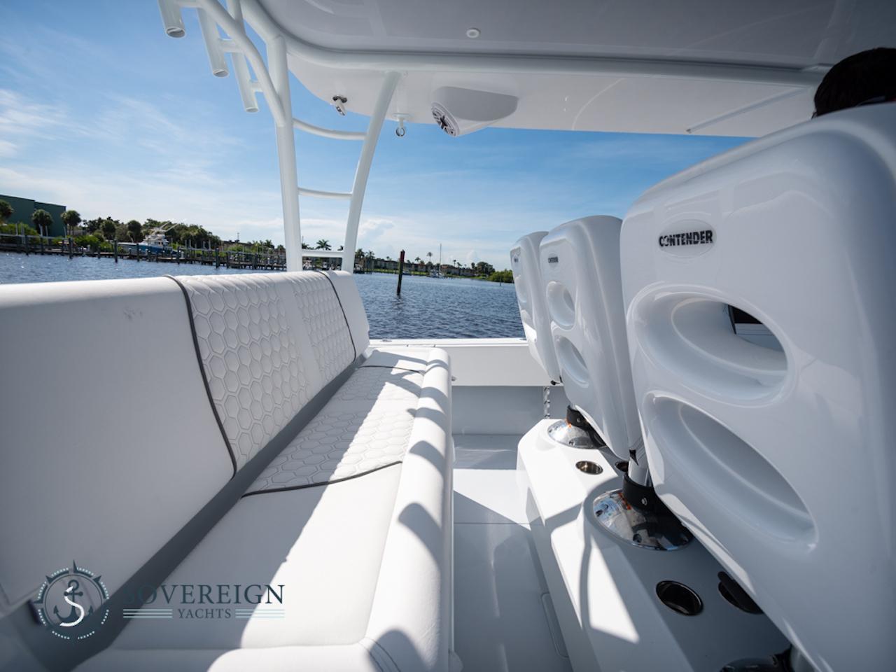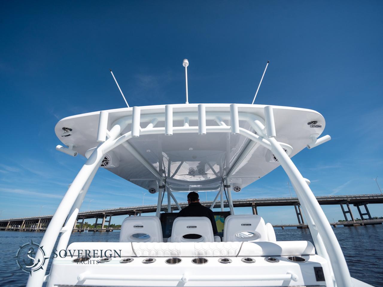 Dealer Demo - Contender 44 Console Berth 2024Triple 600 Hp Mercury Verado 600 XXL Cold Fusion White 7.6l V12 with 29 hrs.Cabin And ElectricalBattery W/Switch (Additional)Bilge Pump W/Switch (Additional)Console berth, Air Conditioning, 12-VConsole berth, Bed, 42" X 80"Console Berth, Storage Under Mattress, On Electric Actuator, 400 Qt.Console Berth, Toilet, Under Electronics Area, Slide-AwayConsole OptionsConsole, Counter, Corian Deep Night SkySwitch Panel Moved Up On DashCustom TopsT-Top, Hard Top, M-Series (Fiberglass) Matterhorn WhiteT-Top, Hardtop, Underside Color, Whisper GrayT-Top, Hard Top only, Additional OptionsT-Top, Hardtop, Fiberglass Flush Mount Led Spreader LightT-Top, Hardtop, Speaker Boxes (2)Enclosure, Polycarbon, M-Series (Isan Glass) With Port/Stbd Wings (Upgrade)Finger Grip Hand Rails on T-TopLight, Puck Style (Led Style) (Ea. Additional)Powder Coating Package (Does Not Include Tower Option) WhiteRod Holders, King Fish (1 Pair)Rod Holders, On T-Top (Ea. Extra)Fishing AccessoriesAft Fish Box-Drain Overboard w/Gulper PumpElectric Reel Outlet, 30 Amp (Each)Gemlux Flush Mtdscoops (Each)Livewell, Light (Ea.)Livewell, Clear Lid (Each)Rod Holders- Console Vertical (Each)Rod Holders, Gunnel (Additional) (Each)Rod Holders, Gunnel - StdRod Holders, Mate Series Cup/Rod Holders (Additional) (Each)Rod Holders, Swivel (Each)Stainless Steel Pump Box, (2) 1500gh PumpsUnder Gunnel Rod Racks (6)Enhancement & ConvenienceAnchor Chute W/Anchor &WindlassCleat, Bow (Pop-Up)Cleats, Pop-Up, Additional to boat (Ea)Cleats, Pop-Up, Mid Ship (Upgrade)Freshwater SystemLadder, Garlick Built In Transom - STBD SideLight, Bilge (LED Style)Saltwater Wash DownShore Power, 30 AmpUnder Gunnel Lighting ...Multi ColorUnderwater lights (Four), MulticolorNavigationCompass High SpeedJoystick Piloting Option, Triple Mercury OutboardsNavigation LightSteering Wheel, Brushed Stainless W/Knob (Edson)Trim Tabs, Livorsi Model 1050Seating OptionsStadium Seating, 44Bench Seat, Rear X- LargeFootrest, Folding, Aluminum for Leaning PostForward Seating, Bench W/CushionsLlebroc forward console & Lounge Cushion Set W/Armrests (Upgrade)Cockpit Coming bolsterStitching, Hexagon Style Medium Opal (Dark Grey)Custom itemsConsole Knee PadCushion For Frigid Rigid CoolerElectronics Package & InstallSeakeeper 3Teak Isle Black Acrylic Panel For Console