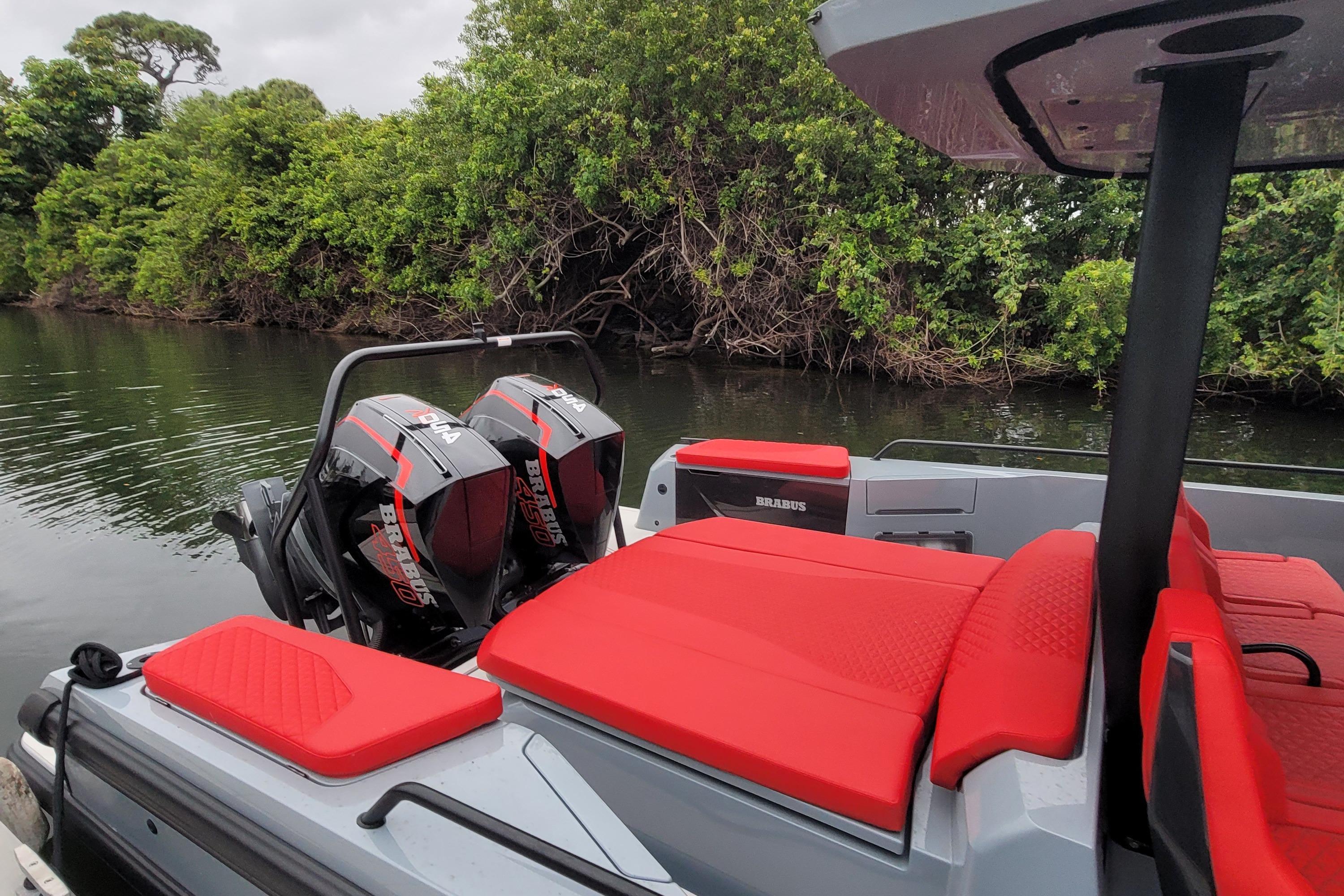 This beautiful 37' Axopar Brabus 900 Sun Top Package is equipped with the following equipment:Retractable Sun TopCanvas Covers for all Seats, Bow Pad, and Helm.Widescreen glass helm multi-touch Garmin chart plottersVHF RadioTwin (2) Mercury 450 hp Outboard PowerMercury JoystickBow sun shade with steel supportsUnderwater lightsHeadWindlassFusion Stereo with JL Audio Speaker and (2) JL Audio SubsBow ThrusterBrabus Line Waterski FrameCockpit Drawer RefrigeratorSide RailsShore Power with Battery Charger.