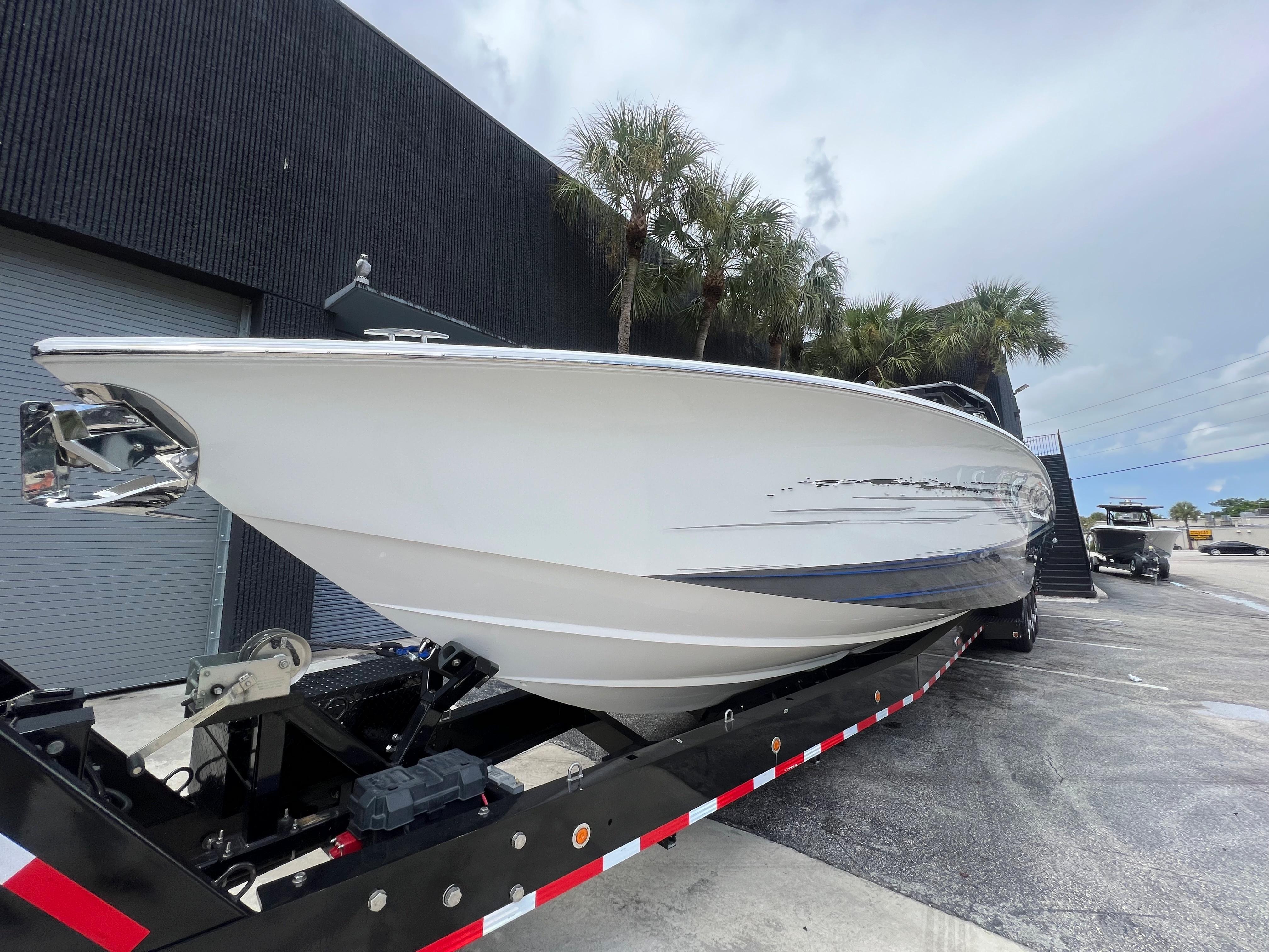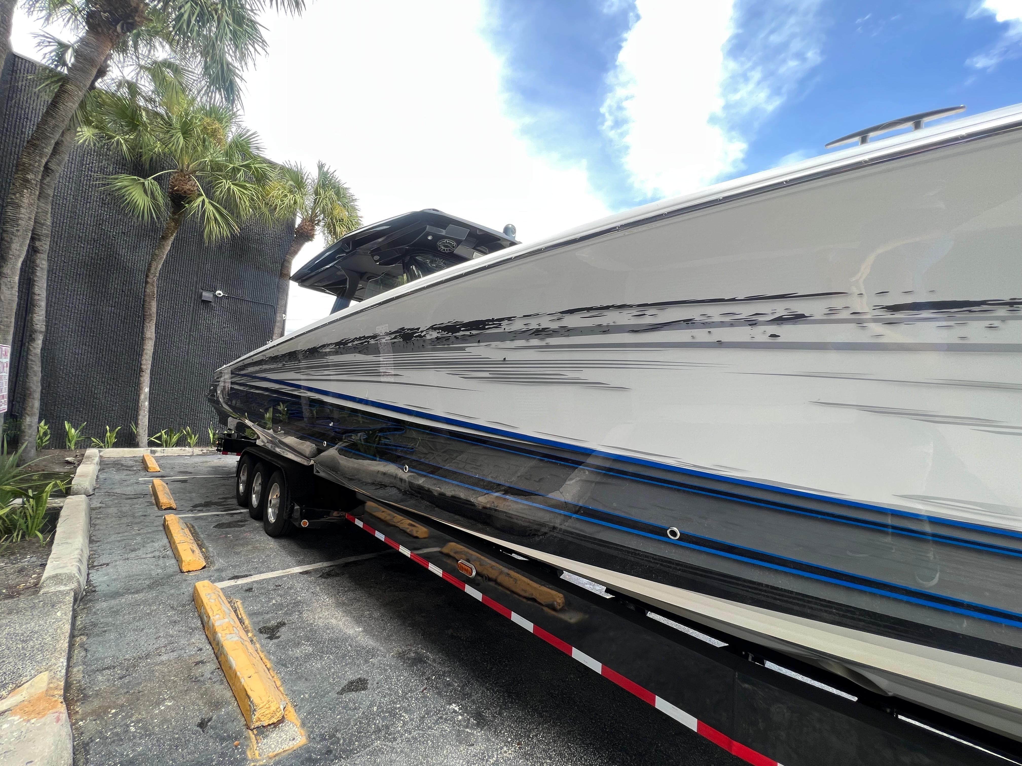 The nicest and most exciting Nor-Tech 450 Sport to come to market, the pinnacle of center consoles and the epitome of the Nor-Tech lifestyle. Sporty with all the amenities of luxury. Extensive service records, freshly detailed ready for new owner!Expanse Lounge seating in the bow and stern , huge deck spaces, upgraded materials in excellent condition. Full wet bar, in deck stowage, high end sound system entertainment center , cold-plate cooler to insulated fish boxes. Amenities, including a full shower, enclosed head, cabin and helm air conditioner, berth, alcantara upholstery and custom design hull paint.A stunning example with all the wanted features, always stored and cared for in climate controlled specialist facility.