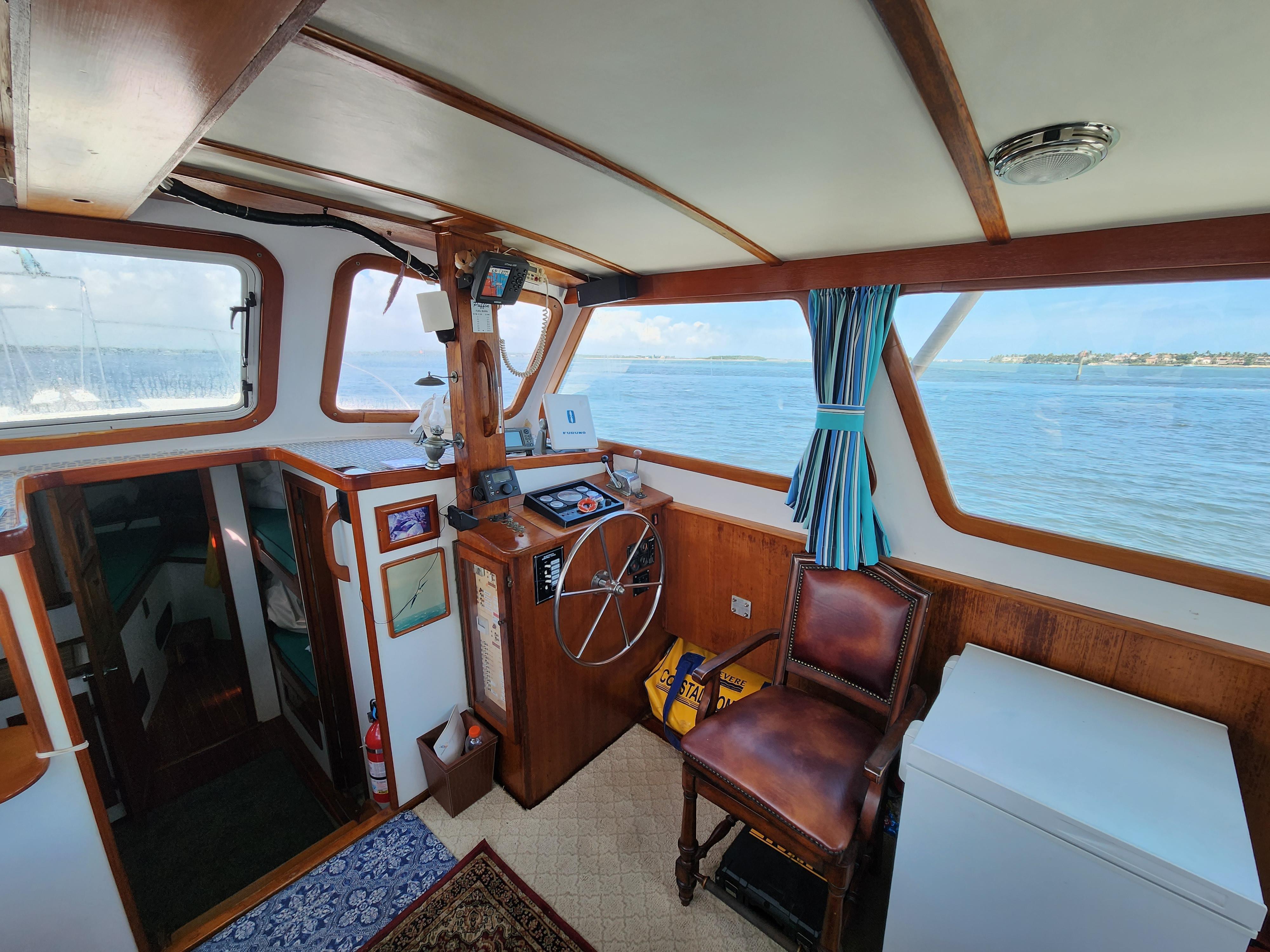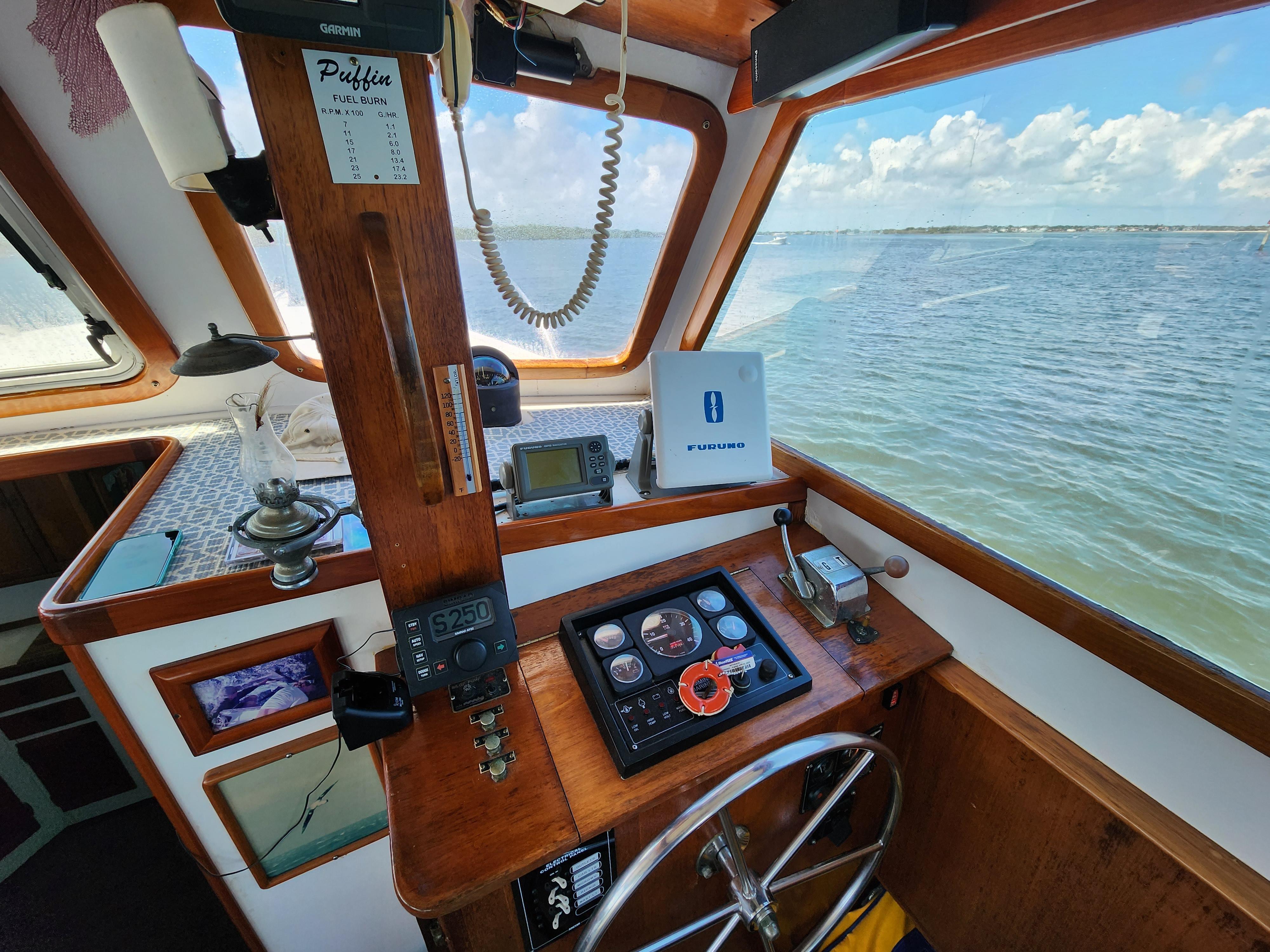 ICOM IC-M73 handheld VHF Radio ICOM IC-M302 VHF radio, lower station. GARMIN GPS map 498 chart plotter, lower station. Garmin 5212 sounder/ plotter upper station. SIMRAD AP 22 Autopilot lower station with remote at bridge. DANFORTH Compass, lower helm MORSE CONTROLS, HIGHNAUTIC STEERING.