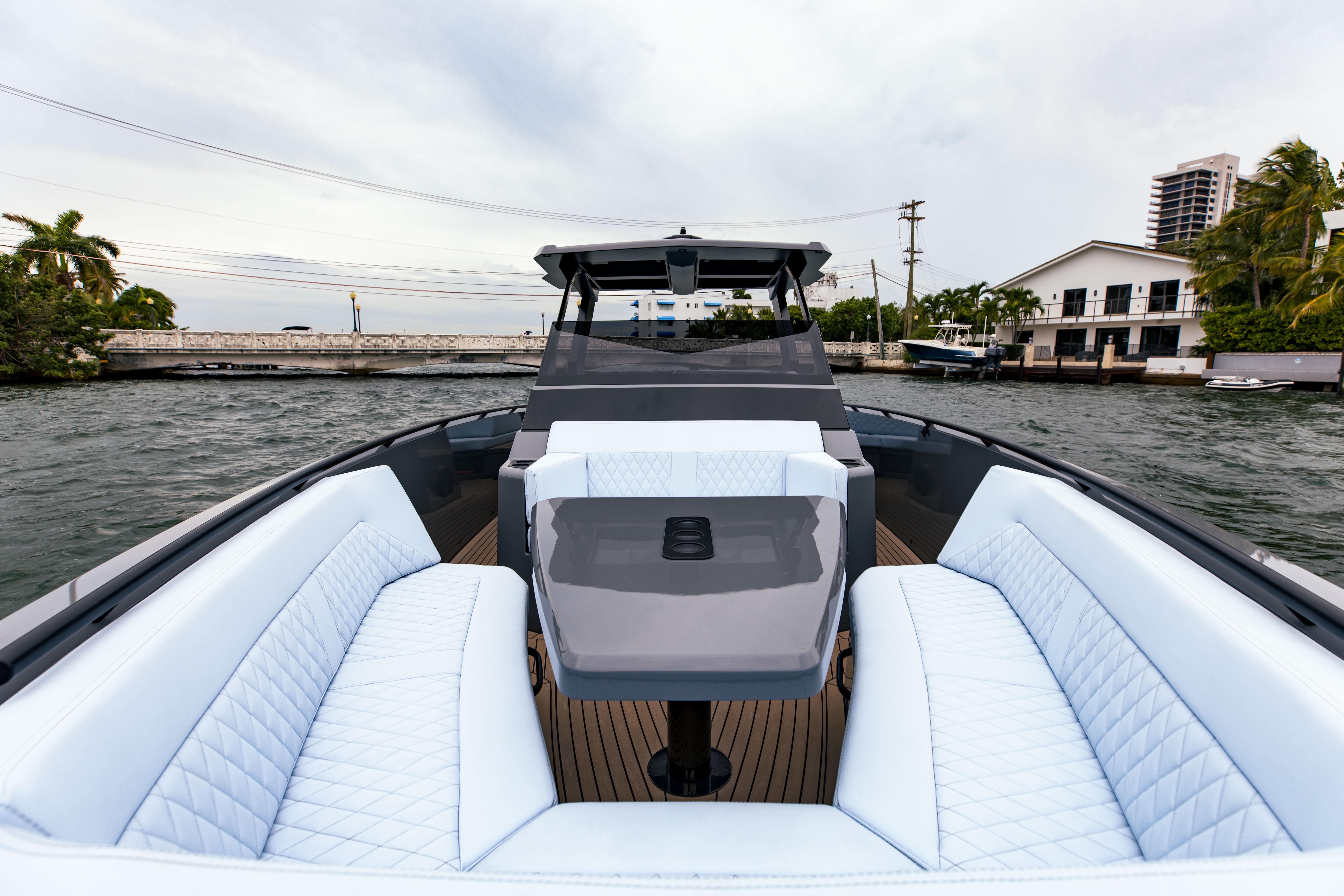 Platinum Warranty! Seakeeper 3!The name synonymous with Dutch Quality and Elevated Luxury, the Vanquish VQ40 lives up to her reputation. Powered with Triple Mercury Racing 450R’s capable of blistering 65+ knot speeds make this VQ40 the ultimate Superyacht Tender. Her sleek Paint to Sample Porsche Gray exterior and Silver Guard Sky Blue cushions make her a head turner at every angle.