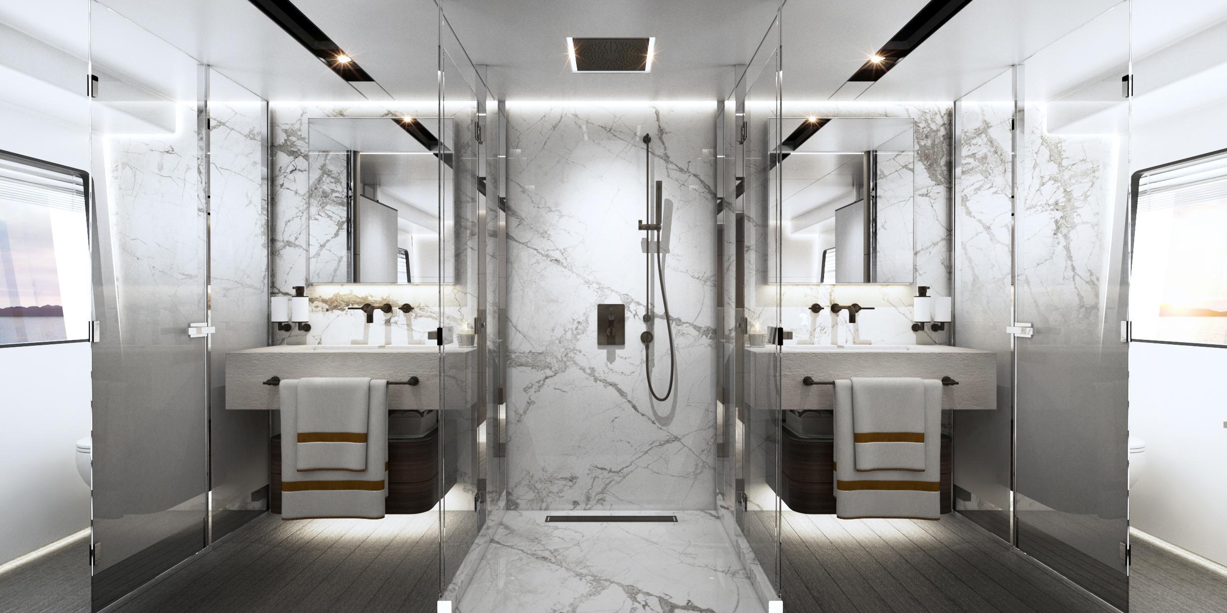 - Salon, Galley, Dining room, day head and helm station on main deck (2 options)