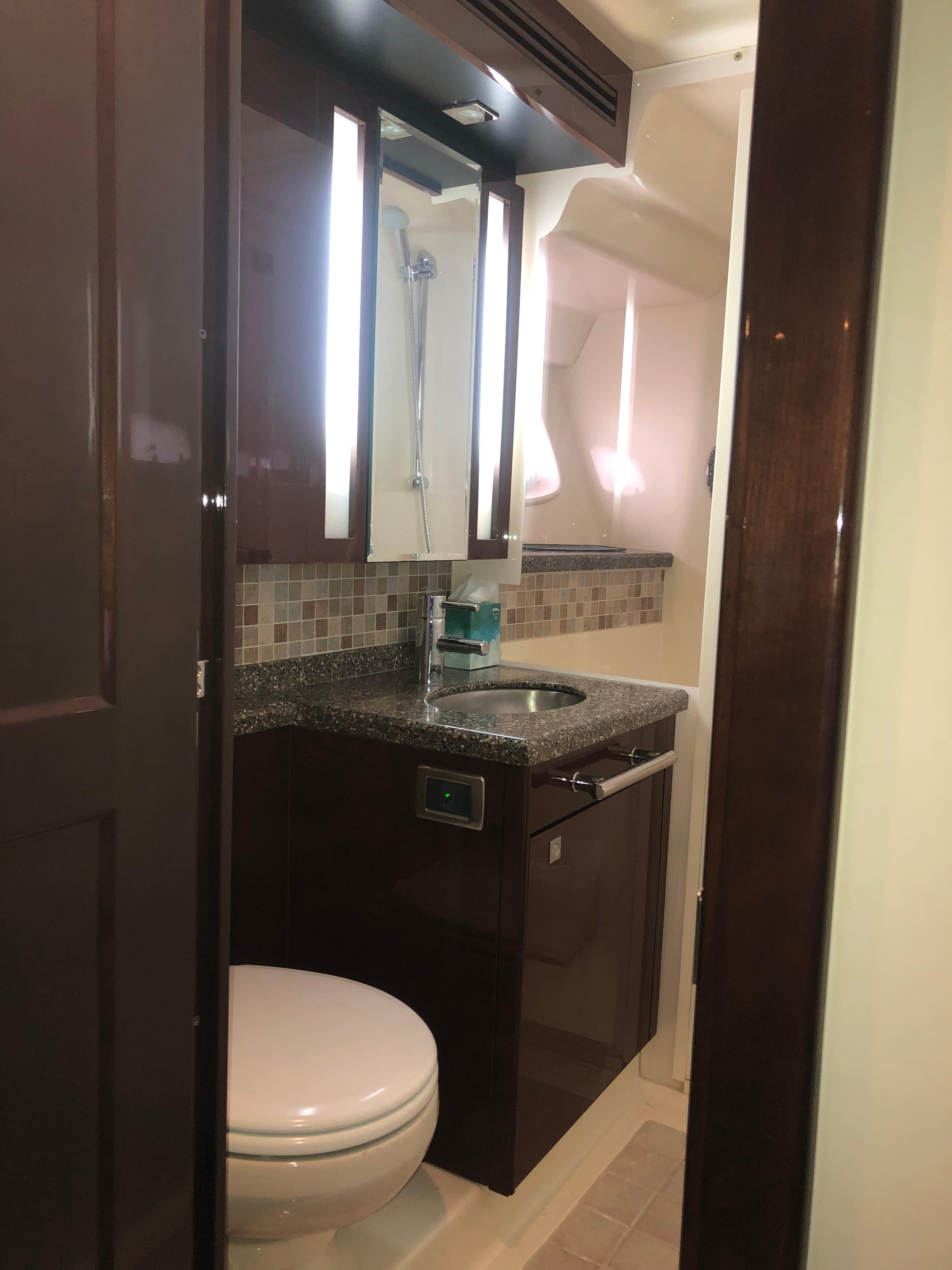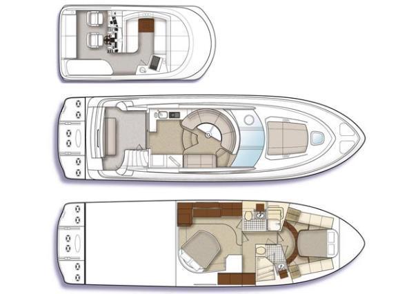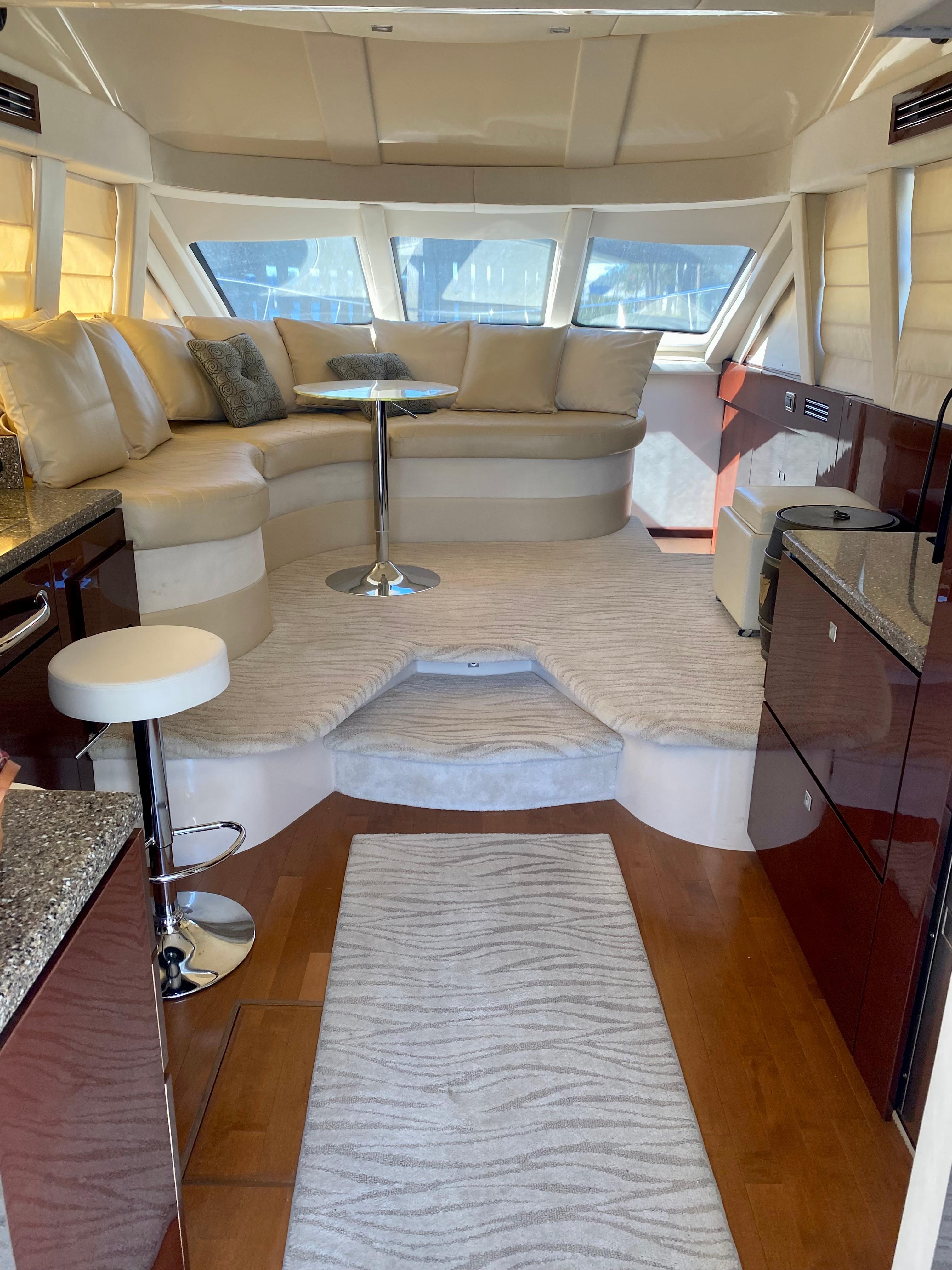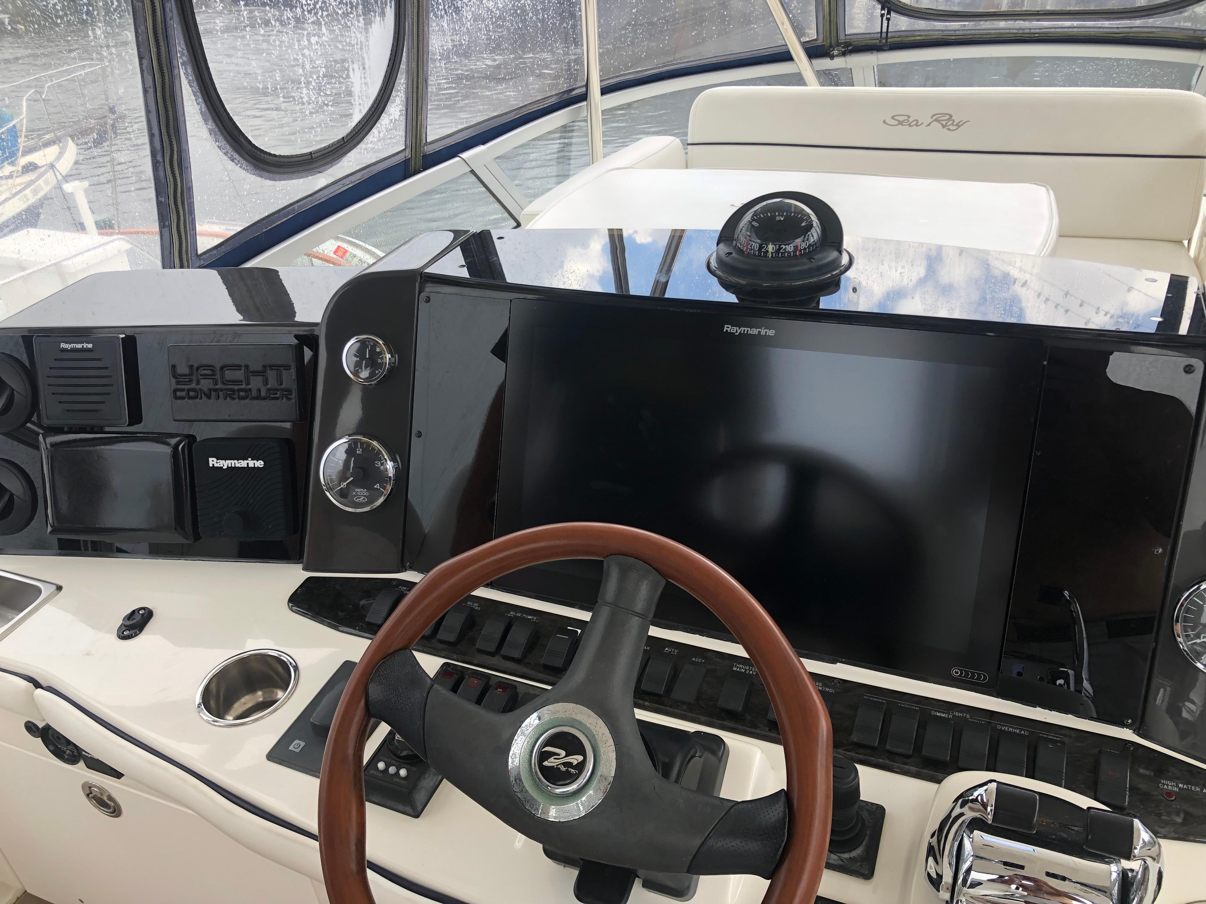Built on a modified-V hull with cored hull sides and prop pockets to reduce shaft angles, the two-stateroom interior of the Sea Ray 470 differs from most sedan floorplans in that the galley is positioned aft in the salon rather than forward. The dinette is forward, two steps up from the salon level. Below decks, an opulent, full-beam master stateroom is amidships while the VIP guest stateroom is forward. Both are fitted with queen island berths and flat-screen TVs. The flybridge, accessed via wide bridge steps with a closing cover, is arranged with the helm aft and lounge seating forward. A fiberglass hardtop and extended swim platform were standard. List of upgrades In addition to all options listed on original bill of saleInterior updated by previous owner in 2015Yacht Controller with Joystick & Dual Channel remote added in 2016Bridge staircase & seating are updated with Sea Deck teak patternBridge enclosure, cockpit enclosure & bow cushions replaced in 2021Yacht exterior & bottom are under contract for cleaning monthly + polish 2x year General Service completed early 2023 - fluids replaced in motors, turbos & generator. All raw water hose clamps replaced (preventative), STB shaft seal replaced.Yacht was hauled in 2022 for bottom paint, zincs & engine raw water scoops were replaced. Dual Raymarine 3D Real Vision transducers installed. Yacht was surveyed durring haul out for new insurance (available on request).Recently completed electronics mechanical upgrades - Connected Yacht via Peplink router, Wi-Fi / Cellular Antenna / AT&T SIM Upgraded to Smart TVs in Salon & both berths (HDTV & Streaming) Ray Marine 22? Axiom XL Plotter, Lighthouse 4.1 Ray Marine Cyclone Radar Ray Marine RVX 1000 Real Vision 3D, Sidevision, Downvision, High CHIRP sonar Ray Marine EV 200 Power Evolution AutoPilot, EV-1 Sensor core (AI) Ray Marine CAM 200, AR 200 augmented reality Ray Marine Ray91 Modular Dual-Station VHF Radio with AIS - Wired Handset, Passive Speaker Isotherm Cruise Stainless Steel 195 Marine Refrigerator/Freezer Dometic Air conditioners ? Bridge, (2) Salon, VIP & Master Staterooms + new water pump Fresh water pump with bladder tank