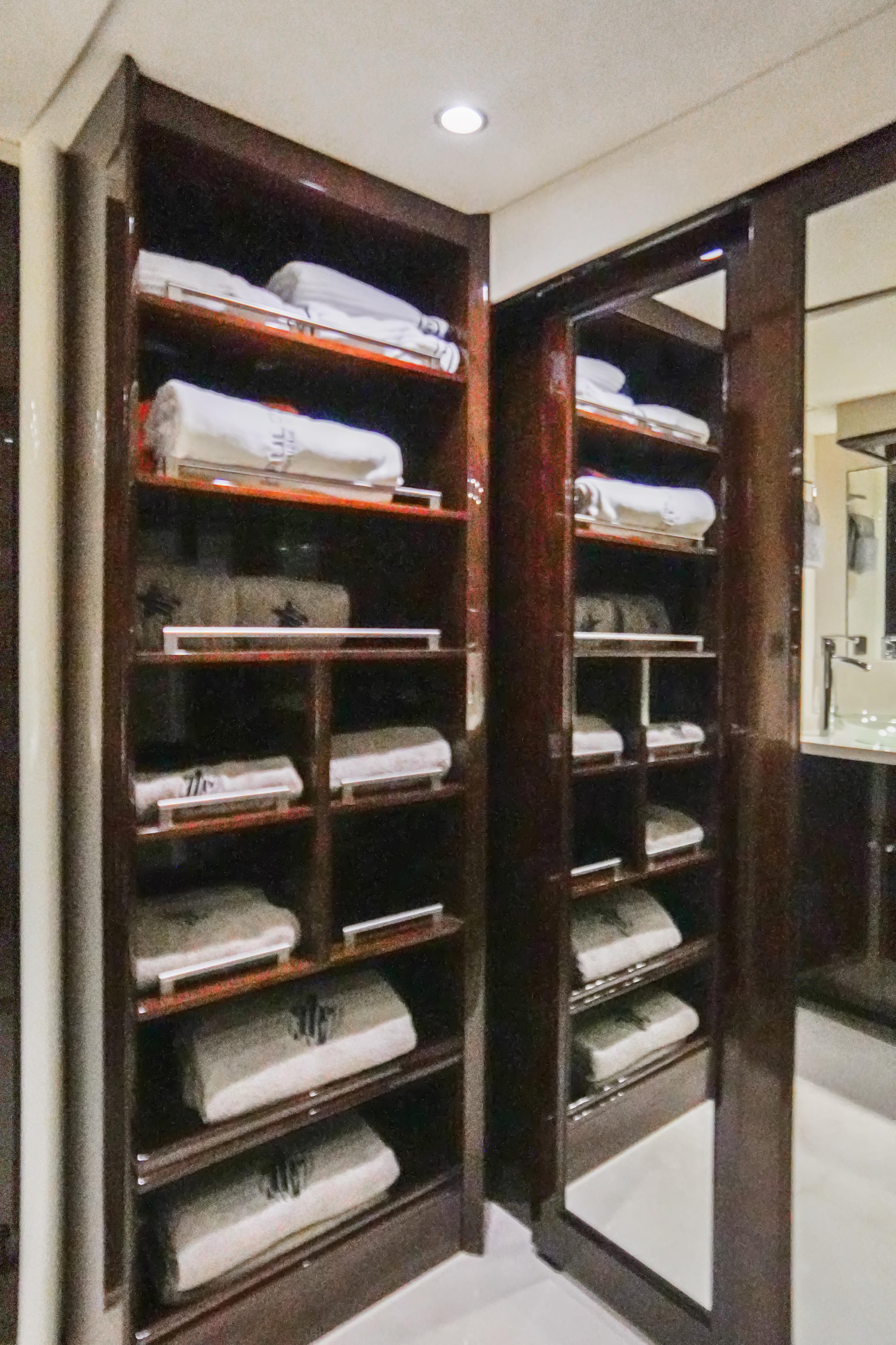 For those who love the thrill of driving, the LSX Quad 75’s Volvo Penta IPS system is a game-changer. The four-engine setup not only provides extraordinary power but does so with remarkable fuel efficiency. The joystick operation makes this yacht incredibly user-friendly, whether you’re a seasoned captain or stepping in for the first time. The result is a vessel that combines ease of navigation with exhilarating performance.