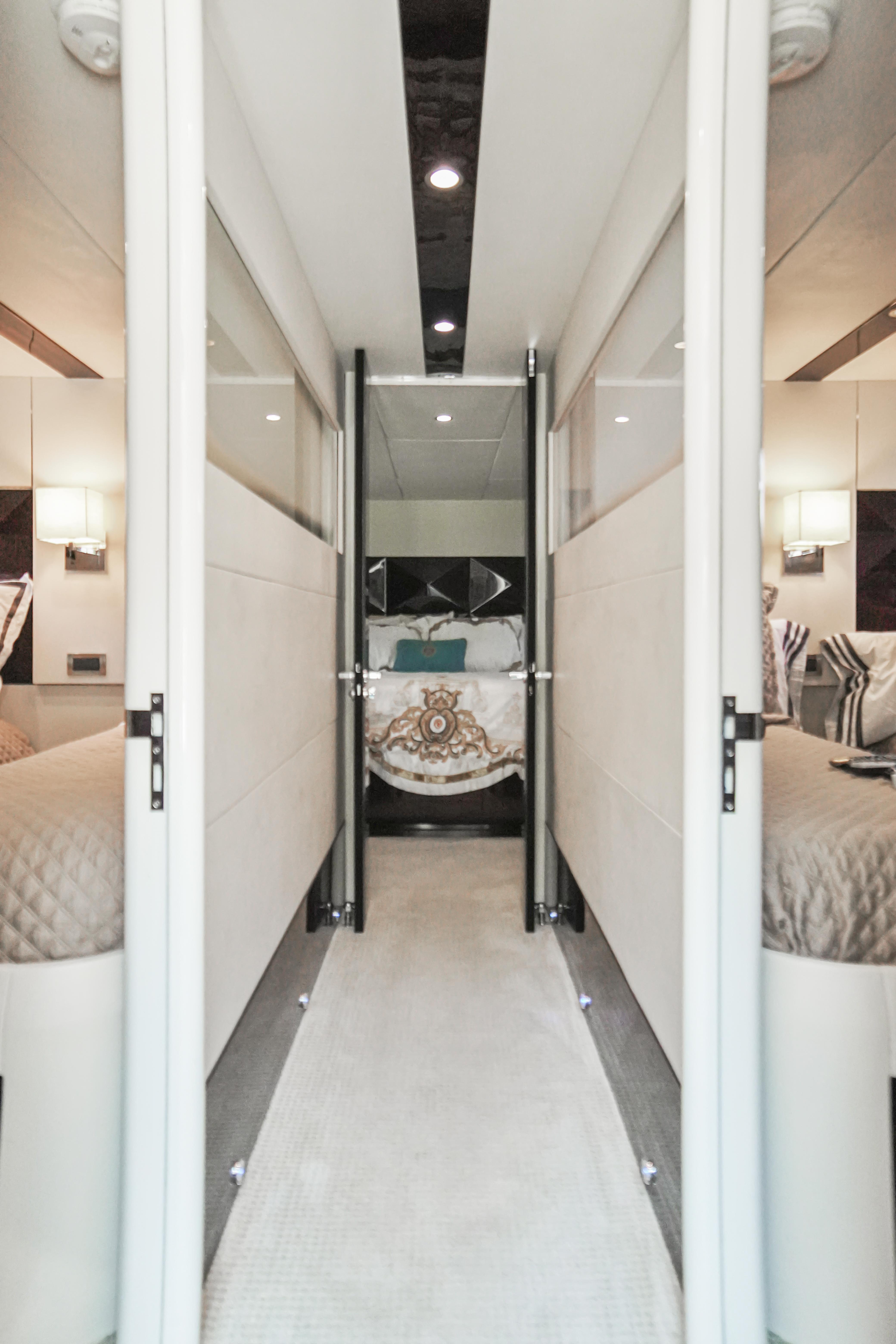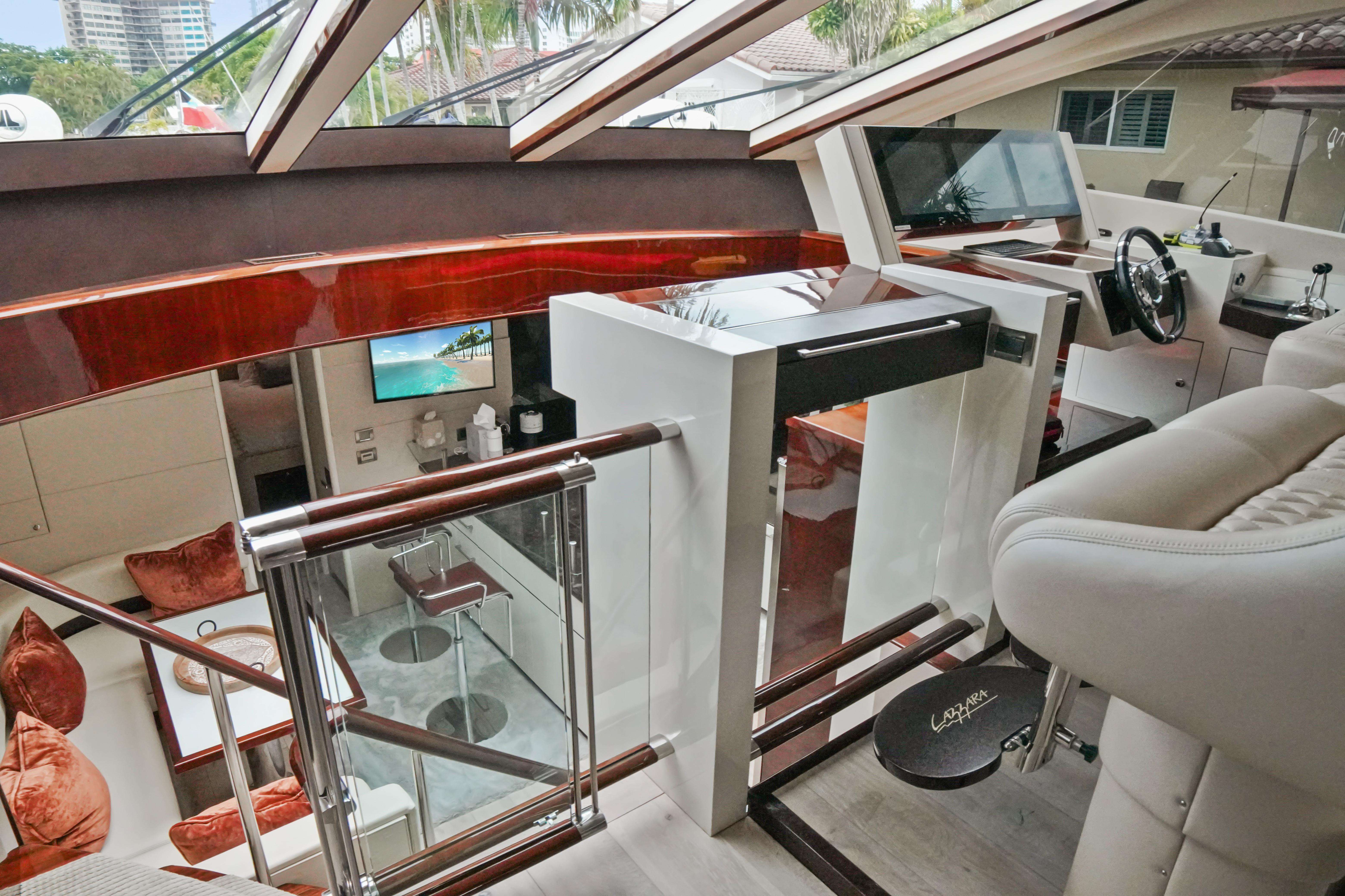 This Lazzara 75 LSX has recently got bottom paint done in August 2025. All air conditioning units serviced. New variable speed compressor air conditioning unit, new Volvo Computers, IPS System Serviced August 2025. This Lazzara is a turn key yacht. Currently priced below market price. This yacht has remarkable fuel efficiency with the 4 IPS engines. nearly 30% less fuel consumption than vessels of equal size. The 4 Volvo engines add redundancy and peace of mind when cruising far away. The engines have been fully serviced - New turbos, new batteries, new alternators new pumps.Propellers have been balanced and verified to be up to class as in accordance with factory specifications.With only 3.8 feet draft, this is an ideal vessel to cruise Florida Waterways and Caribbean. It offers a remarkable experience in luxury yachting, blending sophisticated design, innovative engineering, and top-tier amenities to set a new standard in the luxury boating world. As you step aboard, you’re welcomed by the spacious aft deck, designed for comfort with plush seating areas and a beautifully finished dining table, making it ideal for alfresco dining. The teak flooring, high-gloss finishes, and carefully curated details exude elegance right from the start.Upon entering, the galley immediately captures attention with its striking atrium-style, boasting 12-foot ceilings that create an open, airy feel. This unique space is a chef’s dream, equipped with high-end appliances and designed to accommodate seamless meal preparation for any occasion. Moving below deck, the yacht houses four beautifully appointed staterooms, each featuring ensuite heads for ultimate privacy and comfort. The full-beam master stateroom is particularly luxurious, offering a king bed, vanity dressing area, dedicated desk, and a spacious, elegantly designed bathroom.The 75 LSX stands out not only for her aesthetic appeal but also her impressive functionality. With all engines and pods recently serviced and in excellent mechanical shape, this yacht is turn-key and ready to cruise. Known for its fuel efficiency, the Lazzara 75 LSX is a leader in its class, and the AC units have also been recently serviced to ensure the yacht remains a cool, comfortable sanctuary, even in the hottest conditions.The hydraulic swim platform offers a touch of beachside luxury, lowering into the water to create a private swimming area or a launchpad for a Jet Ski. Additionally, the garage conveniently houses a 12-foot Williams tender, enhancing your adventure options on the water (tender not included). With fresh bottom paint, prop speed, and serviced pods completed in August 2025, this Lazzara is ready to impress and embark on its next journey—completely turn-key and ready for immediate enjoyment.