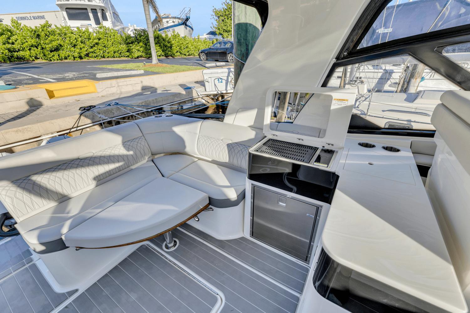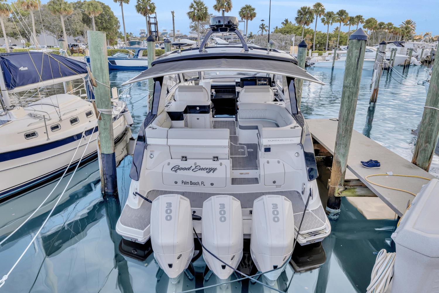 The sleek and innovative 2023 Sea Ray 370 Sundancer, the epitome of luxury and performance on the water. This stunning yacht features a modern design that effortlessly combines style and functionality, making it the perfect choice for boating enthusiasts.This vessel is located in Palm Beach Gardens, please contact listing broker to set up a viewing.Factory OptionsHorizon Hull Side ColorBlack Gel StripeGel StripeBlack painted fiberglass hardtopGrey seadeck flooringStone (Grey) Cockpit Color UpholstryBlack CanvasTriple Mercury Verado 300hp with Joystick Piloting in White 50 hrsDynamic Running SurfaceGyroscopic StabilizerExtended SunshadeSunshade, Bow SeatingInterior - DriftwoodOpening PortlightsPremier Stereo - Combined Cabin & CockpitCockpit TVTV w/DVD - Mid-CabinInverter - 12V to 120V/60 CycleMacerator w/Seacock Interlock SystemSirius Satellite RadioCockpit Refrigerator Dual VoltGrill, Cockpit Built InTeak Bow TableStbd Teak Cockpit TableBow Filler CushionCockpit Filler CushionsDocking LightsFlag Pole & Base, U.S. FlagFender ClipsSpotlight, 5" Remote ControlledRadarMarine WeatherCabin handheld VHF radioGlomex TV antenna for hardtopWindlass - All ChainStainless Steel AnchorBottom Paint
