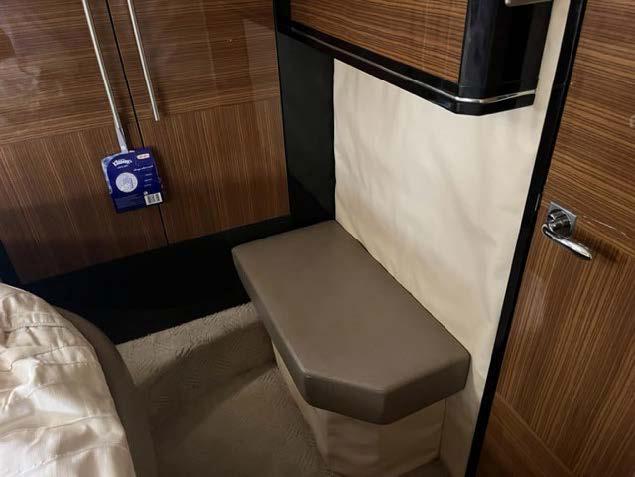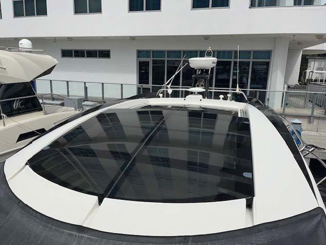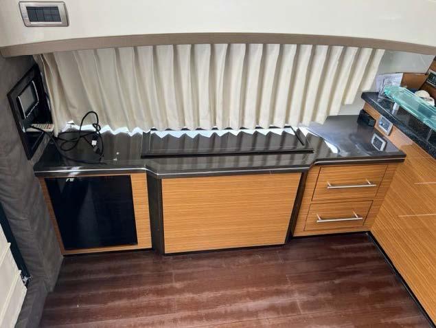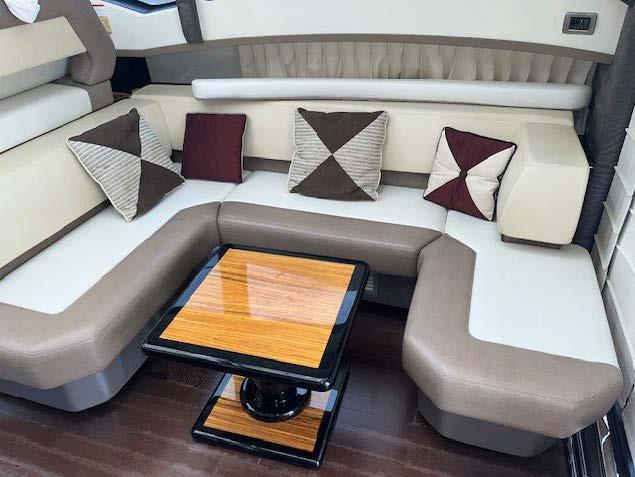 Introduced in 2008, the Marquis 40 Sport Coupe was one of the first boats designed to take advantage of the space-saving features of Volvo IPS pod drives. The most innovative feature of the boat is what Marquis calls a “sliding transom” that glides aft with a push of a button to create more than 60 square feet of cockpit space.Below, the two-stateroom, single-head interior of the Marquis 40 features a queen berth in the forward master stateroom and single berths in the starboard-side guest cabin. The salon, with its sweeping windows, U-shaped sofa and disappearing 26" TV, is a modern blend of hardwood cabinets, lacquered trim, and designer fabrics. (An electric table in the salon drops to cocktail level or raises to dinette height.) The Eurostyle galley is up and to port, opposite the two-seat helm station. Note the huge power retractable sunroof with integrated shade.