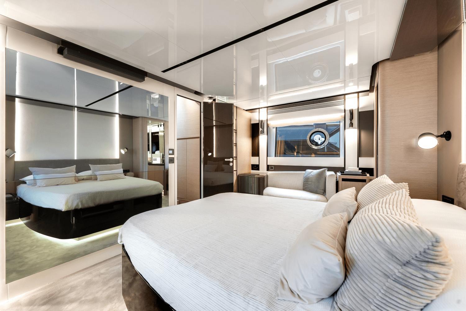 The flybridge offers a spacious and comfortable area designed for navigation, relaxation, and entertaining. It features a fully equipped helm station, ample seating and lounging spaces, and convenient amenities for outdoor dining and socializing. The engine room is clean, organized, and well-equipped for efficient yacht operation.