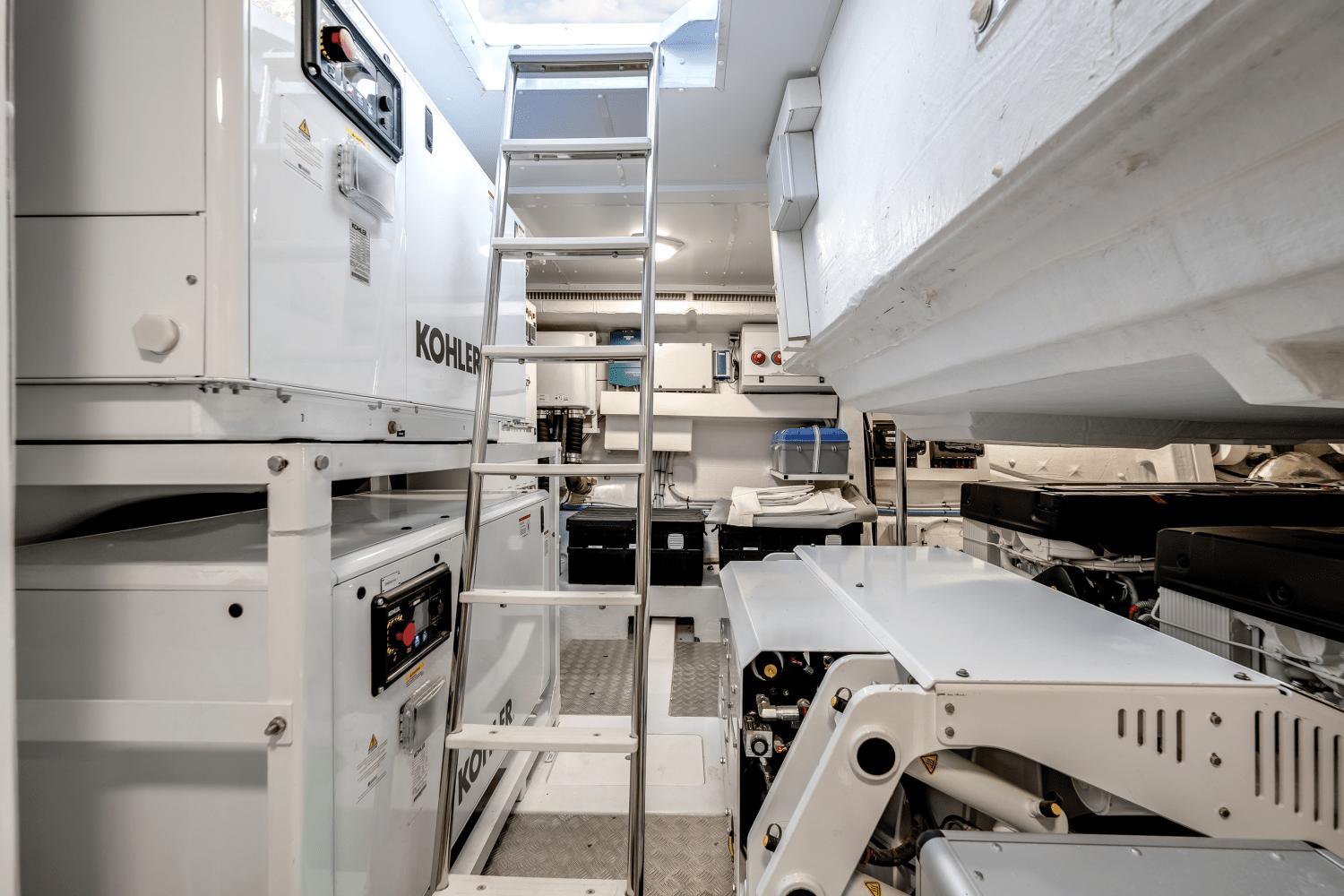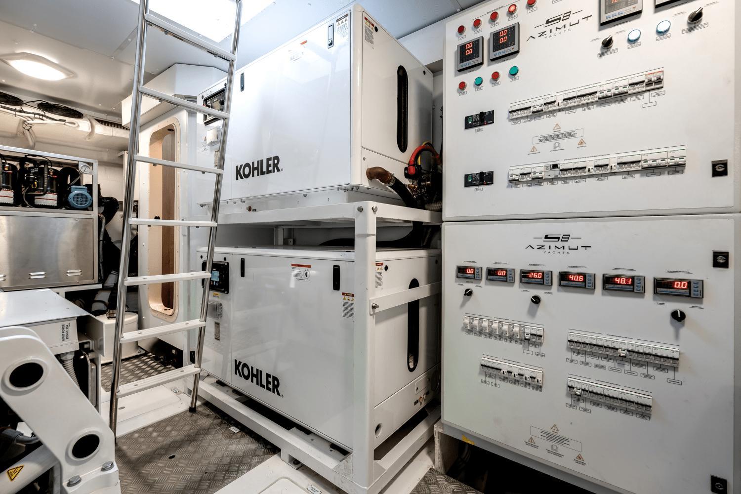 - Dual Kohler marine generators stacked neatly for space efficiency and easy servicing