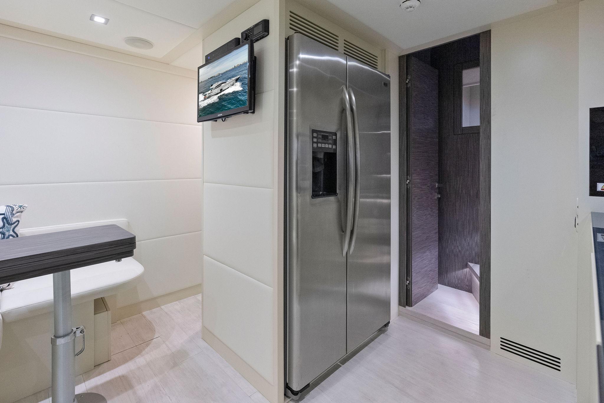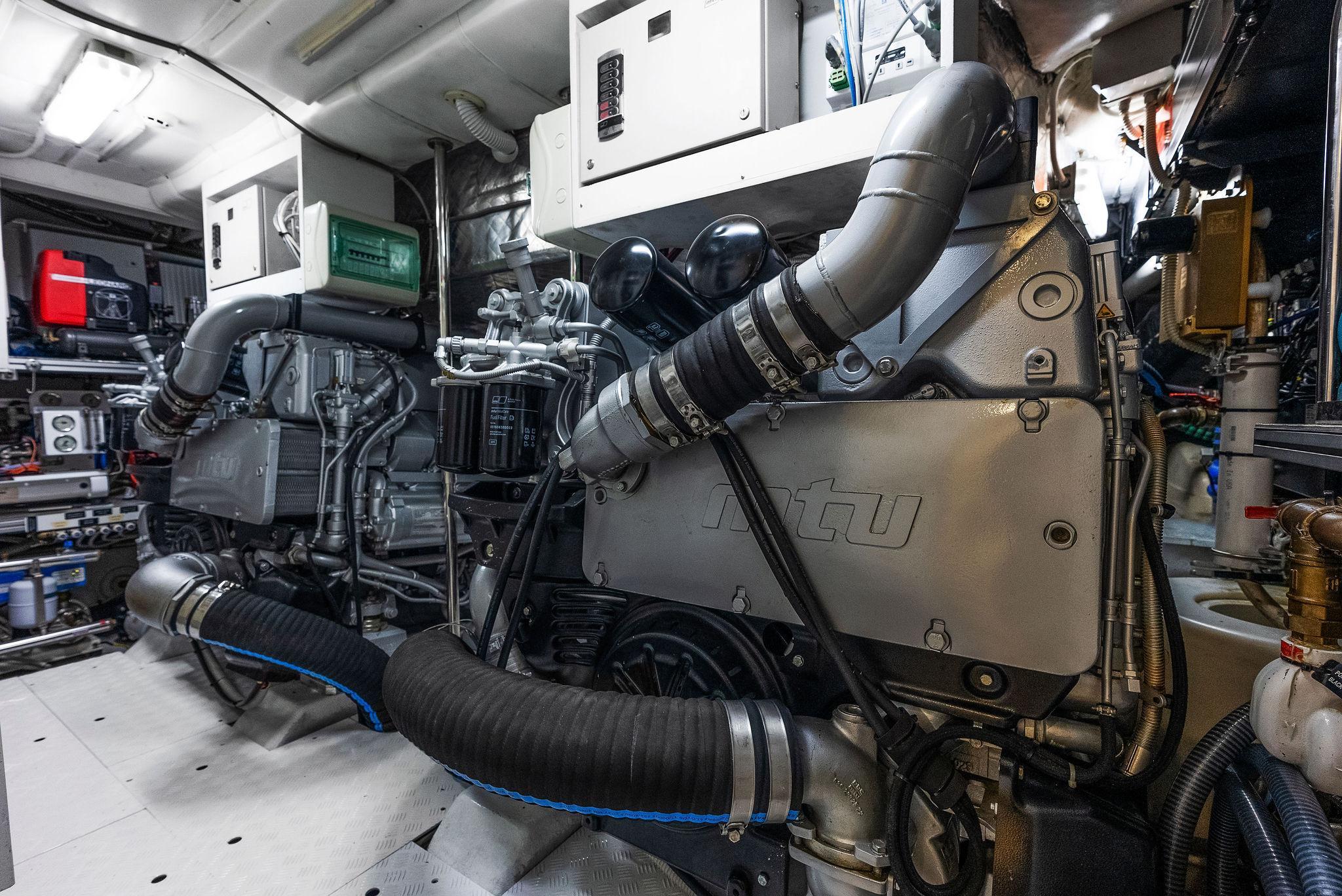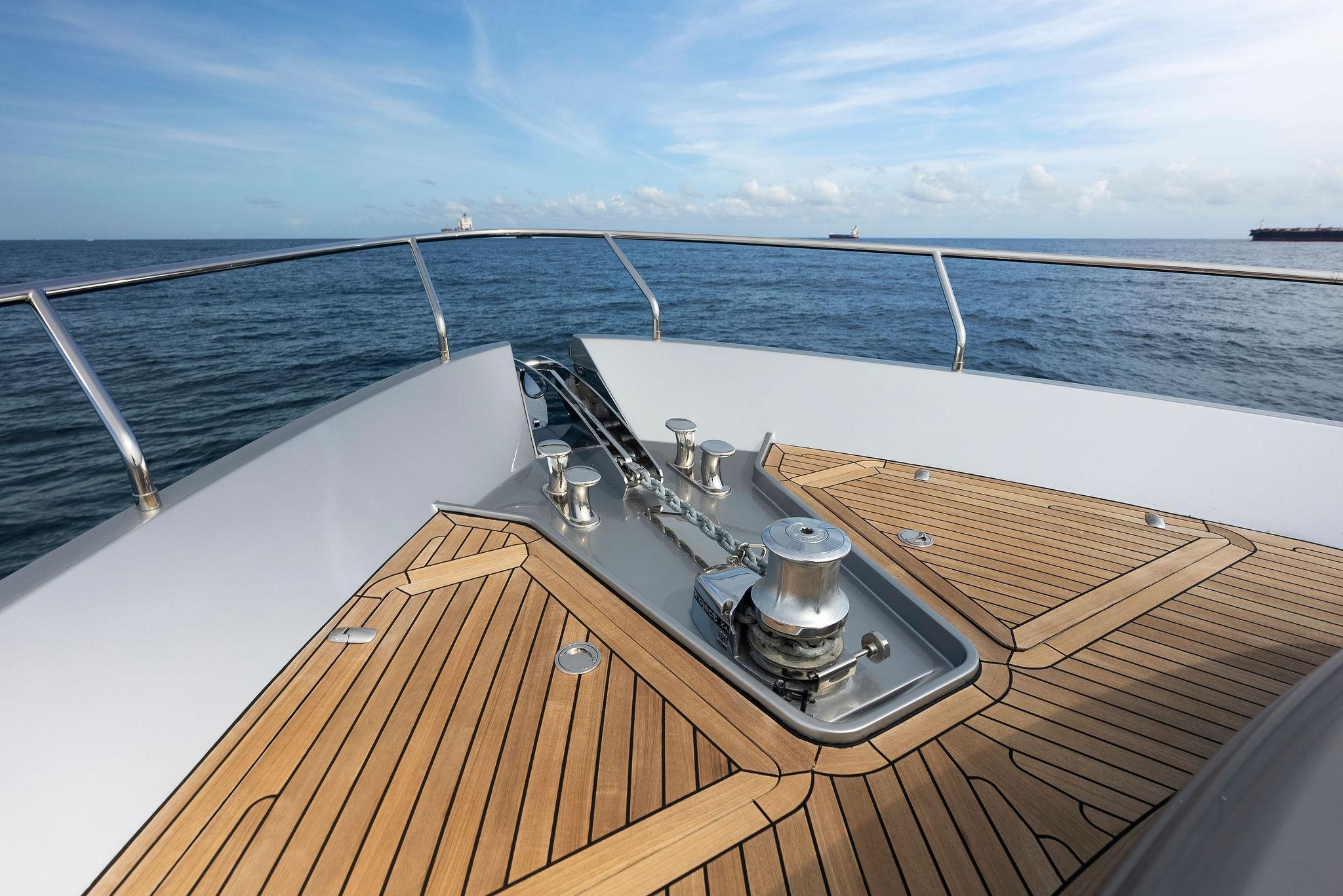Beneath the sleek fiberglass hull, this Pershing 82 VHP boasts twin MTU 16V2000 M96L diesel engines, each delivering an impressive 2,600 horsepower, totaling a jaw-dropping 5,200 horsepower. These powerhouses are expertly coupled to Top Systems surface drives, propelling you to thrilling speeds with ease. Whether you’re in pursuit of adventure or relaxation, this yacht’s performance sets it apart.