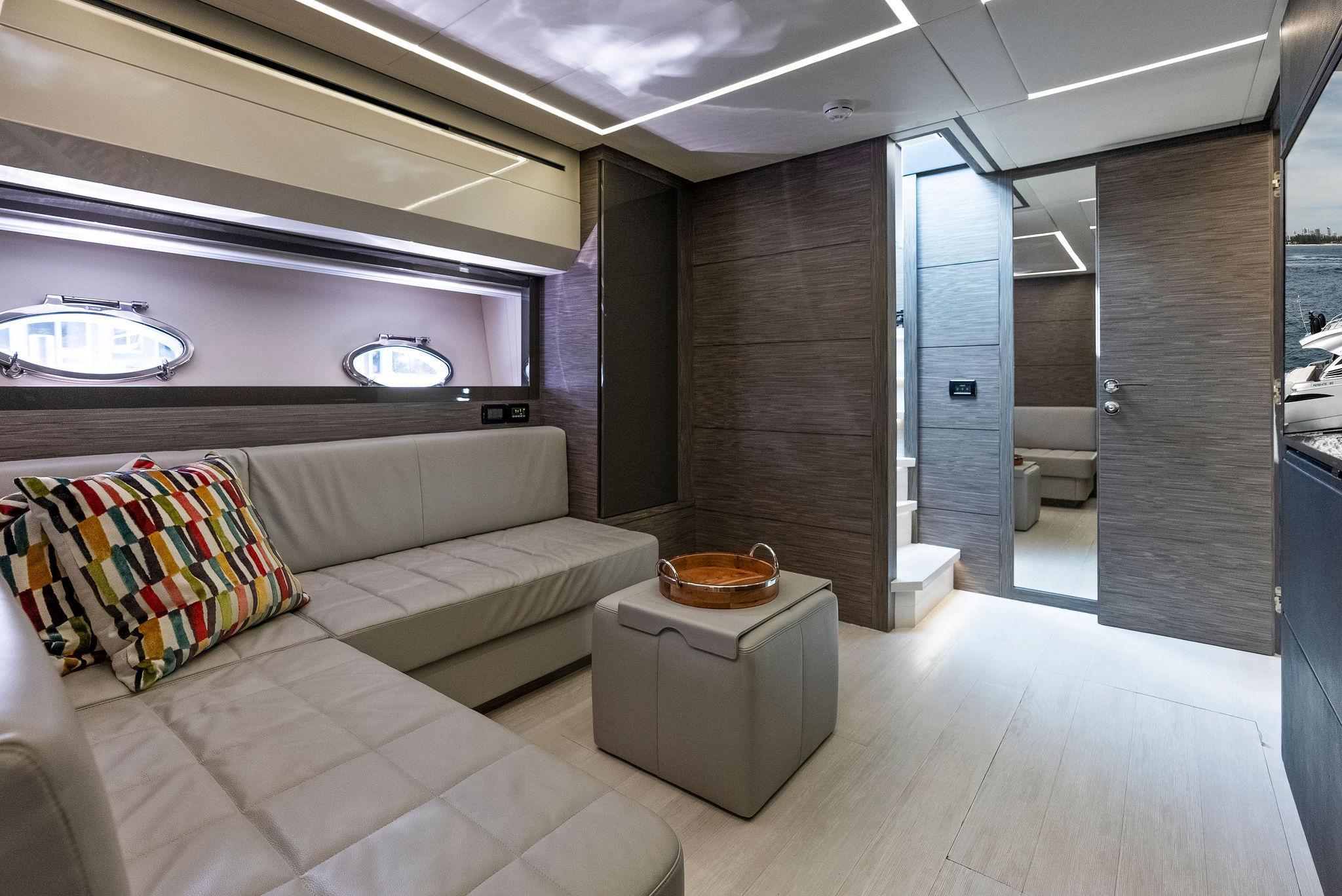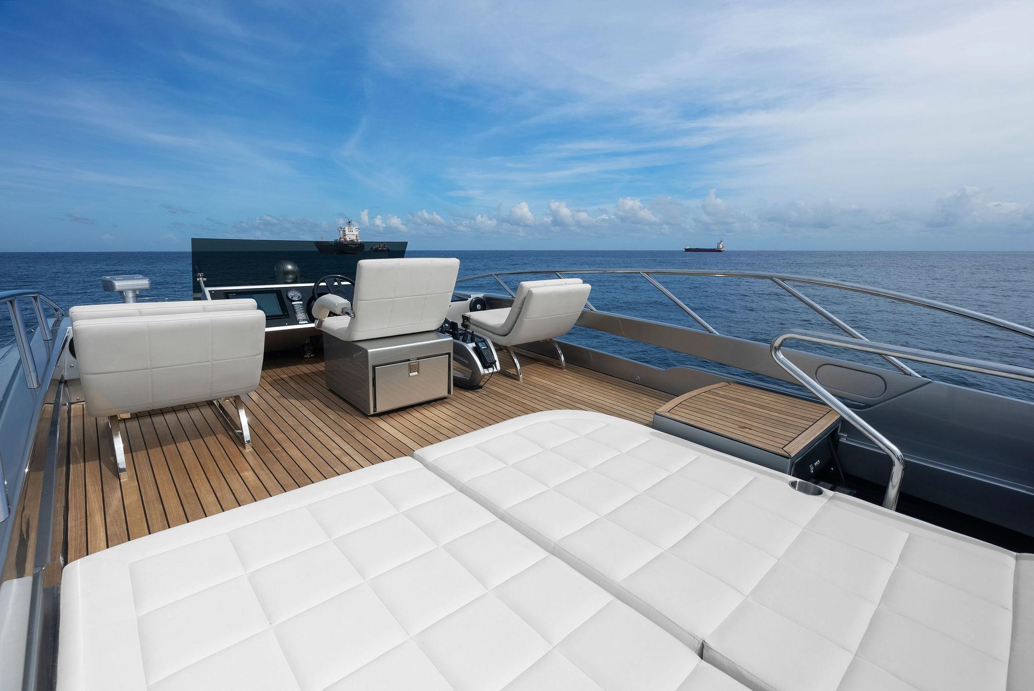 In order to accommodate these changes, Pershing’s team of designers and engineers has altered the layout of the engine room, the heights of the stern garage and the positions of the air intakes. The interiors of the Pershing 82 VHP meet the same exceptional standards set on the performance front. They are sparklingly luxurious and feature a tasteful array of superlatively sophisticated, quintessentially Italian products and style.