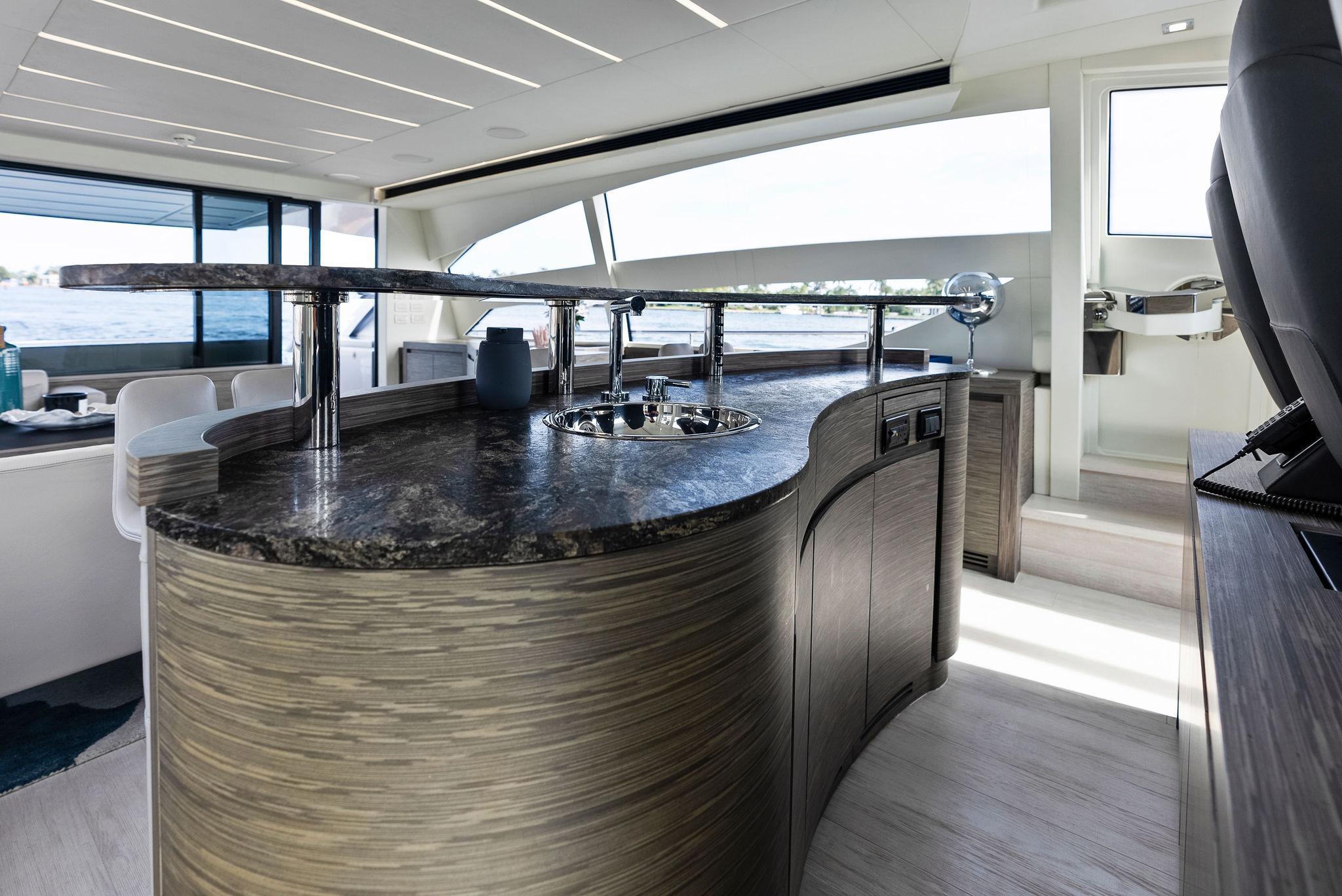 Created by the yacht designer Fulvio De Simoni in partnership with the Ferretti Group’s Product Strategy Committee and Engineering Department, the Pershing 82 VHP features completely reworked furnishings that have been enriched with stylish new detailing and refined wood.