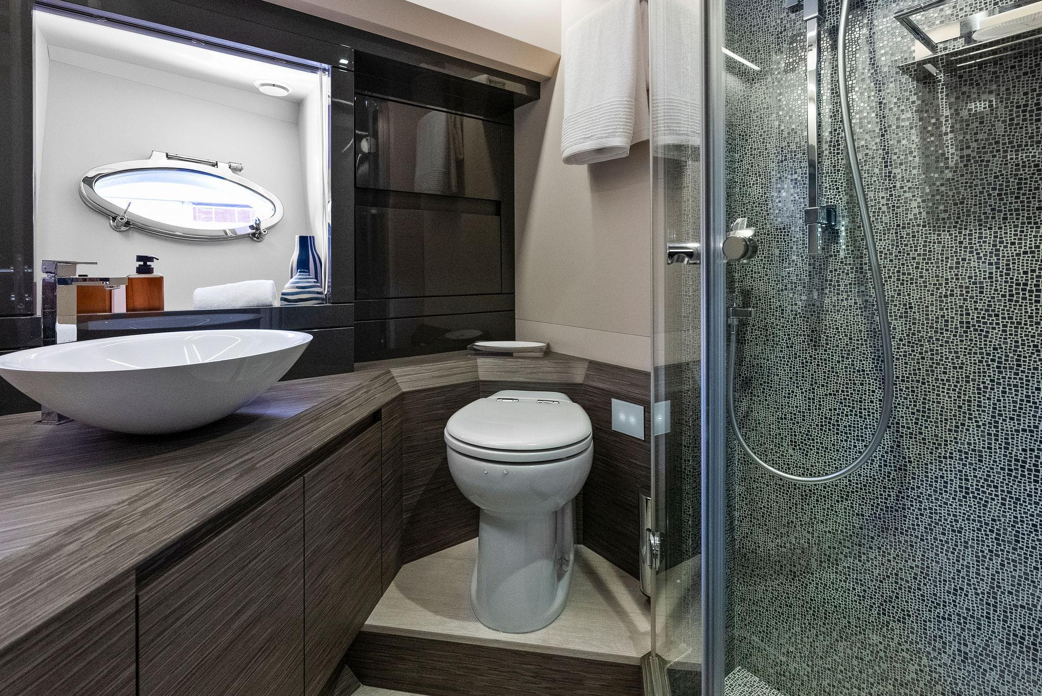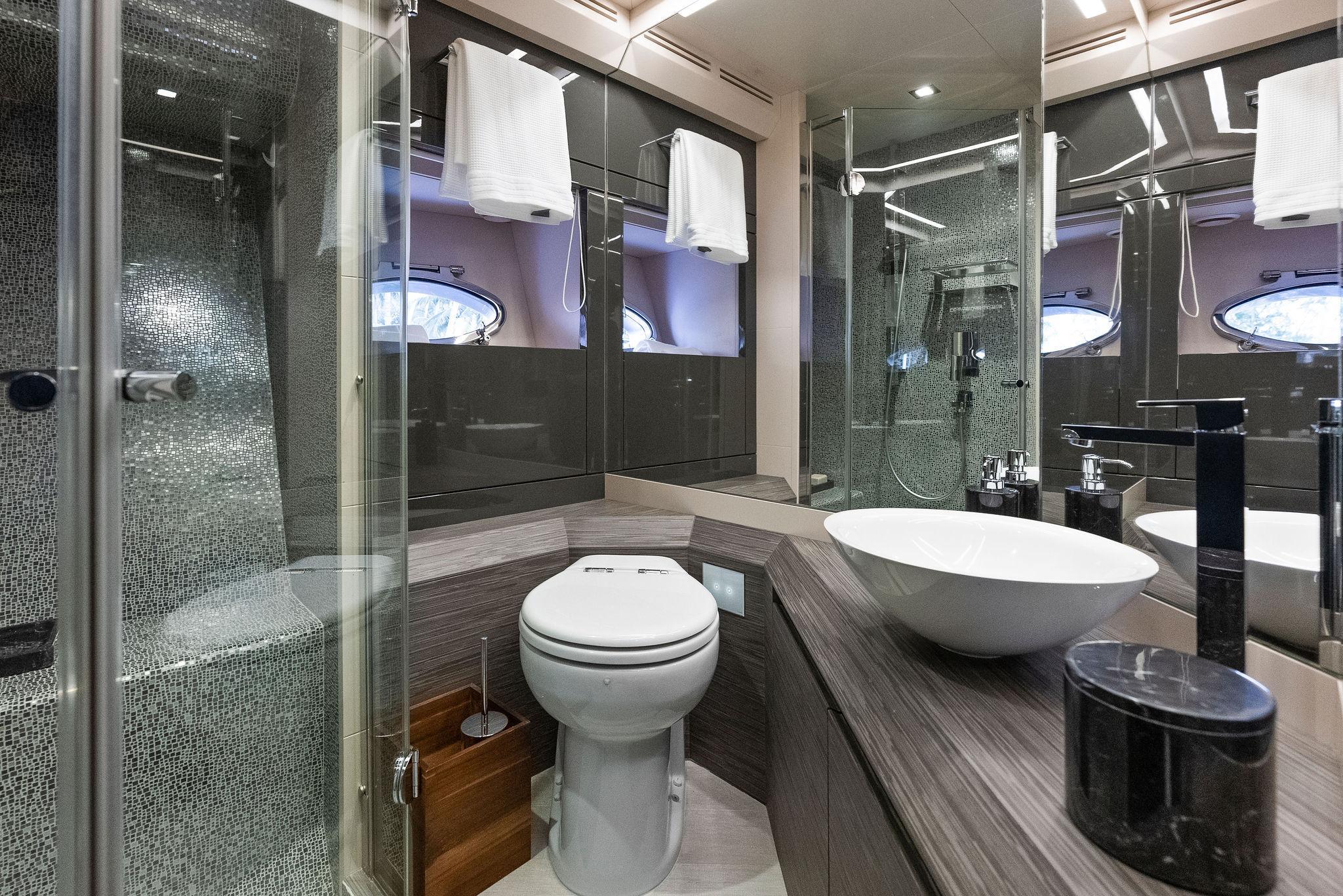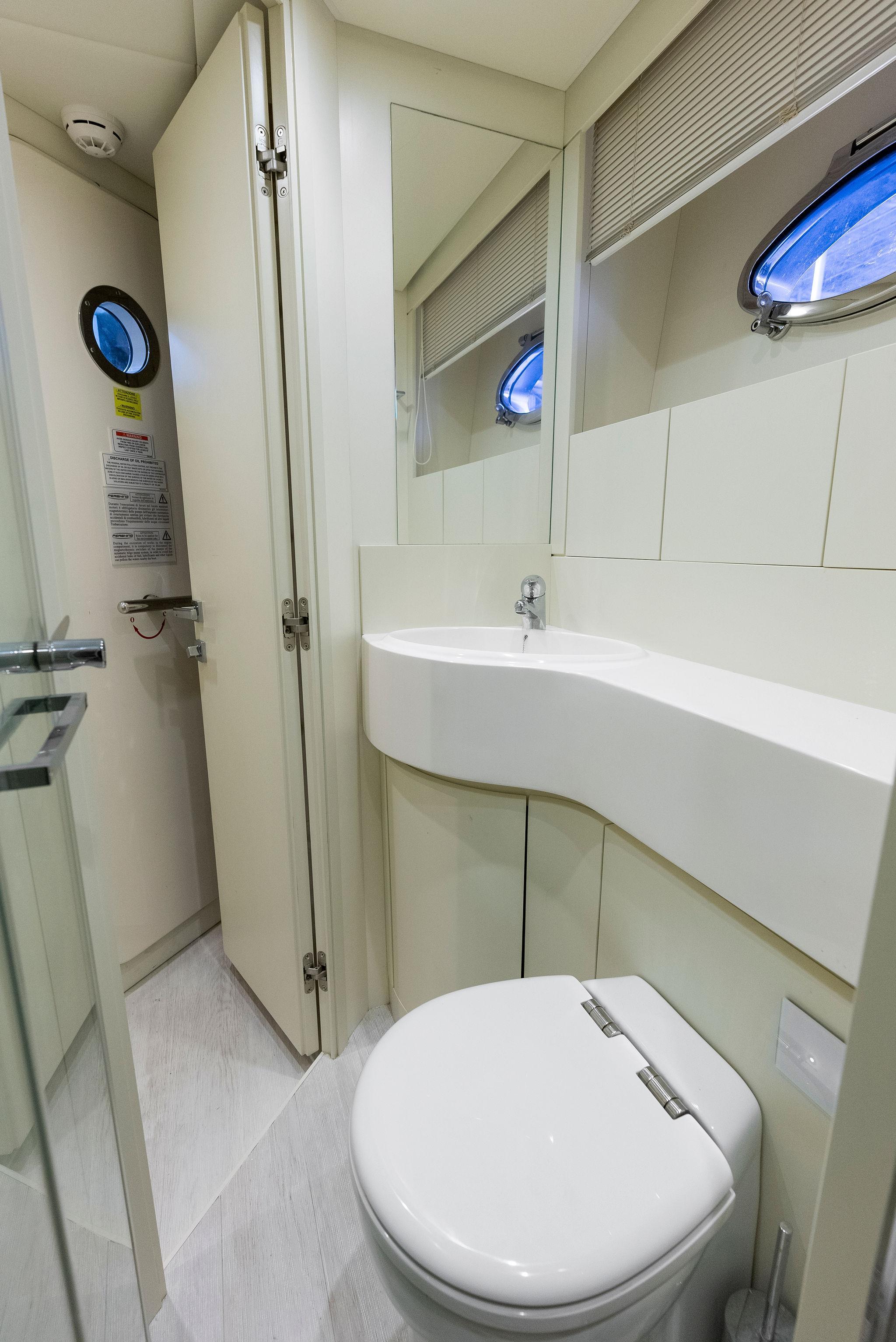 This opulent three stateroom layout yacht features three sumptuously appointed accommodations including two staterooms and one twin cabin. The luxurious master stateroom is towards the aft and boasts its own lavish ensuite with separate stalls for the head and invigorating rain shower. The exclusive VIP stateroom is forward in the bow with its own ensuite head.