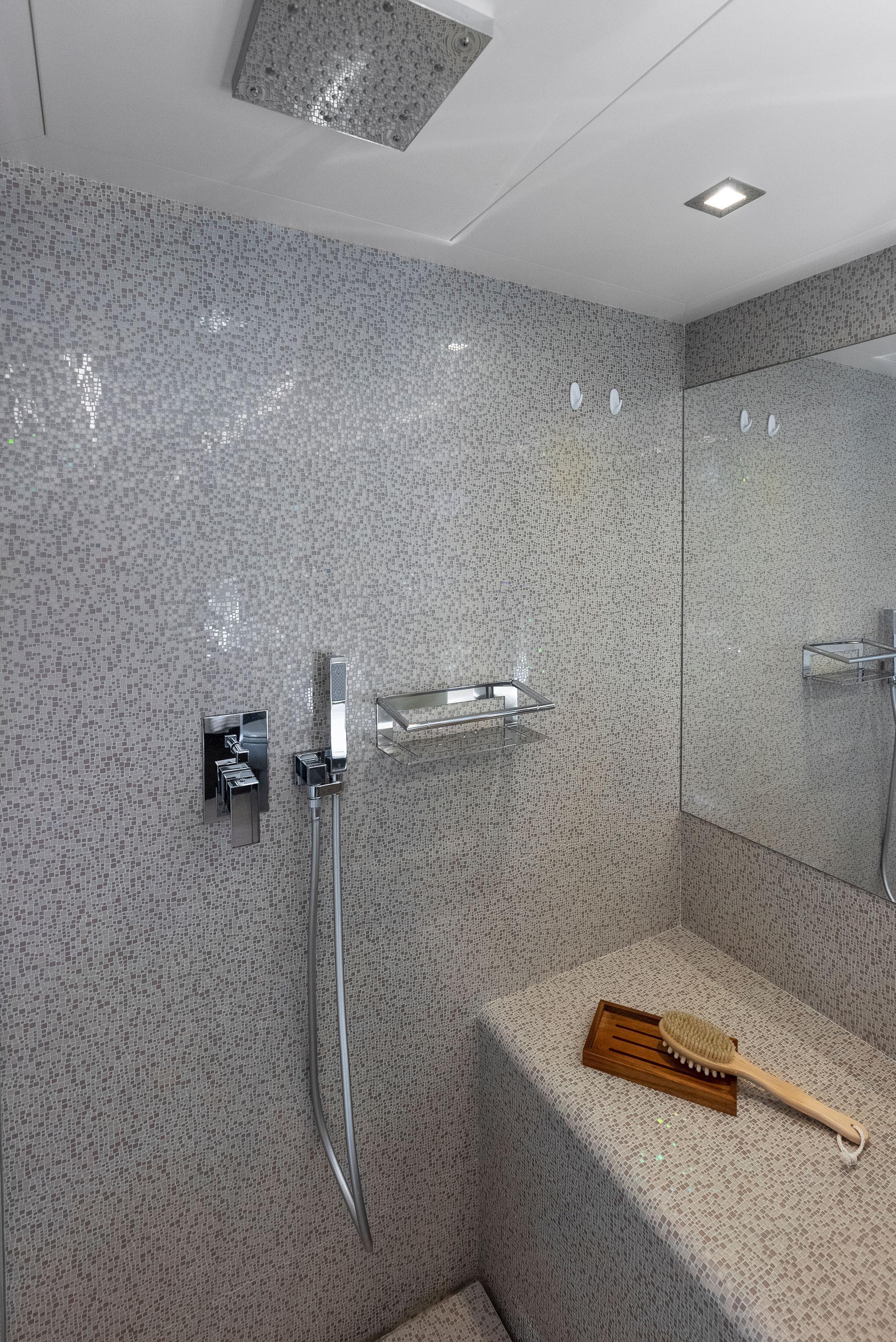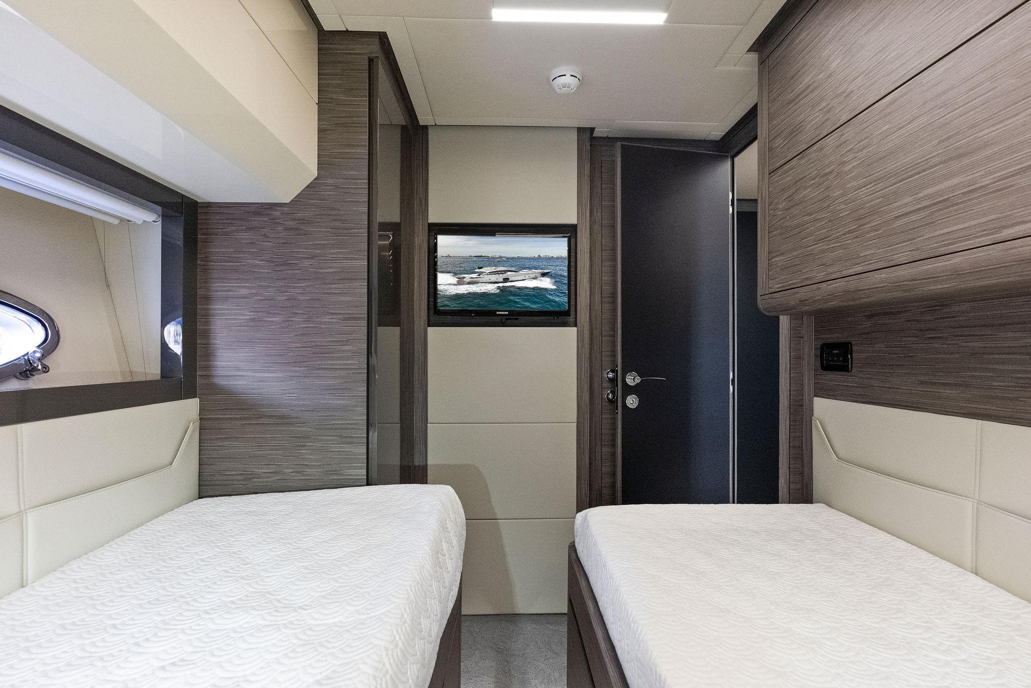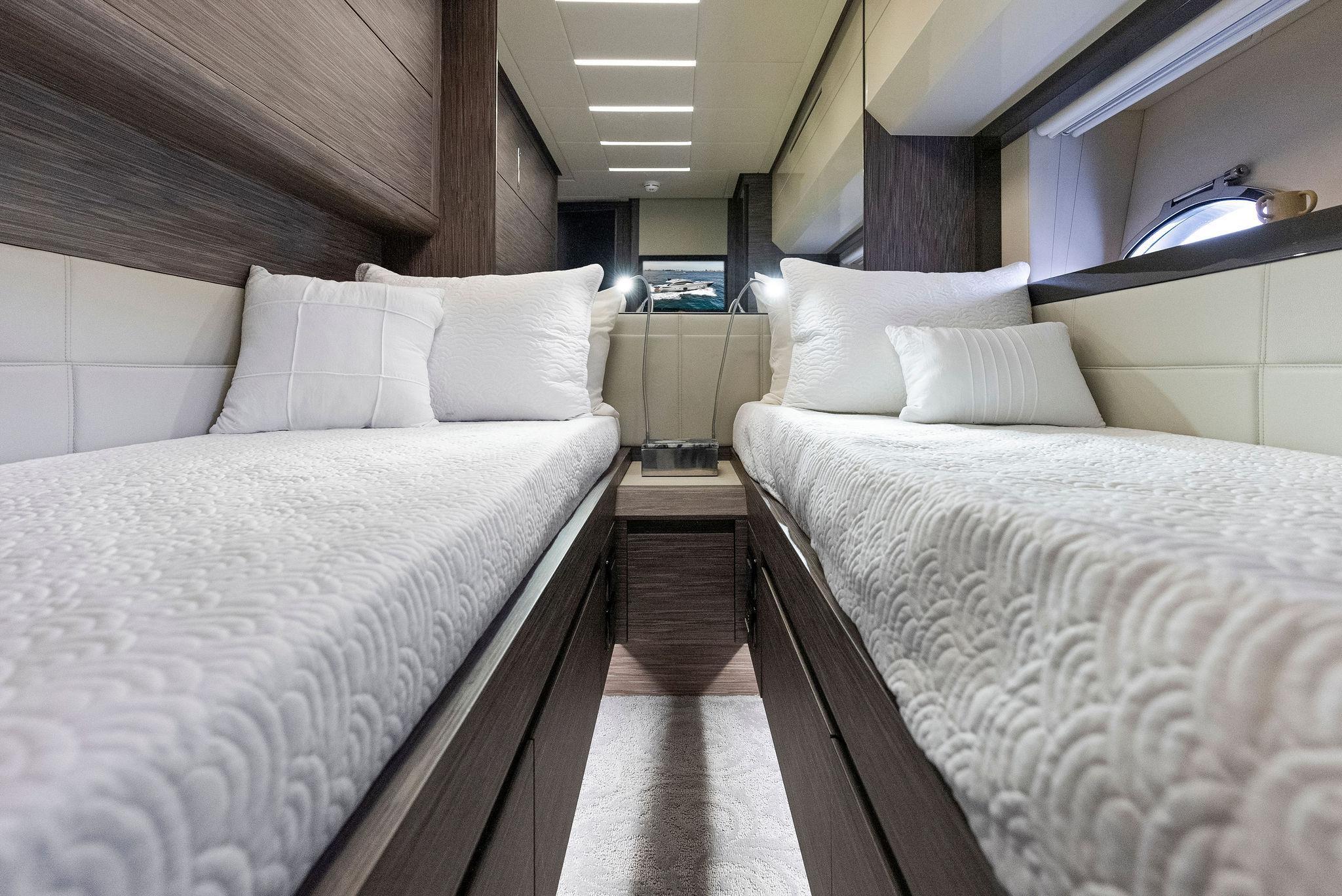 This opulent three stateroom layout yacht features three sumptuously appointed accommodations including two staterooms and one twin cabin. The luxurious master stateroom is towards the aft and boasts its own lavish ensuite with separate stalls for the head and invigorating rain shower. The exclusive VIP stateroom is forward in the bow with its own ensuite head.