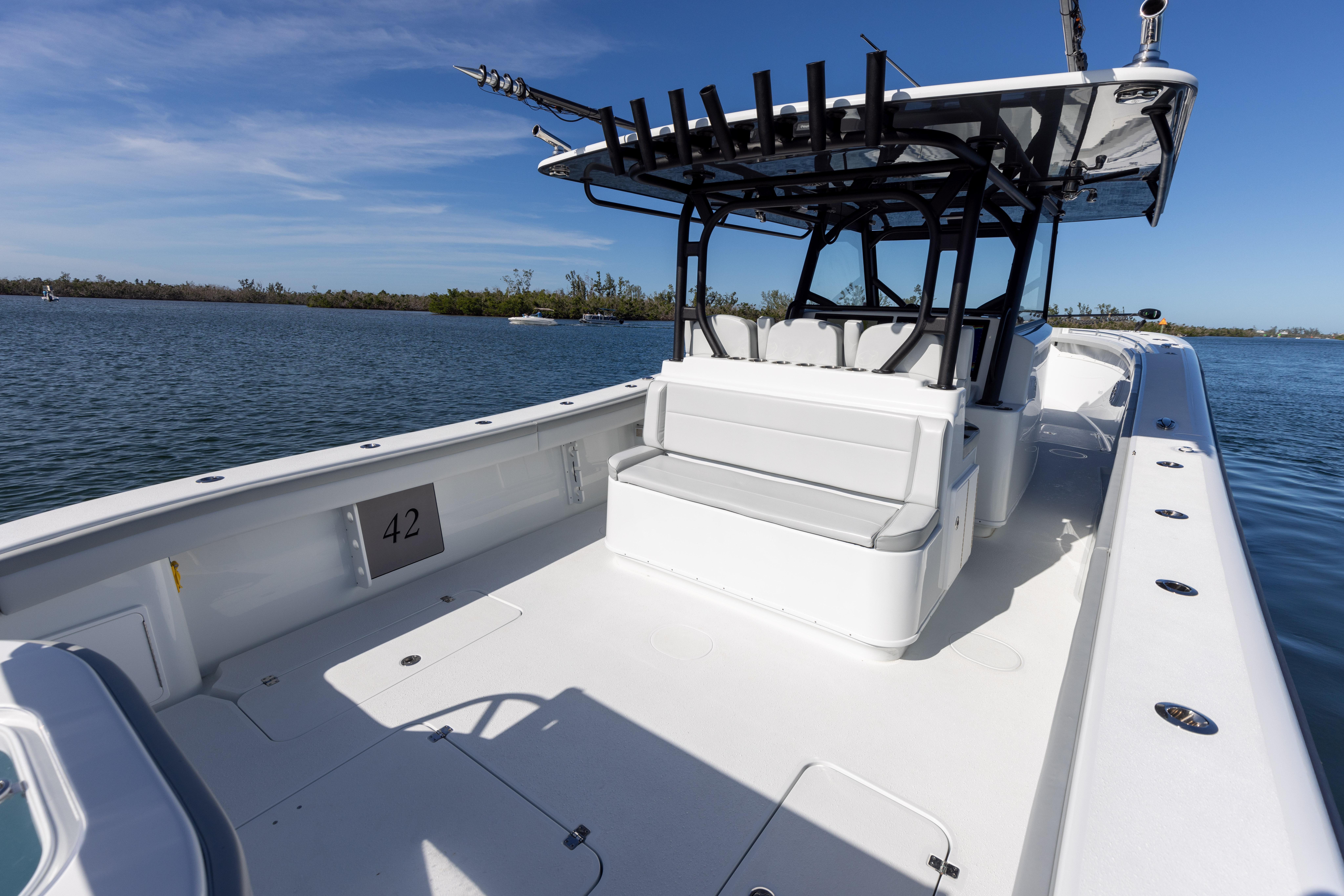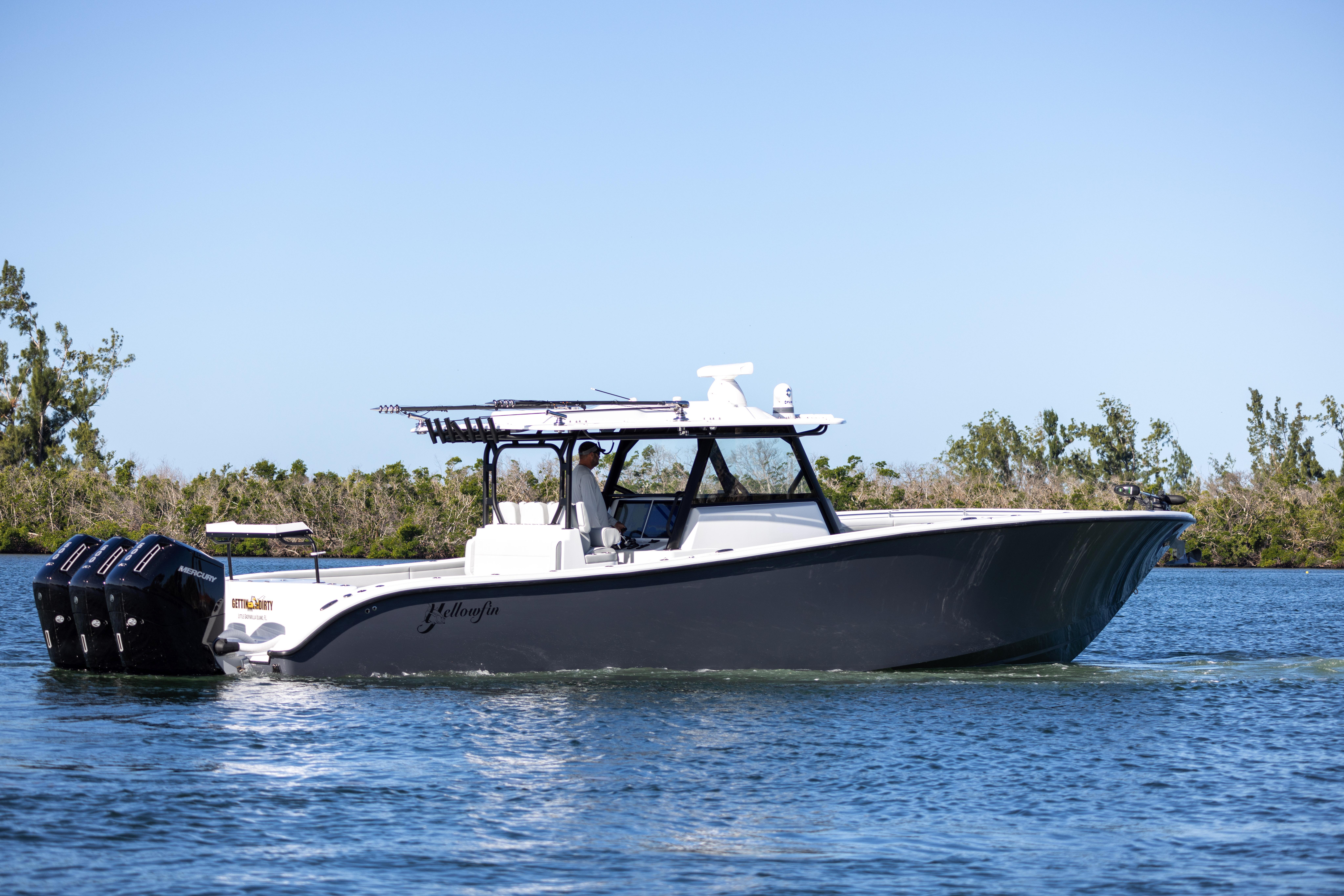 Yellowfin’s flagship sets the standard for what a big, brawny, no-holds-barred center console can be, designed for triple or quad outboard power, the 42 can run circles around big diesel inboards in a Marlin Tournament (while burning a fraction of the fuel), but is equally at home competing in a local KDW competition. Its versatility in terms of the sheer number of tasks it does well defies comparison. Whether you seek a large, family boat for weekend excursions in total safety and comfort, or a full-on tournament ready battlewagon, the 42 easily accommodates both duties. With an unmatched attention to detail in fit-and-finish, smooth dry ride, and performance, there is simply nothing else in the market to compare.