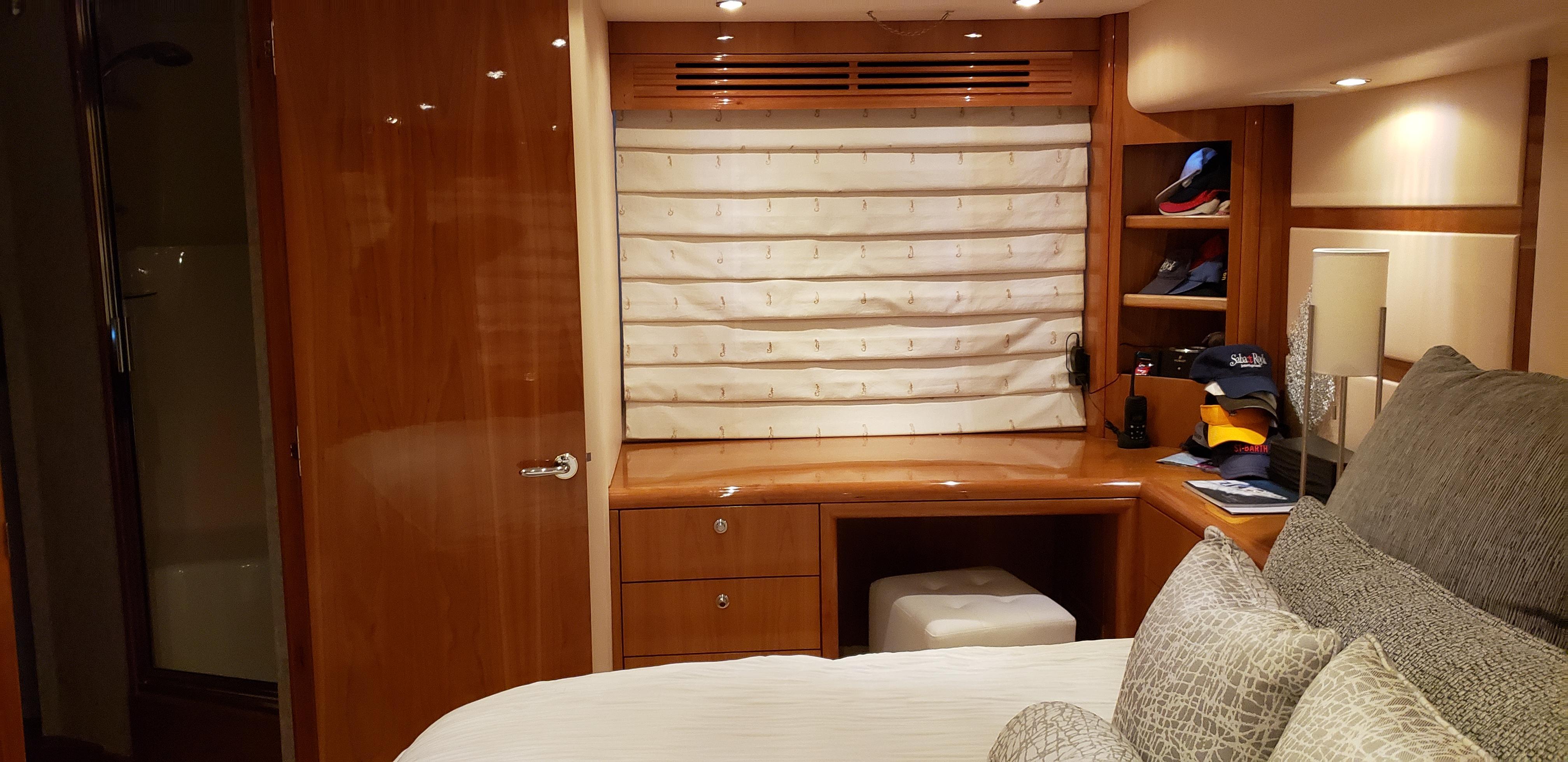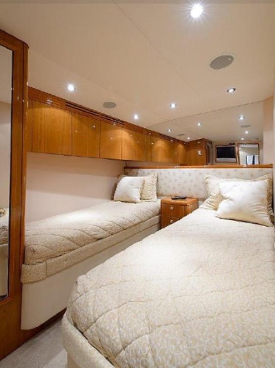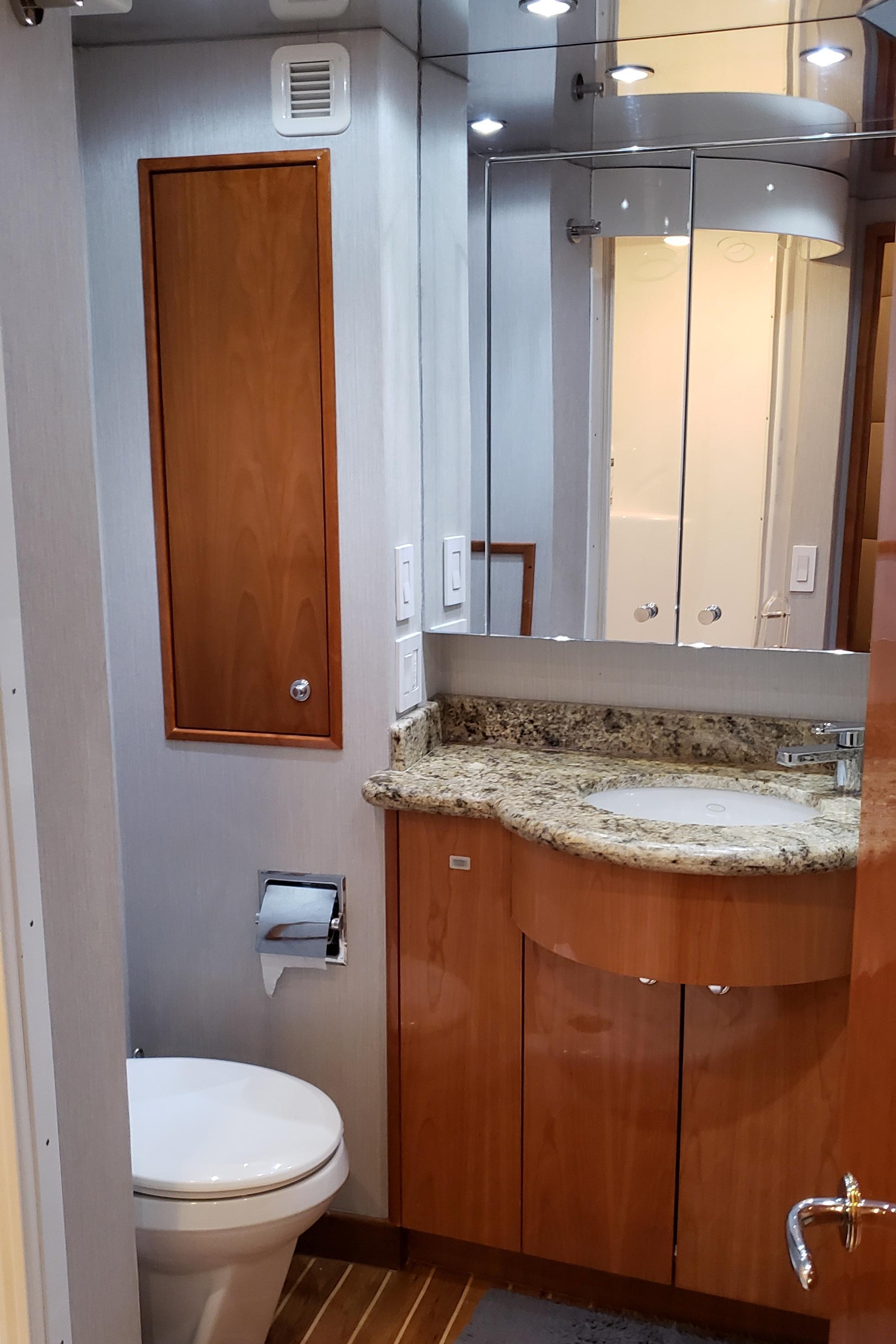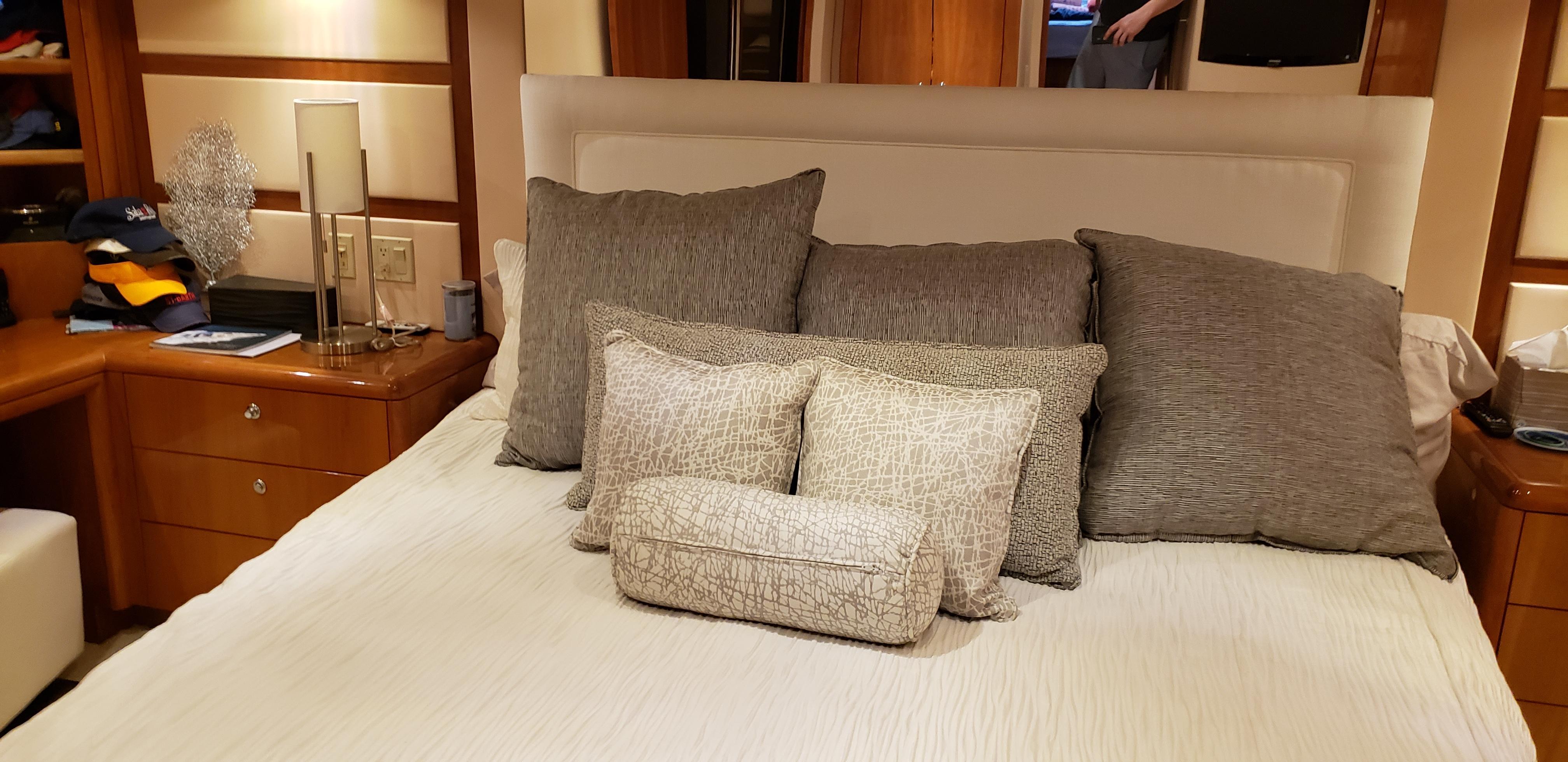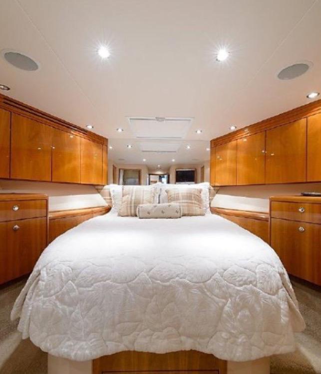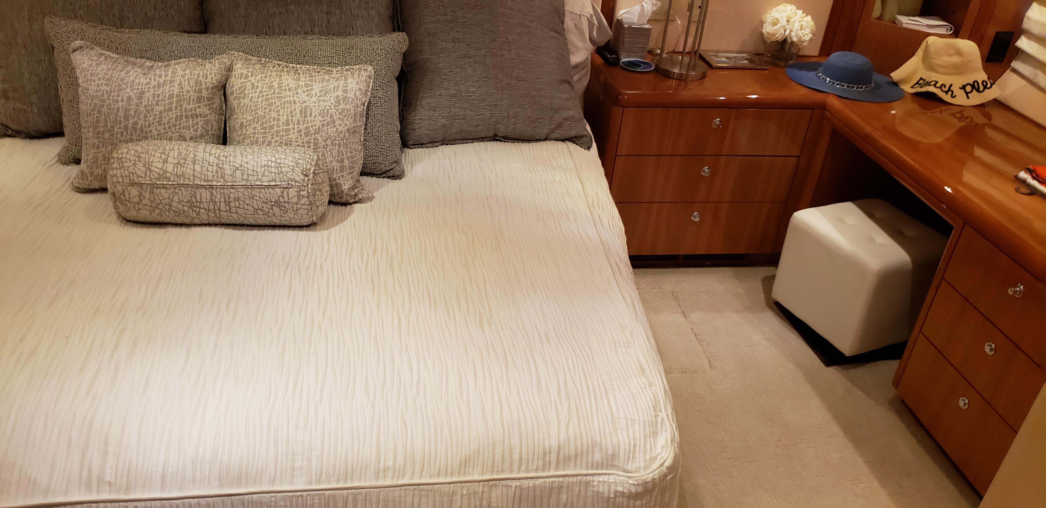 The full beam master, has been the biggest selling point for this machine. The full king size bed, master closet, and drawers on each side, will make you never wanting to go back home. As you continue to the bow, you will find a bunk birth to your port side with a connecting door access to the head. To the stbd side a side by side stateroom, convertible to queen size birth, with own private head. Moving forward to port side you will find the Stackable washer and dryer recently replaced.