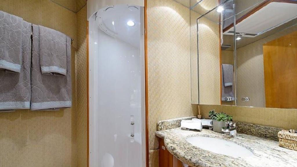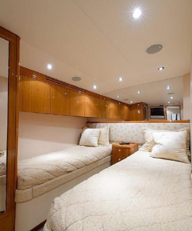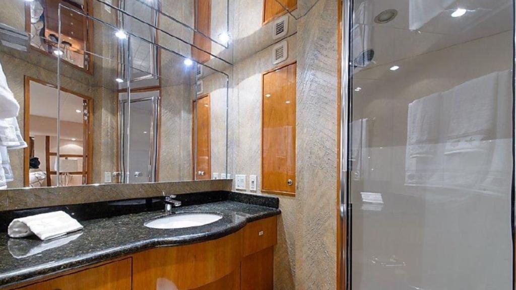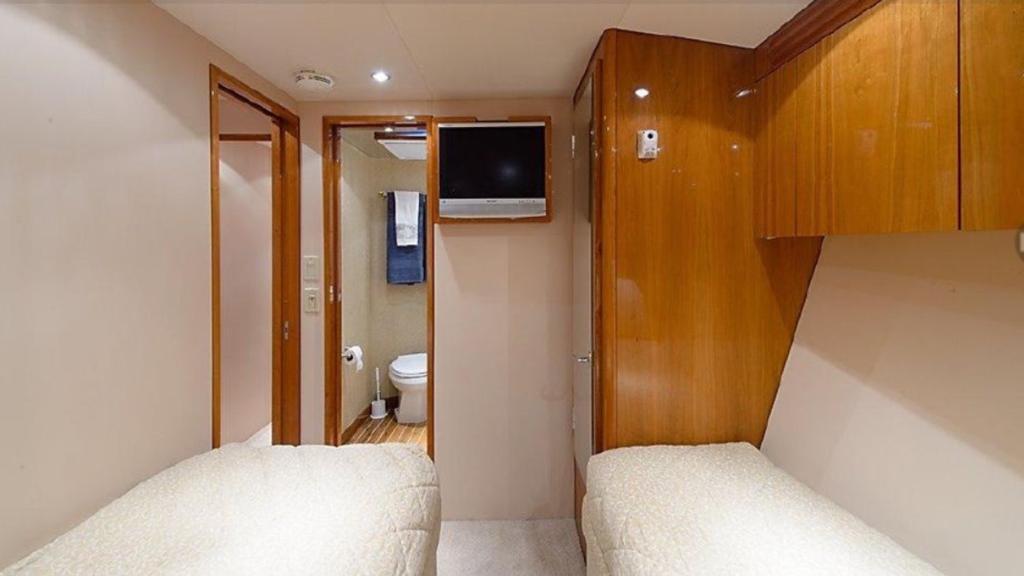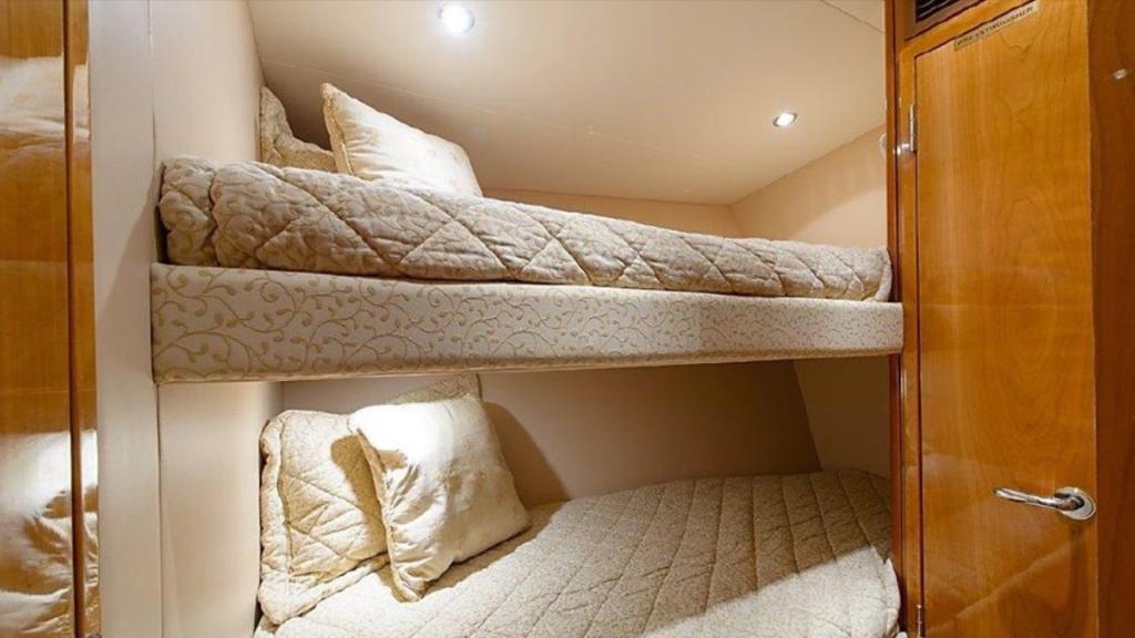 As you make it through the stairs, this optional 4 stateroom 4 head layout, makes ideal for the big family enjoyment, as well as big fishing crew, to be comfortable accommodated with their own head for each room.