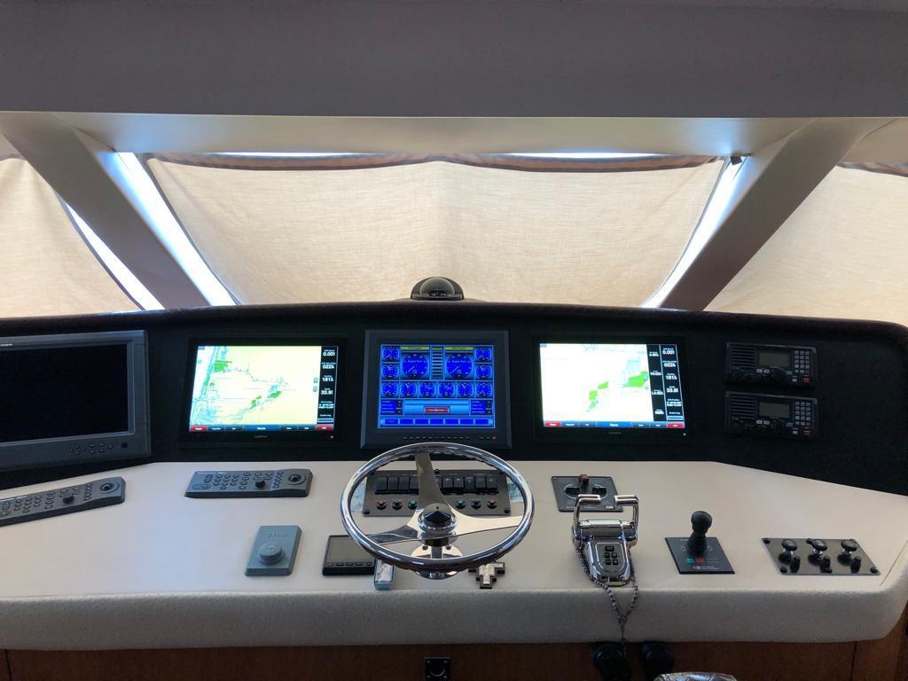 MUST SEE!! HATTERAS 68C ENCLOSEDUPDATED FULL INTERIOR DECOR.NOV 2018 *NEW GENERATORS INSTALLED *NEW TEAK COCPIT SOLE*ADDITIONAL FREEZERS IN MEZZANINE STEPSNEW HULL PAINT IN 2020, ALSO FAUX TEAK TOE RAILThe 68c has proven to be one of the most comfortable boats in its class. The convex hull will give you a smooth ride even on high seas, especially on this enclosed version, where you will be riding in the comfort of air condition, and the ability to hold a conversation without the engine roar. Given the 68's displacement, Hatteras' reputation for building a stout boat is clearly intact. While other production builders have fiddled with lightweight structures, Hatteras has always favored practical and proven methods. The 68's hull bottom is solid fiberglass supported by a fiberglass stringer system and Divinycell foam-cored bulkheads. Coring is used to stiffen the hullsides, decks and superstructure. Like all Hatteras yachts, the 68's molded gelcoat finish is prepped and painted in a state-of-the-art coating facility. One of the many key features is the draft on this 68, while others in its size are over 6', the Hatteras tunnel design makes the draft on the 68c a 5'3".The 68 is so full of smart engineering details that it's easy to forget that her primary purpose is fishing, until you look around her cockpit—all 195 square feet of it, thanks to that generous beam.Step aboard this 68, and you will be mesmerized with all the space and comfort. VESSEL WALKTHROUGHAs you approach the vessel from the dock it will be love at first sight. You will be able to appreciate why Hatteras paint their boats, as you see from the distance the shinning of the massive structure. The powder coated PipeWelders tower, blends perfectly with the Hatteras white paint of the enclosed bridge, making it appealing and with the new orange stripe and cushions, it sure stands out from the rest. Once you step aboard the 192 square feet cockpit, you will find a RELEASE TEAK table with RELEASE TEAK Chairs for eight (8) people, that blends perfectly with the full TEAK Cockpit, in which the sole has been recently replaced. Under the gunwale has a 12v connection for the electric reel on each side, also glendening cable on each side. SHOW TIME, has gone through recent upgrades that includes more refrigeration in the Mezzanine foot steps. As you keep heading to the entrance, the last step is a refrigerated drink box. If you want to be awed, press button for the pneumatic entrance door, and the spacious salon with recently replaced carpet, new re-upholstered sofa, and dinnette, with the granite counter top, and cherry high gloss, will make you understand the success of the Hatteras 68c. Show Time, has an upgraded Scotsman Ice maker, the big TV in the stbd side, with a second TV forward of the dinnette, making sure everyone is entertained. As you enter the Galley you will find a total of 6 refrigerated/freezer drawers with the matching cherry high gloss wood, along with a trash compactor, and plenty of storage. It has a 4 burner cooktop with a Convection Microwave on top, which covers up when not in use, with shutdown safety connector.As you make it through the stairs, this optional 4 stateroom 4 head layout, makes ideal for the big family enjoyment, as well as big fishing crew, to be comfortable accommodated with their own head for each room.The full beam master, has been the biggest selling point for this machine. The full king size bed, master closet, and drawers on each side, will make you never wanting to go back home. As you continue to the bow, you will find a bunk birth to your port side with a connecting door access to the head. To the stbd side a side by side stateroom, convertible to queen size birth, with own private head. Moving forward to port side you will find the Stackable washer and dryer recently replaced. All the way forward is the VIP room, which the full queen size bed and the private head, with hanging closet, makes it a true VIP, for you guests. COCKPIT192 sq ft with 25 sq ft of seatingMezzanine seating with cushionsMezzanine freezerMezzanine step refrigerated (Custom done Oct 2017)Transom door with lift coaming gatecustom Pipe Welders dive ladder with bag(2) 50 amp shoreline cords, retractable glendenningRaw and fresh water wash downShore water connection(2) tackle drawers with stainless bottom, below stbd mezzanine seating(2) 12v connectors for electric reels(2) 5'5" fish boxes with macerator pumps.Full TEAK cockpit, (cockpit sole done on OCT 2018) NEWUnder water lightsRefrigerated step, aft of entrance doorEngine room access, hinged entranceoverhead lights, coaming lightsFushion BT stereo with JL speakersRELEASE MARINE big table with teak chairs for (6)(4) rod holder on wing boards 2 on each sidePowder coated ladder with teak steps to the fly bridge SALONNEW Pneumatic Entrance salon door (new compressor Oct 2018)NEW Custom Carpet (installed Jan 2018)NEW Headliner (Nov. 2018)Custom fabric U shaped sofa with storage (Upholstered Jan 2018)Center storage table Murray BrosUpgraded SCOTSMAN Ice makerBig Screen tv with surround sound system with receiver and DVD player Satellite Antenna with Direct TV2nd TV forward of Mezannine.2 lazarette entrance port and stbd before stairs to companion way.Freezer on Lazarette smoke detectorsWood valances with wood blinds GALLEYGranite counter tops4 burner stove topConvection Microwave ovenDimmable lights6 SubZero Refrigerator/Freezer DrawersGE Trash compactorPlenty of storage drawersAmtico teak flooringwine cooler ENCLOSED FLYBRIDGEA/C unit with cross ventalation (new unit)Custom fabric Captain ChairPort and stbd riding sofaL shaped sofaRefrigerator Stereo with speakers3 wipers with washer with independent controls for eachcovers for all widows from interiorDoor to aft overhangCAT controls with mechanical displayCommand station stoolSeat looking aftPowder coated rails ELECTRONICSEthernet system Display2 New Garming 17" display GPS/Radar depth sounder systemGarmin AutopilotF