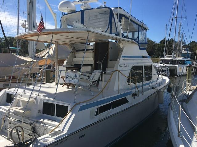 1989 Chris Craft Catalina 48' Cockpit Motor YachtGet ready for Bahamas adventures with this well-equipped 48' Chris Craft Catalina! The flybridge features a hard top with solar panels, and you'll cruise comfortably with twin Cat 3208 diesel engines and a generator. Onboard amenities include a watermaker, apartment-size fridge, icemaker, and washer/dryer. The spacious queen master stateroom comes with an ensuite bath, tub, and shower, while the forward V-berth offers a second head. A dinghy is also available.Currently located in Merritt Island, Florida.