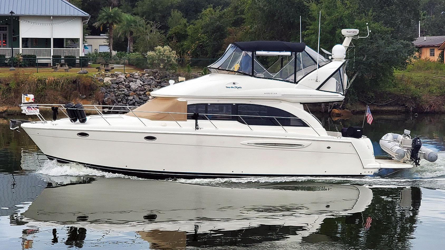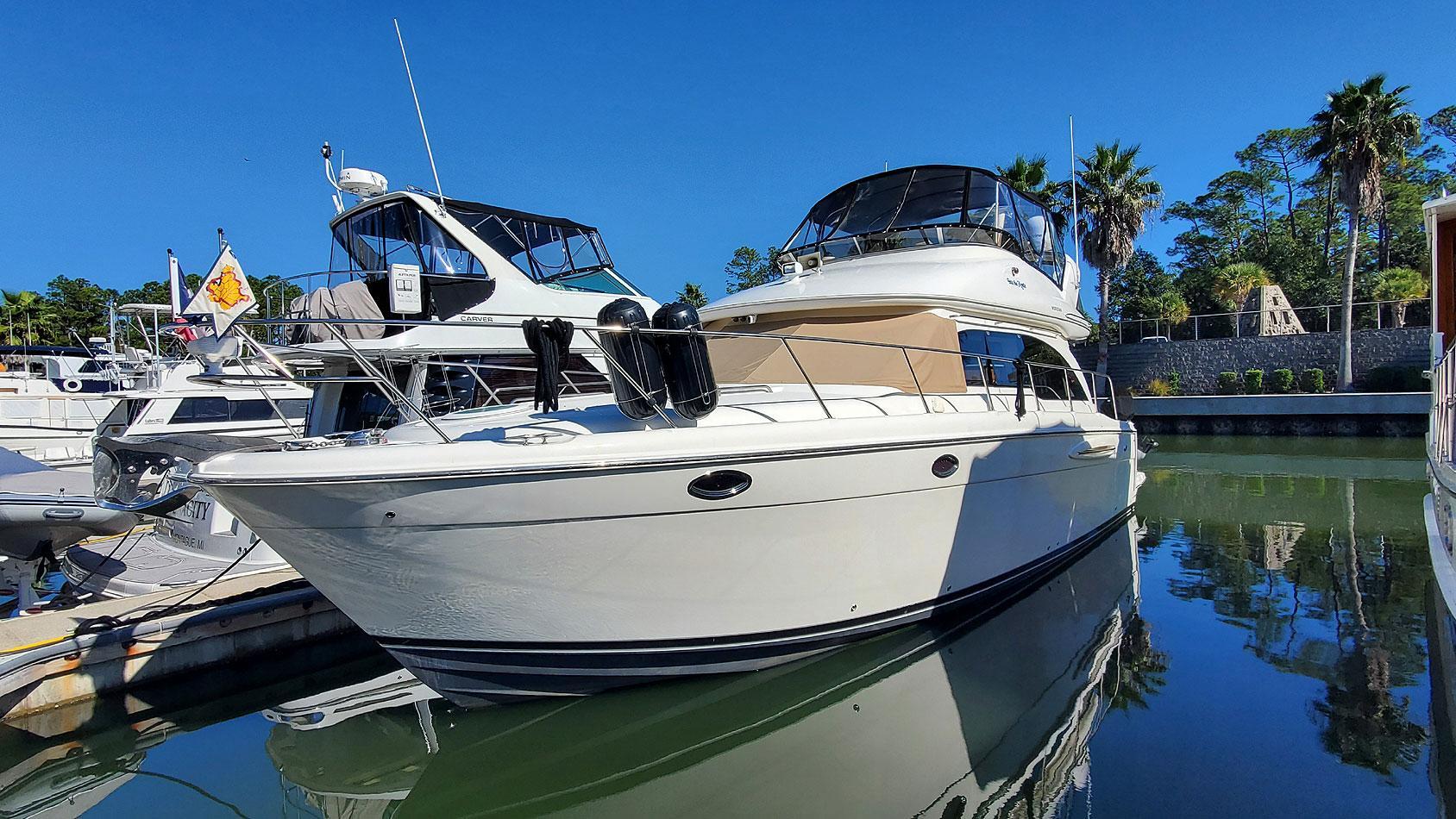 Into the Mystic is a 2 cabin, 2 head, galley up layout with minimal stairs and spacious outdoor areas that makes this yacht a great long term cruiser. The yacht is all set up for long term cruising with many upgrades such as hard-surface flooring, extra storage created from dead space, 2000W inverter/charger, LED lighting throughout, all safety equipment, canvas enclosures, extended swim platform, cockpit Sea Deck flooring, and flybridge woven flooring. Into the Mystic is currently traveling on the great loop in Florida and has spent most of its life in the Mississippi River and the Great Lakes. If you are looking for a ?turnkey looping boat?, this is it.Over $120,000 invested over 3 years in upgrades, maintenance and repairs.Recent upgrades and maintenance includes but is not limited to:2025New bottom paintCutlass bearings replacedProps balanced and protected with Prop SpeedStarboard engine complete rebuild with genuine Cummins partsNew Dometic air conditioner with soft start in salonNew batteries for thrusters, house, main engines and dingyNew impellers and engine zincs on both enginesNew ice maker2023Inverter batteries upgraded to lithiumNew shades in galley and salonSea Deck installed in cockpit and on flybridge steps3 - Arlo wireless cameras monitoring bow, stern and engine room installedNew windlass2022Props tuned and painted with PropSpeedBottom paint renewedReplaced main engine thermostatsNew battery chargerNebo Tracker installedNew smoke detectors installedEPIRB installed200' of 5/16" chain anchor rode installedNew water heater