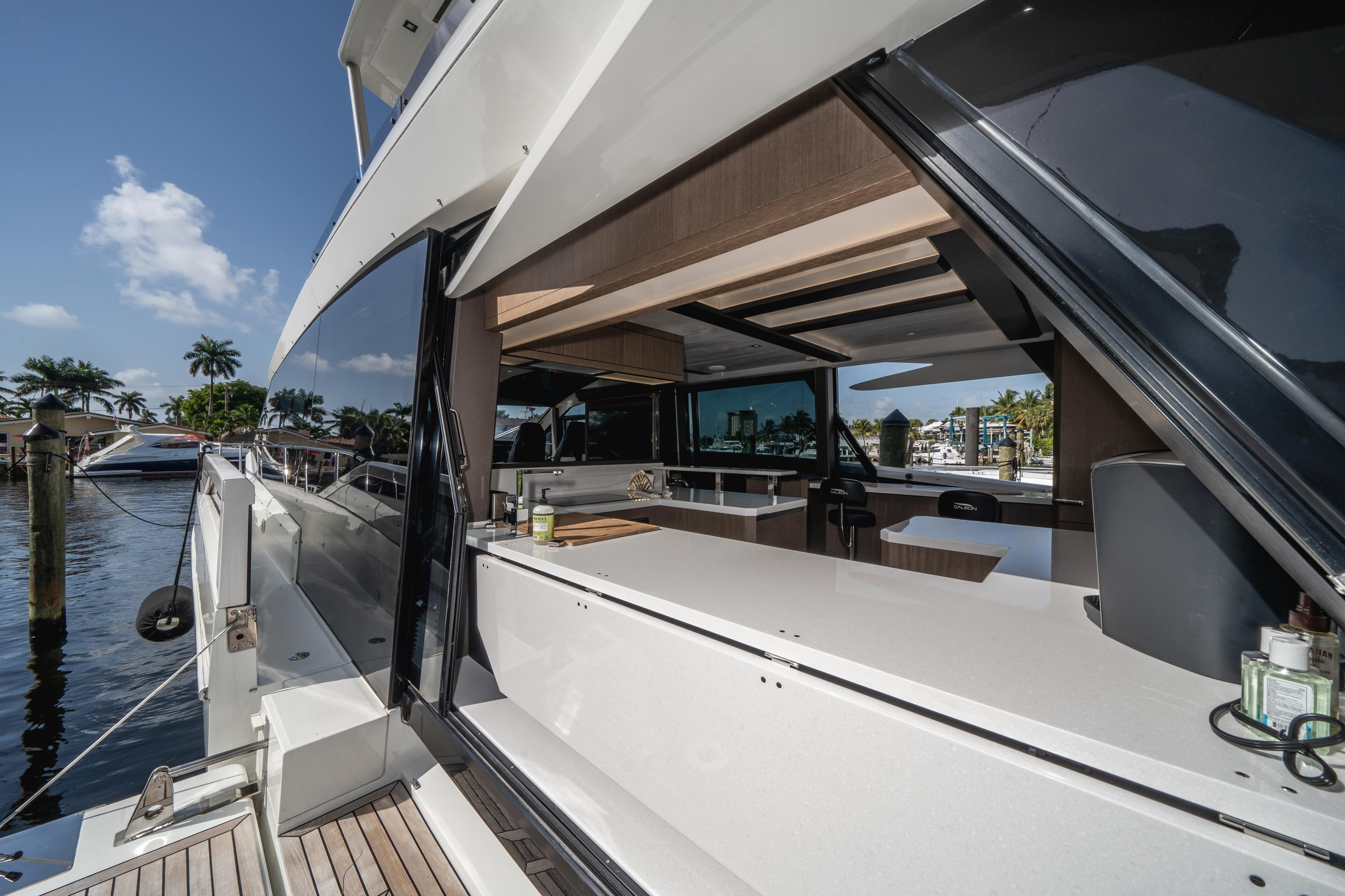 Motivated Seller and ready for his next Yacht. Maintained to Yacht Standards since new with under 500 hours on the mains.The 640 FLY will be a game changer, once again offering solutions never before seen in this class. This transformer yacht will revolutionize the segment with its innovative approach to layout and space distribution. This transformer will follow a new design path to allow for bigger volume and better space distribution, all while maintaining the great exterior appearance Galeon models are known for. Highlights:Yard Period for Annual Services: Bottom Paint, Prop Speed, Engines, Gen & SeaKeeperSeaKeeper StabilizationBow & Stern ThrustersBeach Mode; Port & Starboard fold down cockpit wingsWalkthrough windshield with transforming bow seating / lounging areaHardtop with retractable center sectionLED Underwater Lighting PackageInterior Highlights:Beachwood Grey in Matte finishMarble Oak Flooring on main levelMosaic Shower walls in all headsWhite Alcantara suedeEntertainment Highlights:KVH Tracvision Sat TV40" LED TV in owners Cabin40" LED TV in forward cabin50" LED TV in Salon50" LED Hi-Lo TV in galley facing cockpitFly Entertainment includes:Refrigerator, Ice Maker, Kenyon Electric Grill, SinkFor a full file on this vessel, contact Darren Phillips.