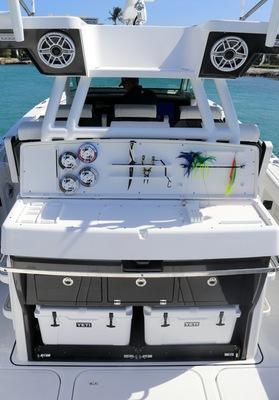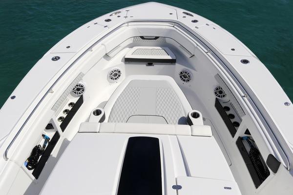 2024 Blackfin 400CCEngine: White Mercury Twin Quad Mercury 400XXL V10 Verado 1600HP White NoneHard Top UndersideColor Scheme: Carolina Blue #3Colors: Carolina Blue Sheer Stripe · Arctic White Hull · Carolina Blue Boot Stripe · Carolina Blue Hard Top Underside · Arctic White BottomUpholstery Options· Feather UpholsteryHull & Deck· Swim Platform Inlay - Sea Dek· White Rub Rail (in Lieu of Black), Heavy Duty w/Stainless Steel InsertCanvas· Console Side Weather CurtainsBilge Compartment· Dive Tank Storage Rack (1)Systems· Prewire for Gyro Stabilizer (Includes Additional Lithium Battery)2024 Standard FeaturesHull & Deck: Bow Tow Eye, Heavy Duty, Reinforced Stainless Steel · Bow Thruster · Cleats , Pull Up Stainless Steel (10) · Drum Windlass w/ SS Anchor and Through Hull Roller Hardware · Dive / Boarding Door, Port Side w/Dive Ladder · Gemlux Outriggers w/ Carbon Fiber Telescoping Poles · Resin-Infused Double stepped Hull with Composite Transom & Structural Grid · Resin-Infused Deck, Hardtop and Console with Composite Materials. · Ten Year Structural Hull Limited Warranty · Lights, Navigation · Swim Ladder's, Stern Port & Stbd.Cockpit: Baitwell, Transom Fiberglass Lid, Blue/White Light & See Thru Face - (70 Gal.) · Baitwell, Bow Acrylic Lid, Blue/White Light (30 Gal.) · DiveLadder · Faucet, Wash Down, (Raw Water) Port, Stern & Bow · Faucet, Wash Down, (Fresh Water), Starboard, Stern & Bow · Rod Holders, Stainless Steel, Cup/Rod Combo, Gunnel Mounted (12) · Rod Holders, Stainless Steel Transom Mounted (6) · Rod Holders, Hardtop, White or Black (14) · JL Stereo Package, Includes (6) 8.8" (4) 7.7" JL Speakers w/LED Lighting, Wireless Remotes,(4) Subwoofers, (2) 5 channel Amps,(1) 8 Channel Amp. · Fish Boxes, (160) Gallon In-Floor (2) With Macerated Pump Outs · Fiberglass Hardtop System w/Powder- Coated Aluminum (White) Framework, Tempered Glass Windshield w/Wiper & Washer, LED Overhead Lighting RGB (7), Rod Holders (4), Overhead, Powder Coated Aluminum Handrails & LED Spreader Lights (8) w/ Molded Step. · Aft Prep Station, Fiberglass w/ Pull-Out/Removable Yeti Tundra, (45QT ) Coolers (2), Fiberglass Sink (1) w/Faucet, Storage Drawers (4) Aft. Drawers Stbd (2) w/ Utility Boxes (4),Drawers Port (2) w/Trash Can. w/ Electric SS Grill. · Outlet, USB (6) · Wireless Phone Chargers (3) · 12V 30A Outlets (6) (2 Fwd) (2 Midship) (2) AftCabin: Air Conditioner (16K BTU) · Outlet, USB (2) · Forward Berth with Mattress and flip up backrest. · Lighting, 12 V Direct/Indirect · Microwave 120 V · Sound Bar · Skylight · Drawer 65 Black Glass DoorRefrigerator/Freezer · 120V Outlets (1) · 22" Smart T.V · Port Light · Rod Storage (6)Seating: Bow & Cockpit Bolsters · Dual Row Helm Seating (6) , w/ Heated Seats, Power Adjustment on Captains Seat. · Forward Facing Console Lounge w/ Intergraded Armrest / Cup Holders · Transom Seating (White or Black)Technical: Compass · Dual GPS/Chartplotter - Garmin 8624 · B175 HW , Transducer and B175L, Transducer. · FLIR Thermal Camera · Garmin 215 VHF (2) · Garmin GMR 424 x HD2 48" Open Array · Elevated Helm Platform, Foldaway w/Sea Dek · Mercury Vessel View 903 · Outlet, USB (2) · Steering, Tilt, Electric · Switches, Lighted Weatherproof · Wireless Phone Chargers (2)Head: Enclosed Shower w/ Lighted Shower Head · Macerator w/Overboard Discharge · Toilet w/Teak Bench Seat · Vanity w/Mirror · 120V Outlet (1)Electrical Systems: Battery Charger · Battery Trays, (4) Engine (2) House, Group 31 · Bonding System, Underwater Gear with Anode · Inverter AC/DC w/Lithium Ion Batteries (2) (Replacing Generator) · Power Distribution Panel, w/ Isolated Engine and House Batterys · Glendinning Reel, 30Amp 50ft Cable. W/ Push Button Retraction. · Weatherproof Electrical System w/Individual Circuit ProtectionBilge Compartment: Automatic Bilge Pump (3) Bilge, (1) CabinFuel Systems: Double Clamped Fuel Lines · Fuel selector Valves (4) · WaterSeparating Fuel Filters (4)