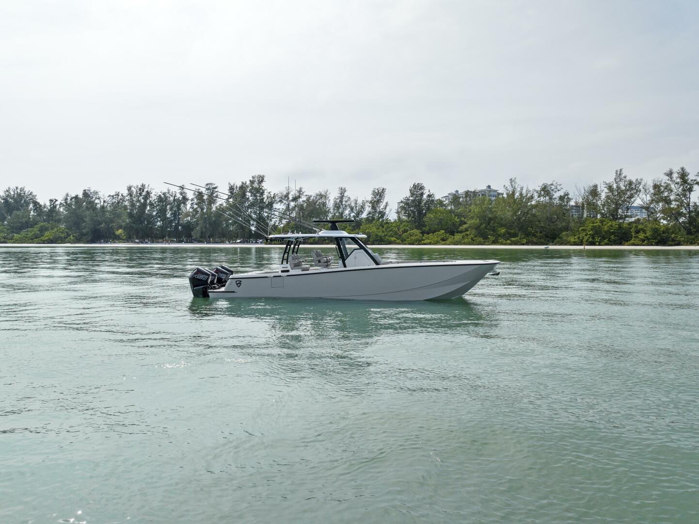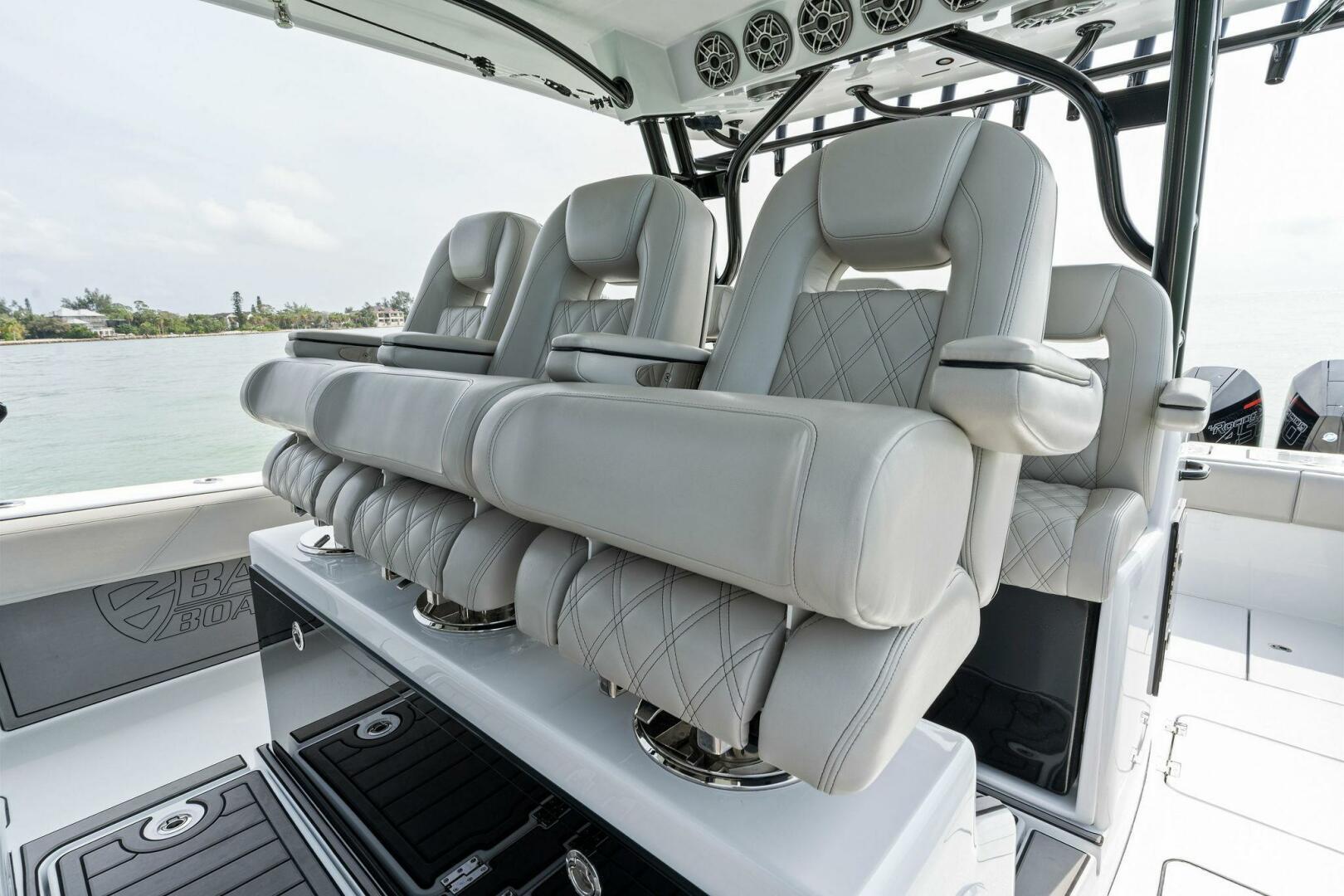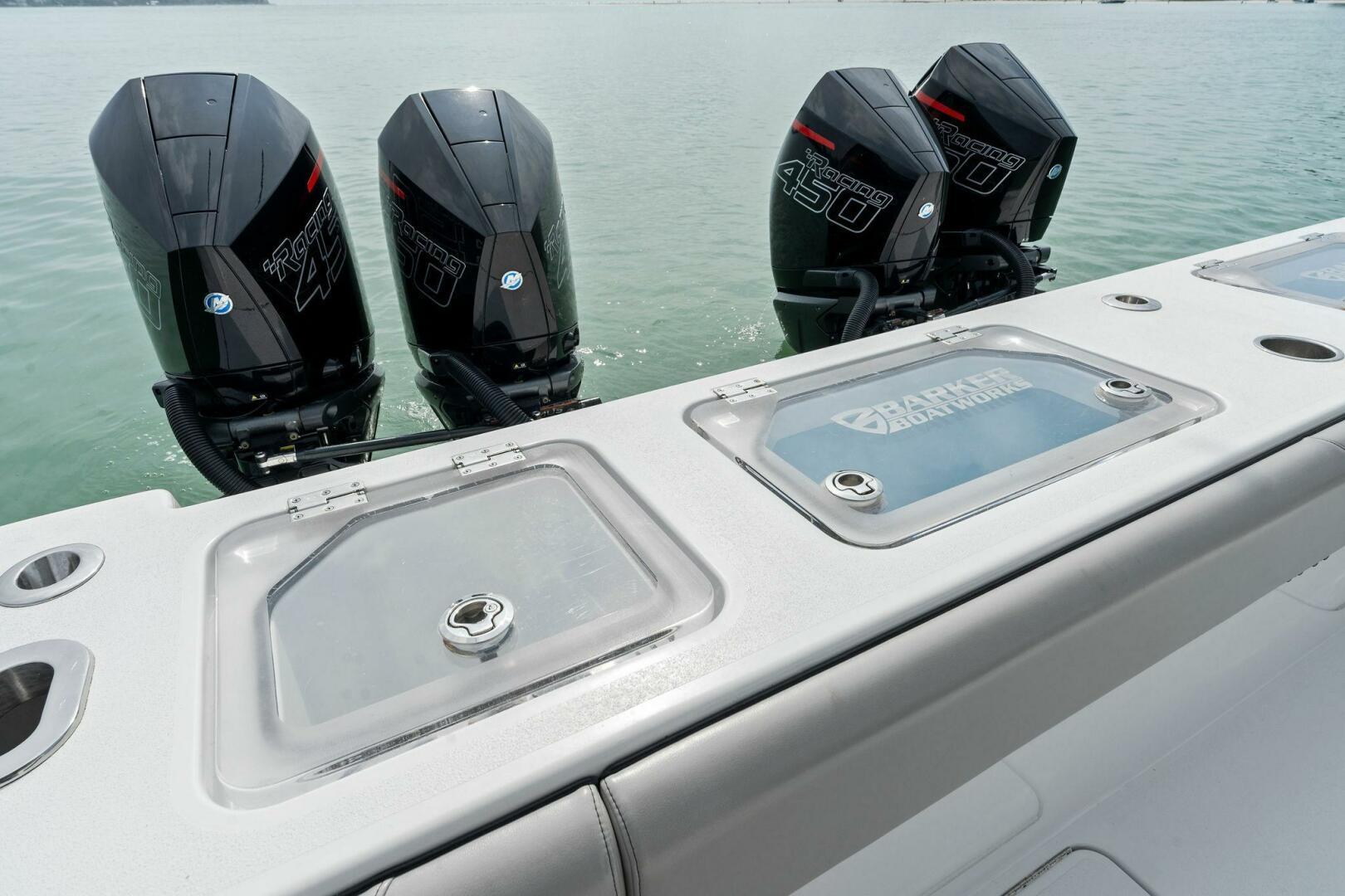 2022 Barker Boatworks 40 HPCNotable Features:Dual-Row with 3 Abreast Helm SeatingRelease Marine SS Pedestals & Slides Double Diamond PleatDual 65 qt. Pull CoolersKenyan Electric Grill (Includes Inverter & Corian Top)Fresh Water SinkDual-Row Hard Top50” Black Oak Light BarRebel EZ-5 Windlass Kit including Anchor, Chain, and Dynema Rode 600’(4) Engine CoversConsole/Leaning Post CoverPlumb 55 gal. Floor WellsAdditional Hooker Sea Chest with (2) 2500 GPH Variable Speed Pumps100 Gallons Additional Fuel - For a total of 770 Gal.Raritan Electric Marine HeadCustom Paint Black (Open Array, Optimus Antenna, Etc.)