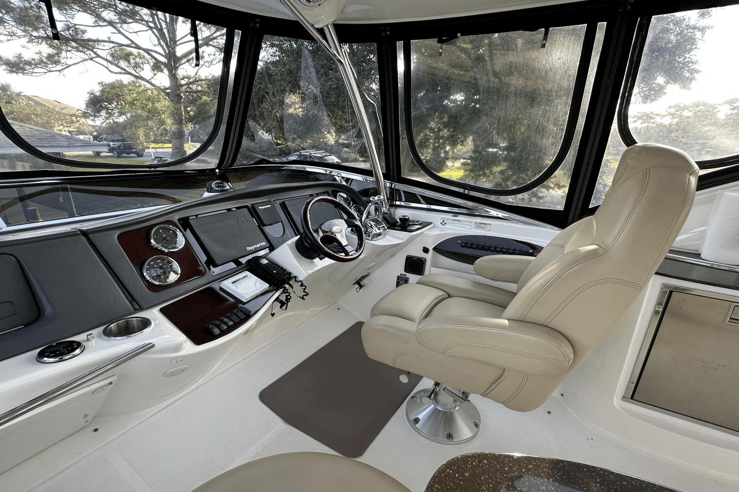 Introducing the "Windy Summer" 2015 Meridian 441 Sedan Bridge, a remarkable vessel designed for luxurious cruising and thrilling adventures on the water. Equipped with twin Zeus Cummins 480 HO QSB 6.7L diesel engines, this boat delivers exceptional power and performance. Step aboard and you'll discover a host of upgrades that enhance your boating experience. The master stateroom features an impressive entertainment system, while the second stateroom also offers its own entertainment amenities. The interior boasts exquisite quarter French walnut wood, creating an elegant and inviting atmosphere. This Meridian 441 Sedan Bridge is equipped with the latest technology, including the upgraded Raymarine Axiom Premium Navigation Package on the bridge. Other notable features include a salon ice maker, new refrigerator and freezer combo in the galley, new microwave, hide-a-bed, and a universal remote for easy control of entertainment systems. Both comfort and convenience are prioritized with amenities such as air conditioning and heat, a washer and dryer combo, and a central vac system. The foredeck sunpad beckons for relaxation, while the full bridge hardtop provides shelter and shade. Enjoy your favorite tunes with the bridge stereo system and unwind with a movie on the bridge LCD TV with DVD player. Practical features include a glendinning cablemaster system, under water transom lights, and an overboard discharge with macerator. Recent updates include new upgraded interior upholstery, a fresh bottom job, and a prop speed treatment on the underwater running gear. Engine and pod services have also been recently completed, ensuring optimal performance. Don't miss your chance to own this impeccable Meridian 441 Sedan Bridge. Contact us today to schedule a viewing and experience boating at its finest.