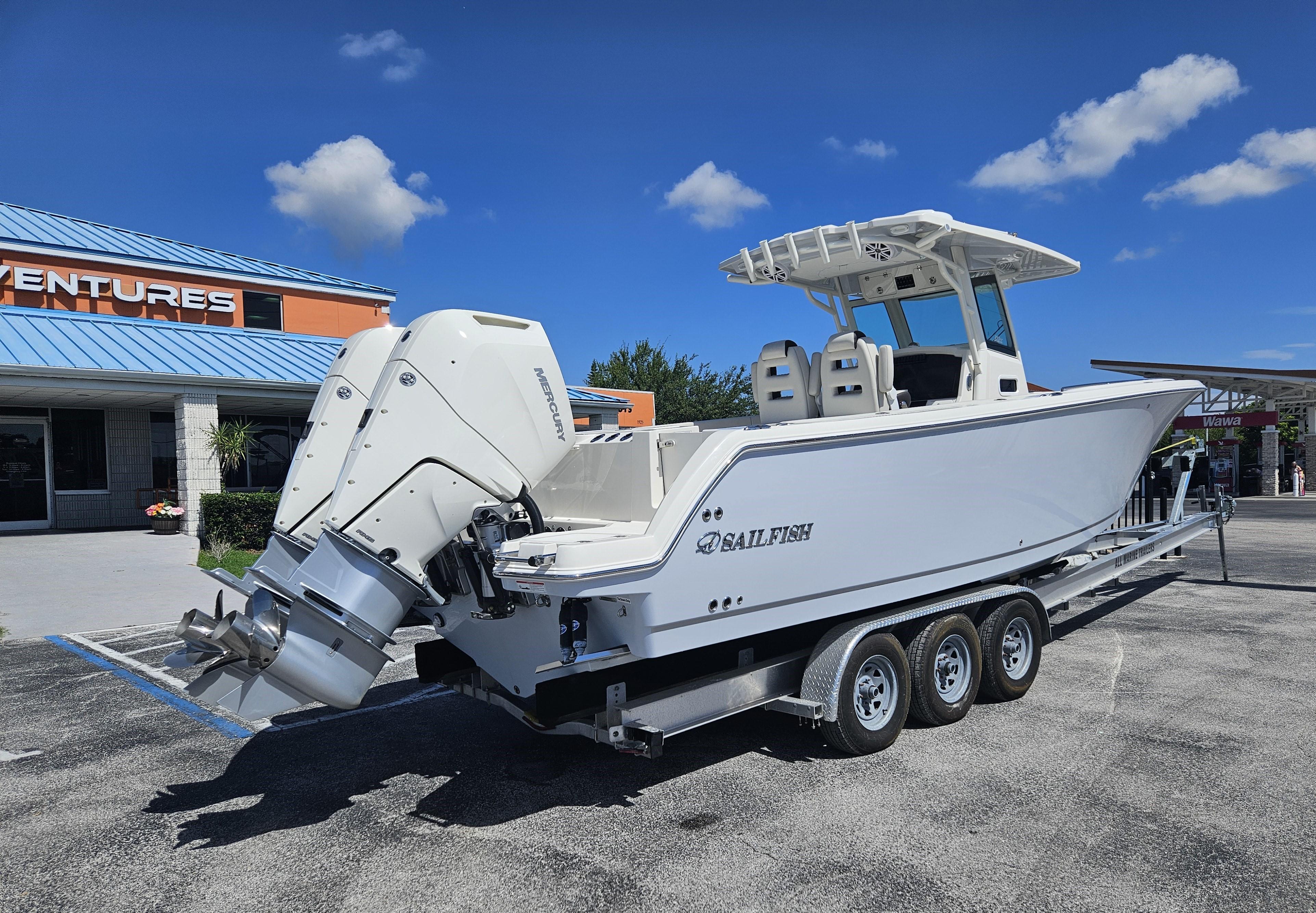 Available In Store: Tampa - HIN: YSIR0038L324Sailfish 312CCTwin Mecury 400Hp The new 312 Center Console provides exceptional fuel efficiency and comfort through its innovative VDS Hull design. It also boasts a stunning appearance, generous space, and a strong focus on safety. Everything you require is thoughtfully arranged for effortless use, whether you're fishing or simply enjoying a day on the water.Outfitted with Sailfish's Entertainment Package - including a retractable ski tow pylon and underwater lights - GARMIN GPS, Mercury Joystick, and more, this Sport Fisher is suited just as well for a family day on the water as it is for a perfect fishing excursion. *Trailer not included but available to purchase