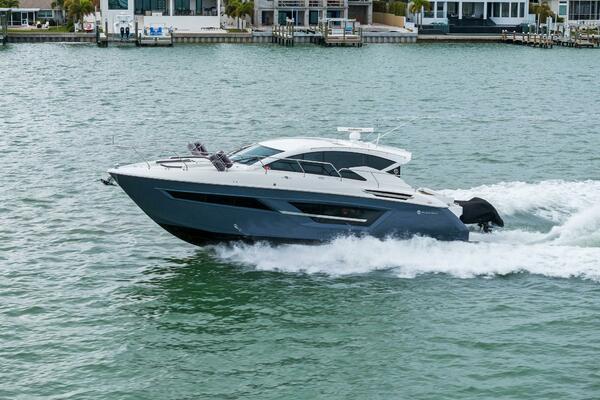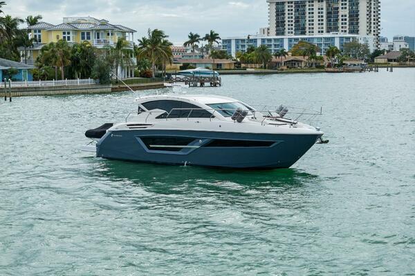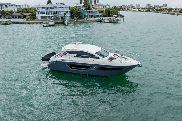 2020 46 Cruisers Cantius “Sweet Caroline” motor yacht for sale. Listed in Tampa Bay, this 2020 46’ Motor Yacht lets you enjoy elegance and practicality. It is in fantastic condition and easily showable in Clearwater, Florida. This 46 Cantius has been well-maintained and has unique upgrades including an electrosea strainer for the AC system! The owner has taken time to add details including heat reduction tint in the salon, wave wifi system, and freezer in the engine room. “Sweet Caroline” has an impeccable layout, including a full beam master, an incredibly spacious day head, and a single level from the cockpit all the way to the helm.The Cantius Series from Cruisers Yachts encompasses everything a boater could want on the water with luxe accommodations and immaculate attention to detail. With its stunning features and spacious cockpit and salon seating, a grill station and a very cozy Master Stateroom and VIP Stateroom you can embark on an intimate getaway or an exciting adventure with family and friends! This Cantius won’t last long. Call or text to schedule your private showing today!