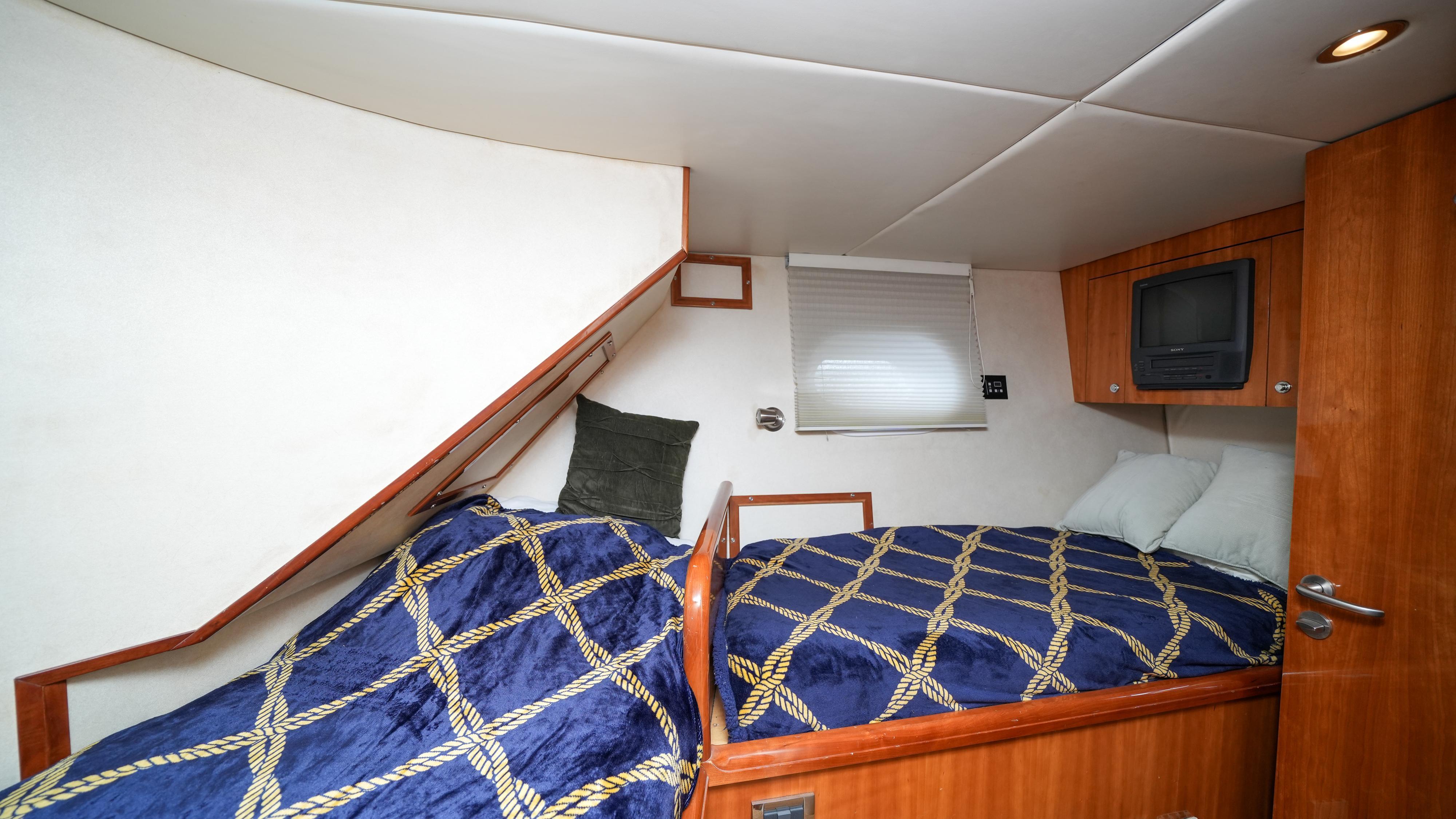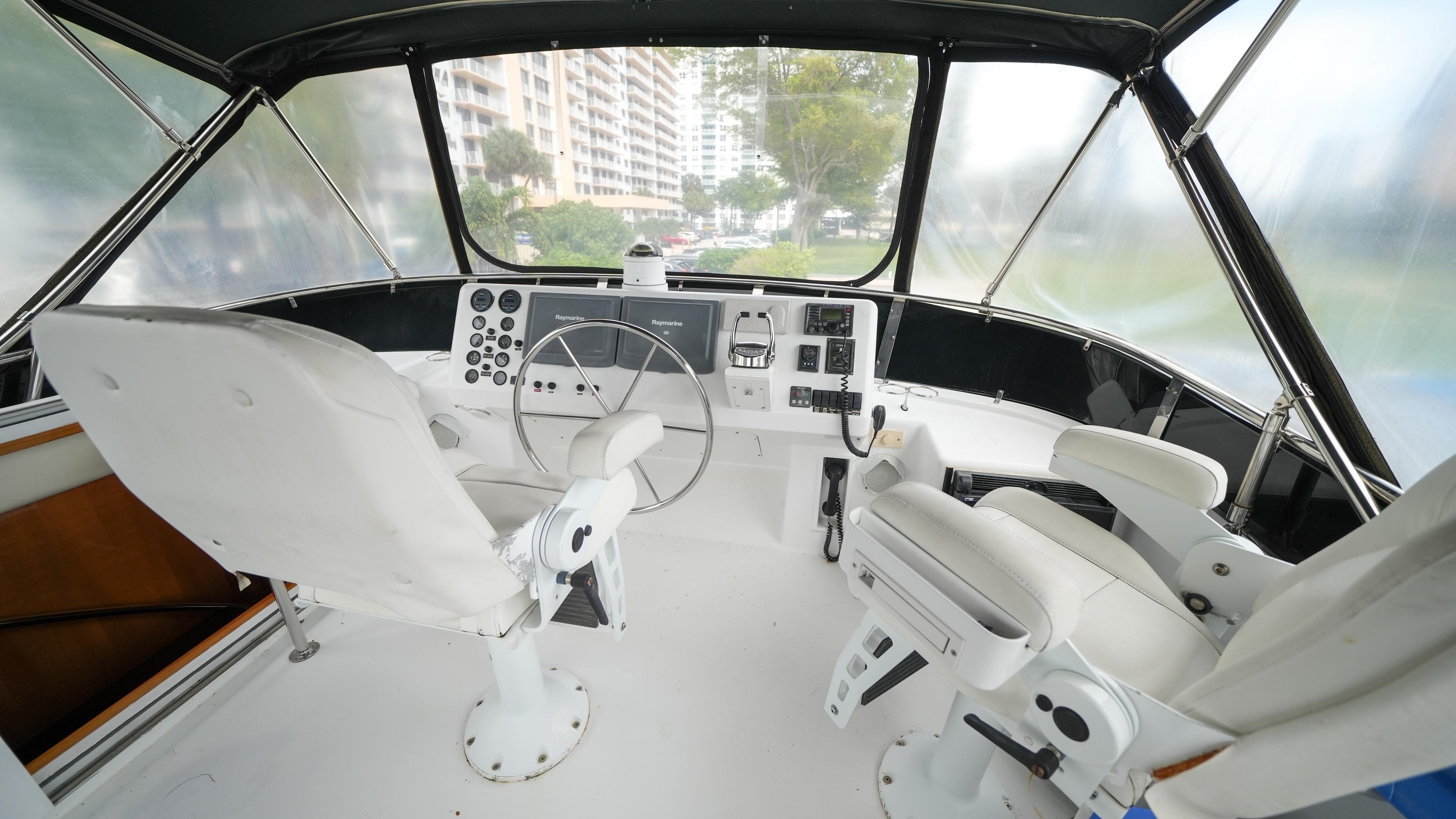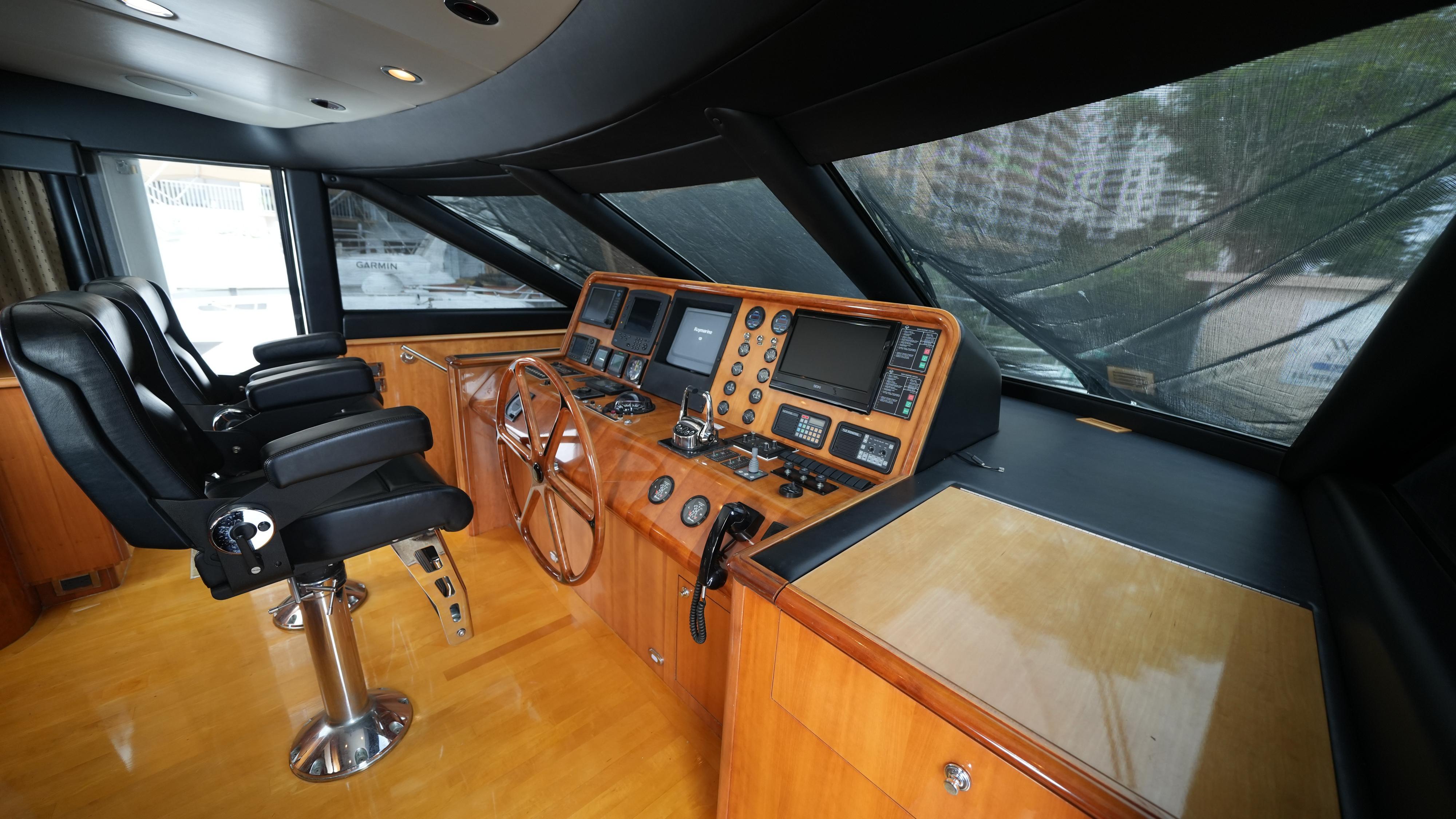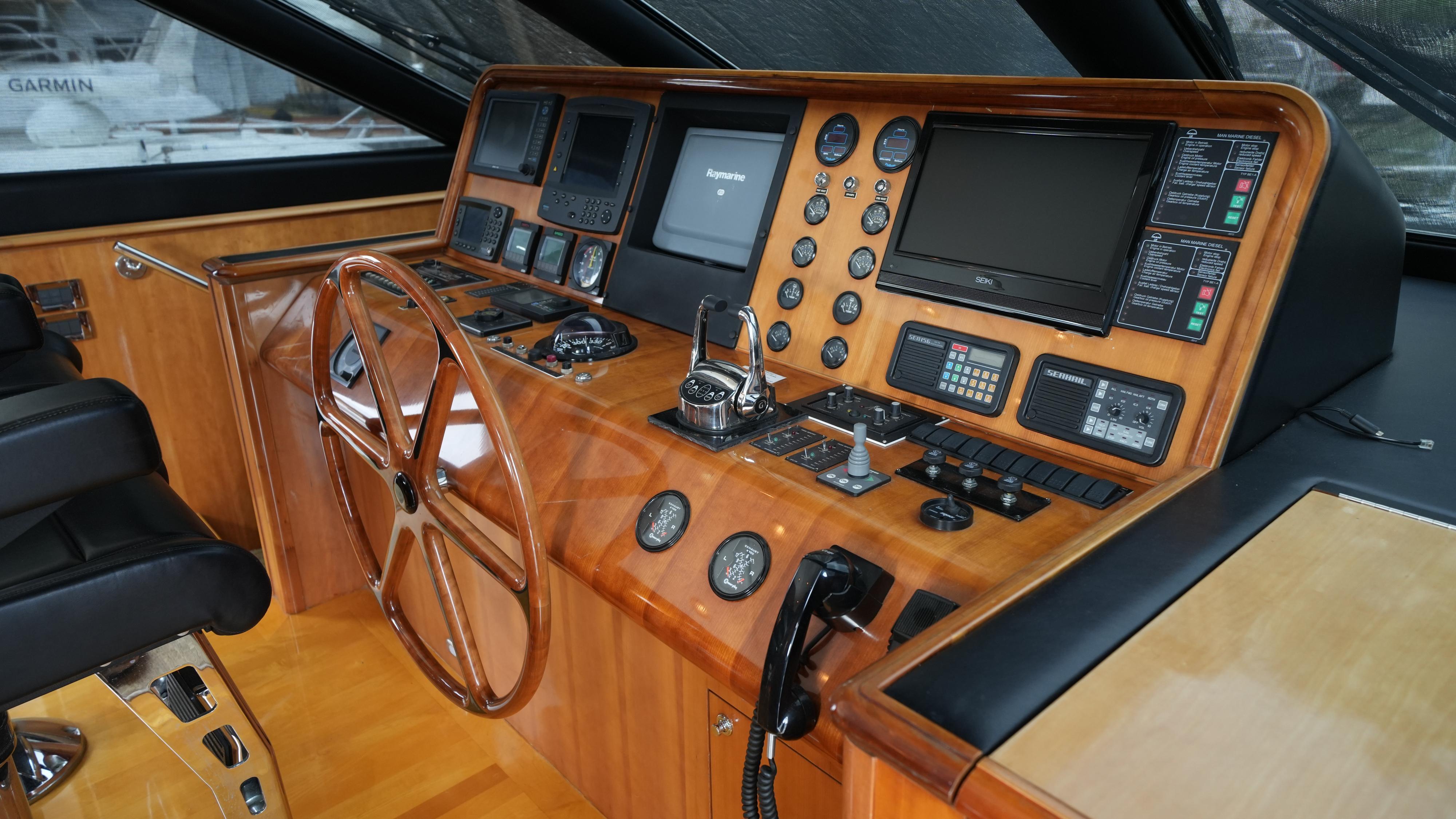 Navigational EquiptmentPilothouse Electronics: Northstar 961 GPS Plotter Sea 156 VHF Robertson AP21 Autopilot SIMRAD AR77 Electronics Gyro Compass Ray E120 Color 96 mi. Radar/Plotter w/6' Open Array Antenna Simrad RA 42 Radar Glendinning electronic shift and throttles Datamarine Link System: Speed, Depth & Wind Indicator ACR Remote Spotlight w/remote (2) Floscan Units Bilge Pump Monitoring System Ritchie Compass Wesmar Stabilizers Thruster Controls 12" Monitor for Ship's Camera Systems EPIRB KVH Track vision SAT Systems (2) Flybridge Electronics: Raytheon E120 Monitors Flo Scan Repeaters' Glendinning electronic shift and throttles ICOM M504 Marine Vhf Radio Thruster Controls ACR Remote