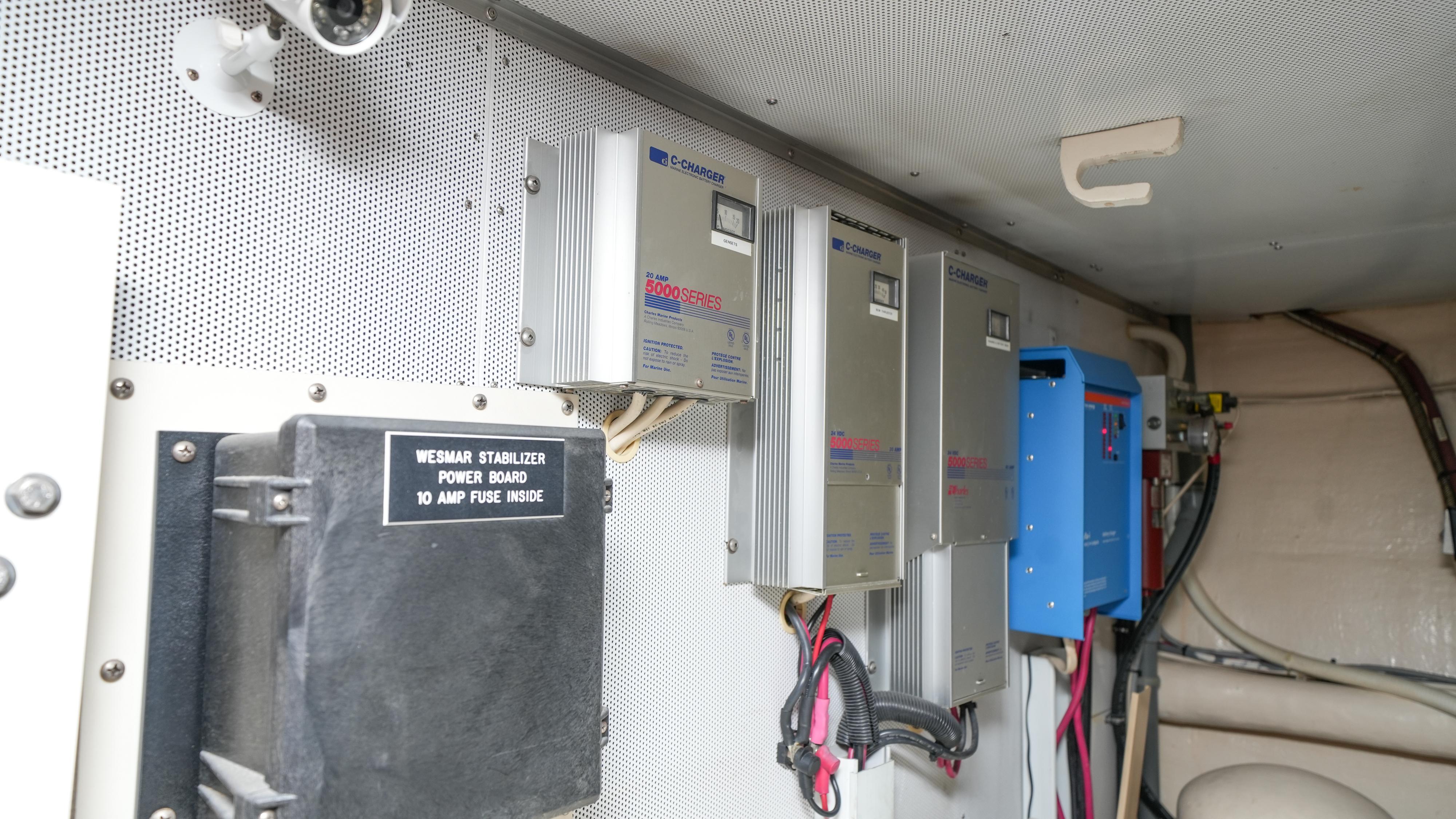 21 kW Onan Genset 1930 hrs. 15 kW Onan Genset 725 hrs. 50/100 Shore service Glendenning Cablemaster BN shore power management system Mastervolt 24/100 amp charger Charles C- charger system Galvanic Isolator