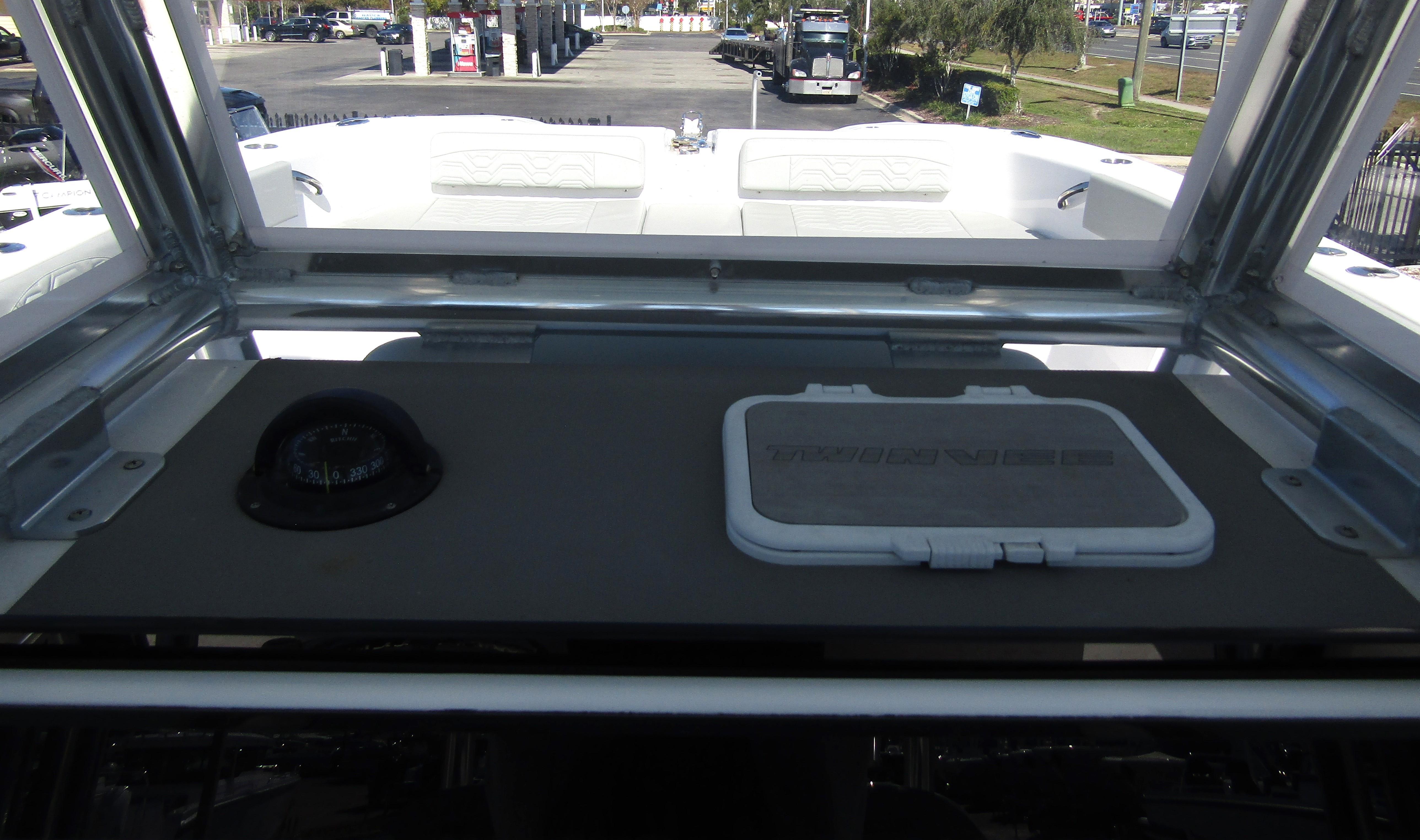- Molded Fiberglass hardtop w/ integrated E-box, acrylic door, recessed overhead LED lights and Outrigger pads