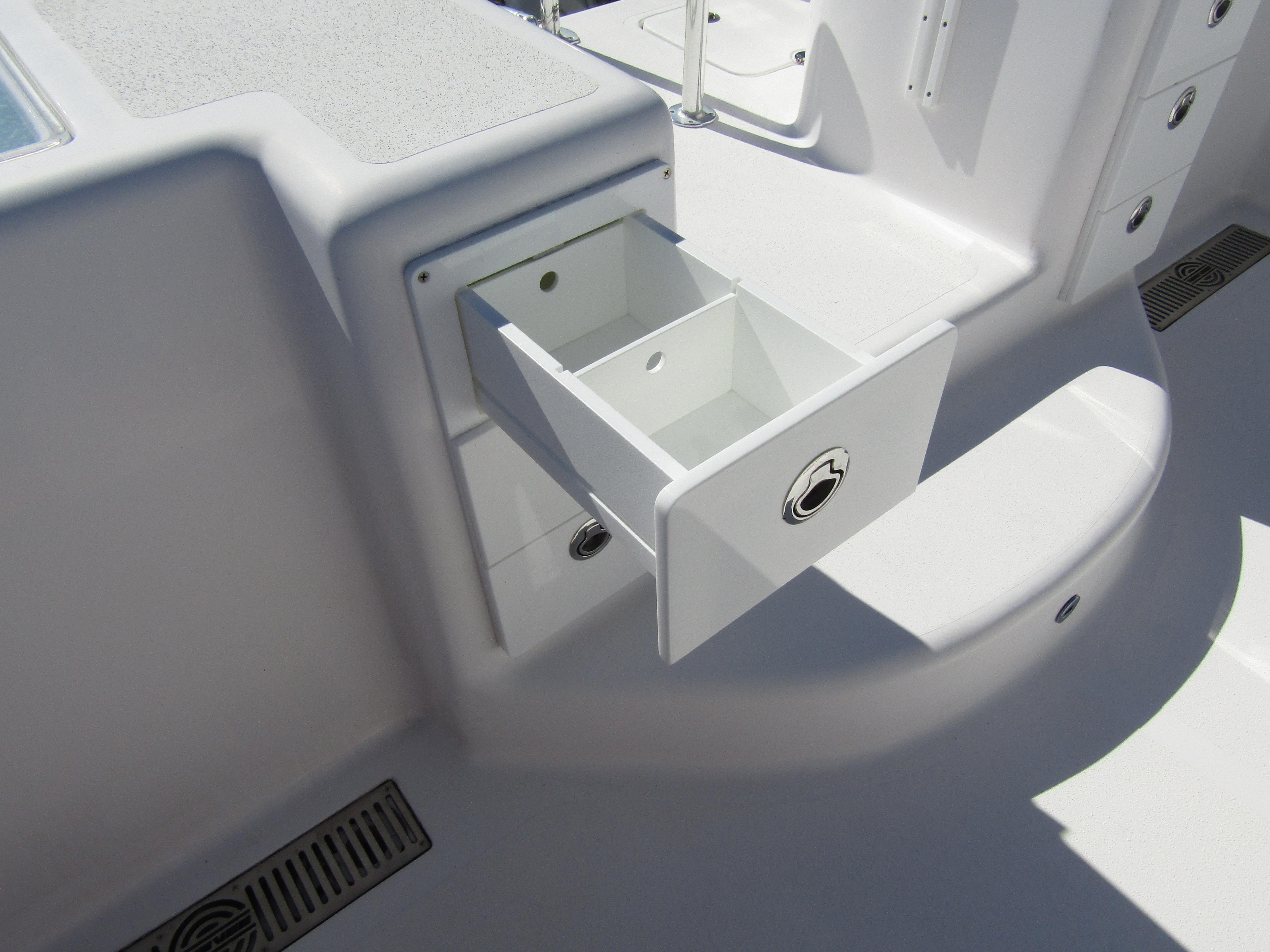 - Stern 3-drawer tackle centers, 2 total (1 ea.) port & stbd