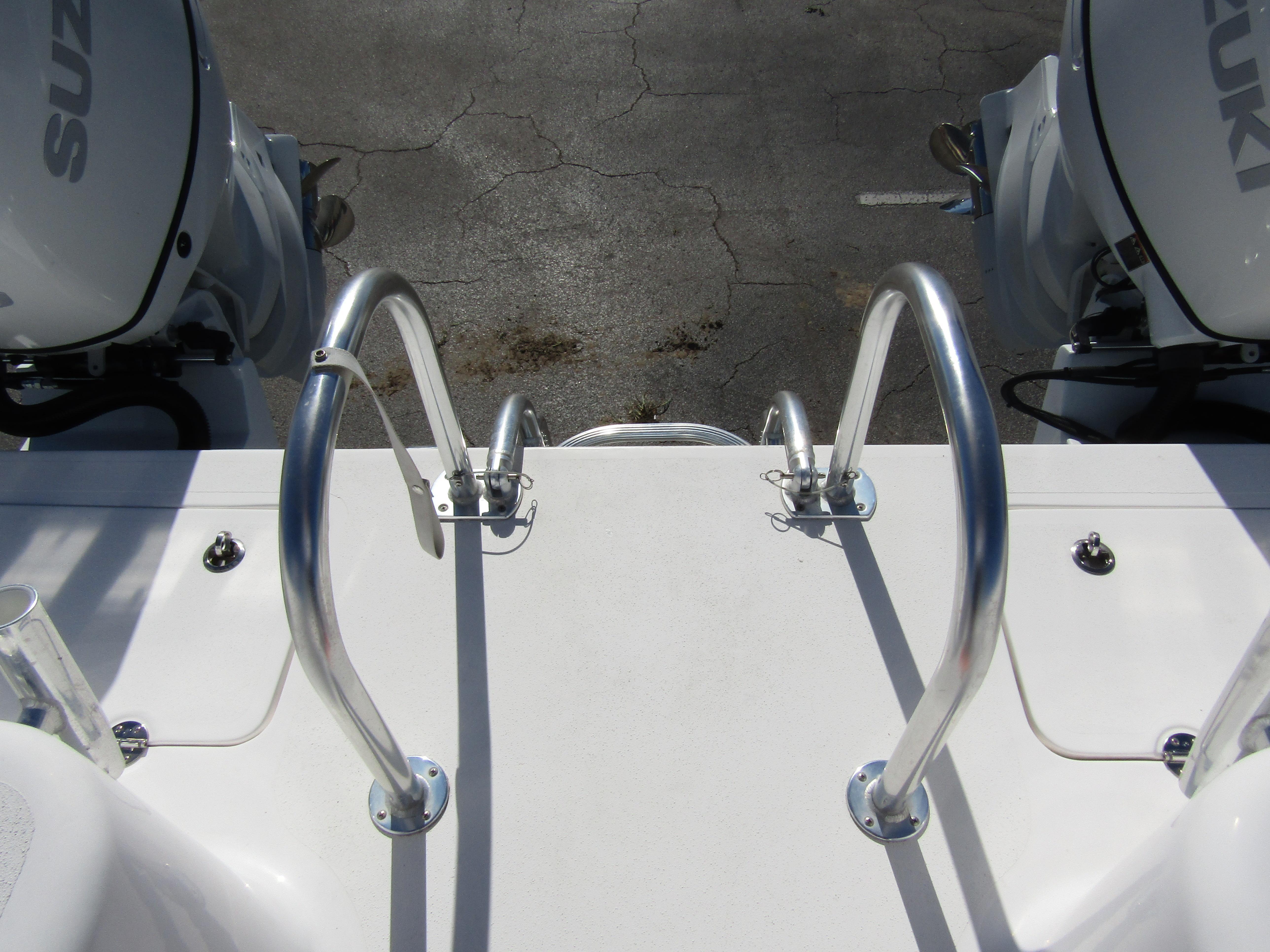 - Rod Holders: Aluminum transom mounted “Euro” rod holders 10 total (5) each port/stbd