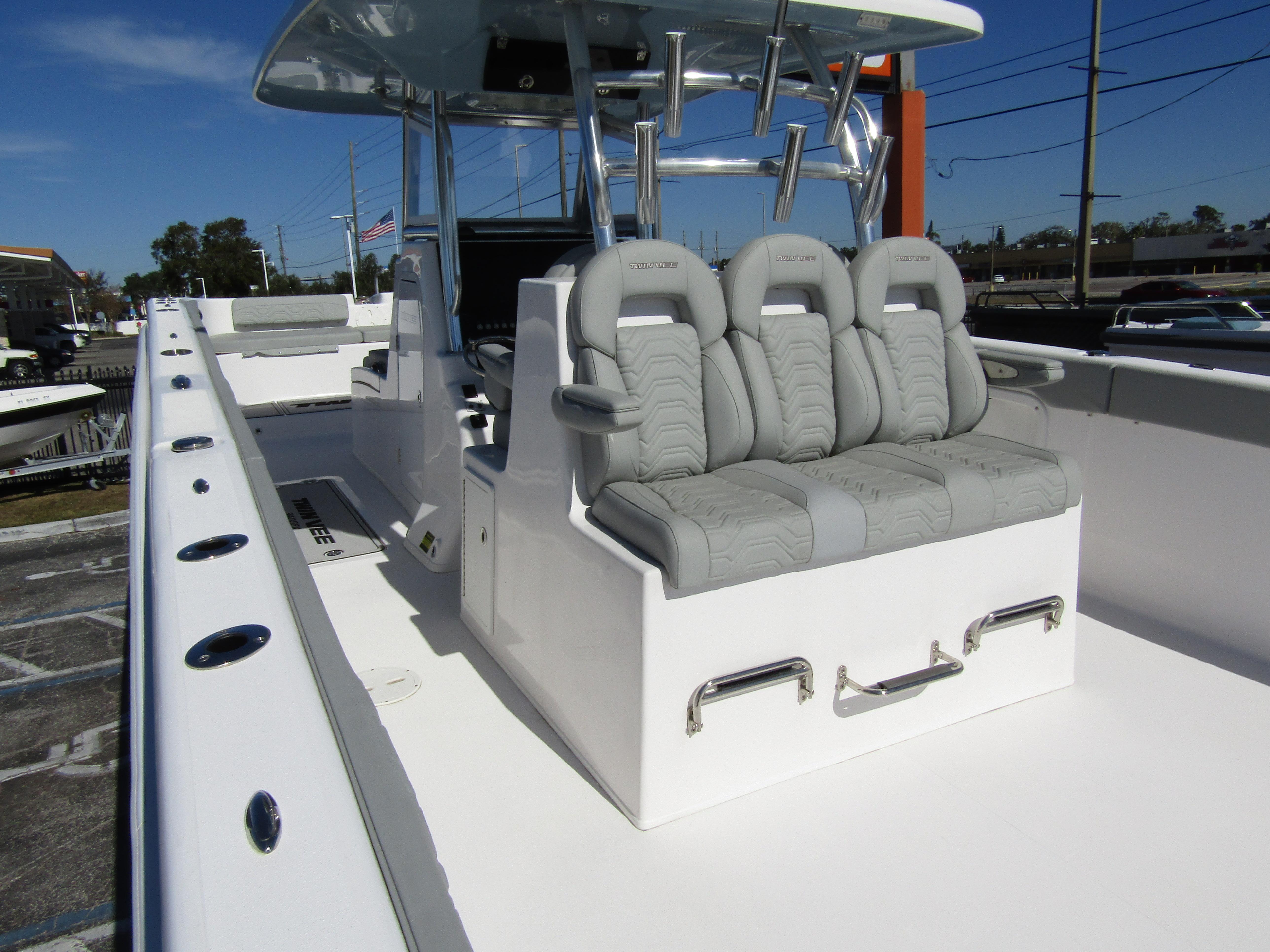 Available In Store: TampaTwin Vee 340 GFX CatamaranTwin Suzuki 350Hp*Trailer not included* The Twin Vee 340 Go Fish-X is tailored for passionate anglers and boaters who embrace life with a forward-thinking, powerful, and performance-oriented mindset. Twin Vee's 340 GFX is precisely engineered to ensure no fish can escape its relentless pursuit. Standard features include 382 gallons of fuel capacity, 800 maximum HP, 300-gallon fish boxes, three live wells (two in the stern and one in the helm seat), an XXL coffin box, Llebroc seating, and much more. Infused with Twin Vee DNA, this vessel becomes a formidable force on the water, adept at conquering waves and capturing fish, catering to the competitive spirit of world-class sportsmen. Twin Vee has meticulously engineered the new 34-foot PowerCat GFX to seamlessly integrate the finest elements of center console fishing with the stability and ride quality of twin hulls, creating a vessel that exceeds the expectations of anglers worldwide. Our unwavering mission is to design and construct high-performance vessels that offer stability and comfort for offshore boating and fishing, setting new standards in the industry.