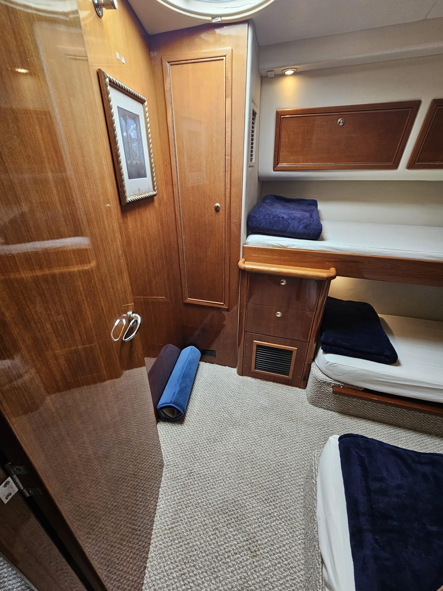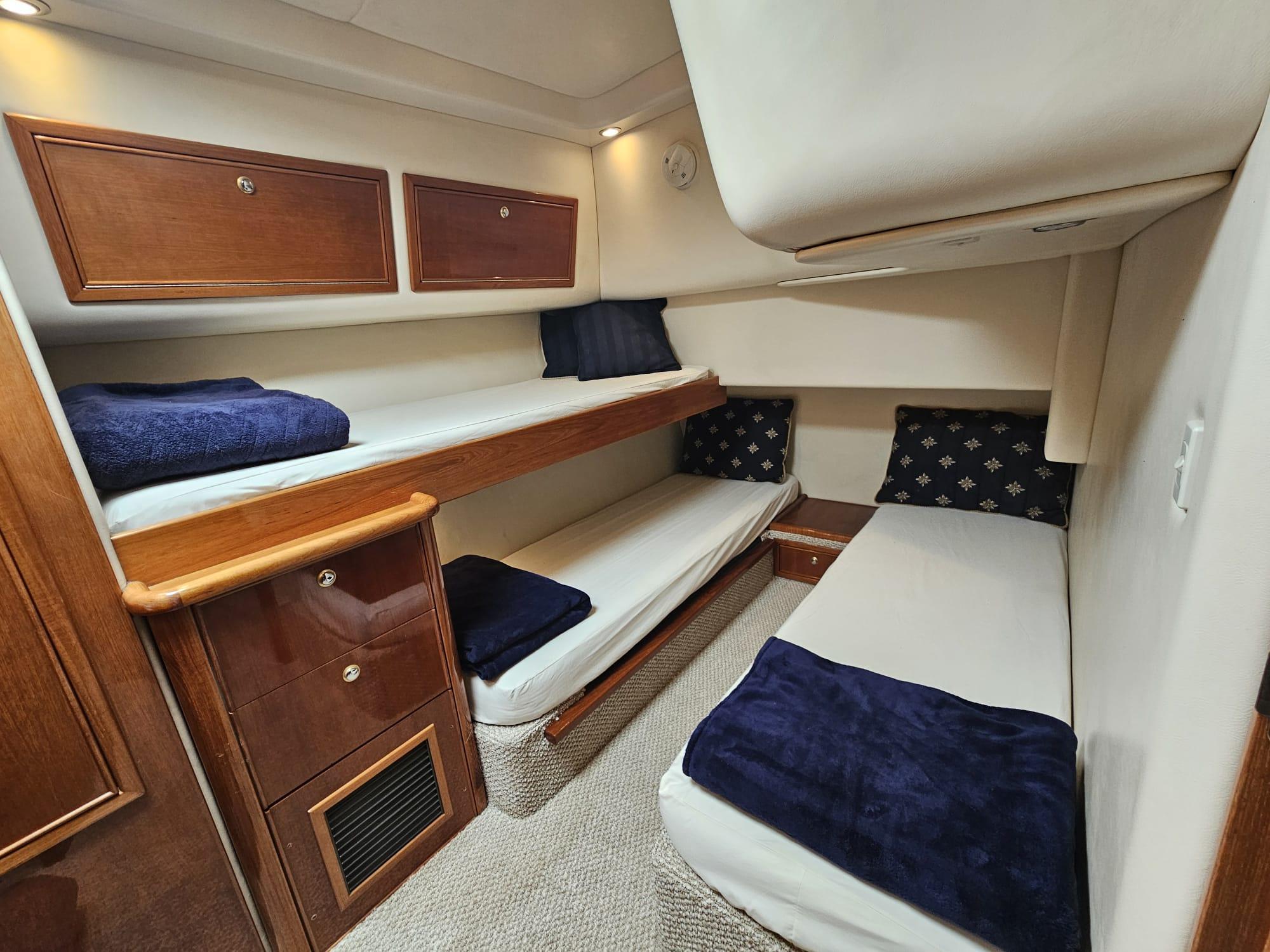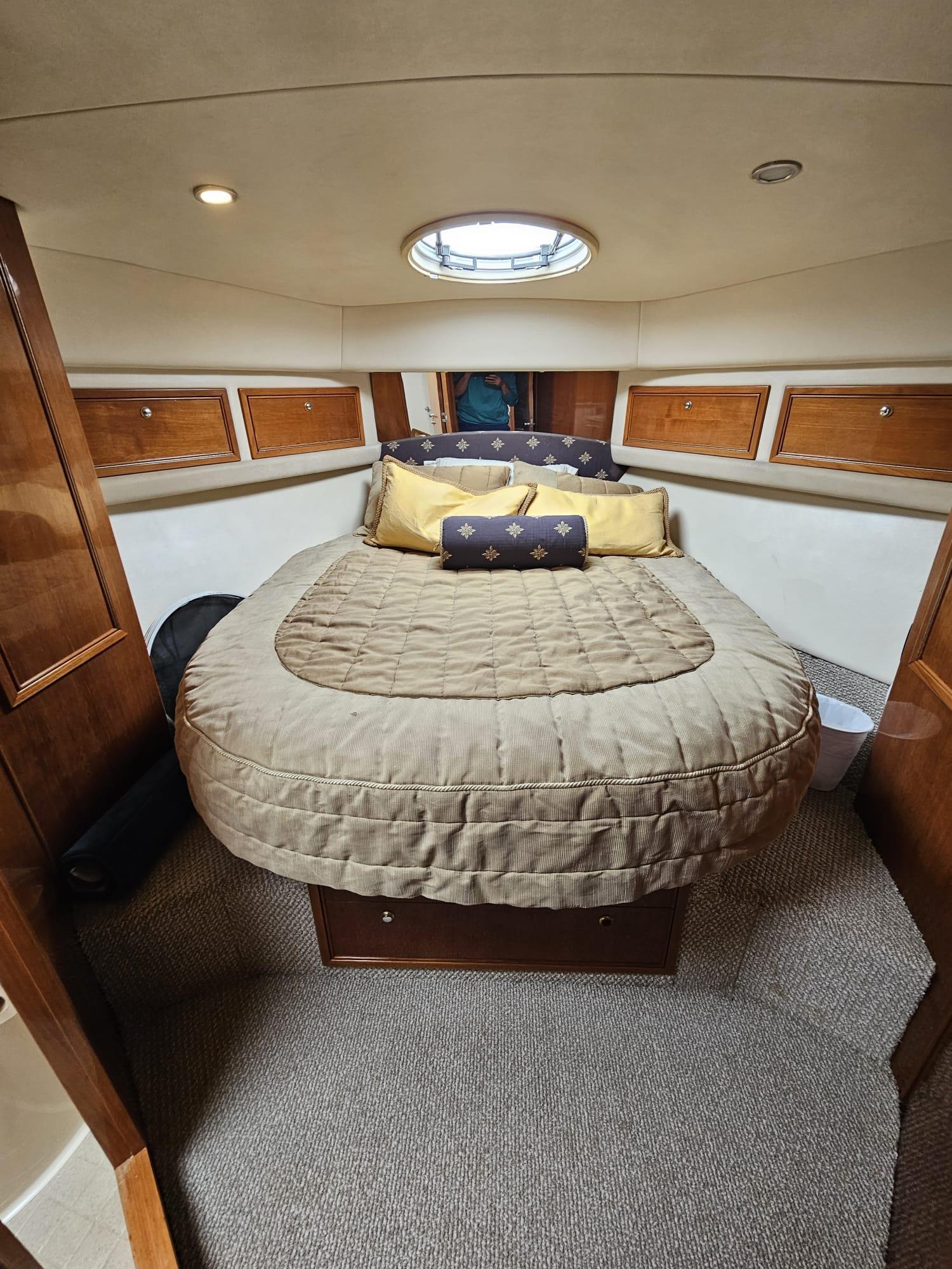 - Queen berth (walkaround) with Innerspring mattress and storage.