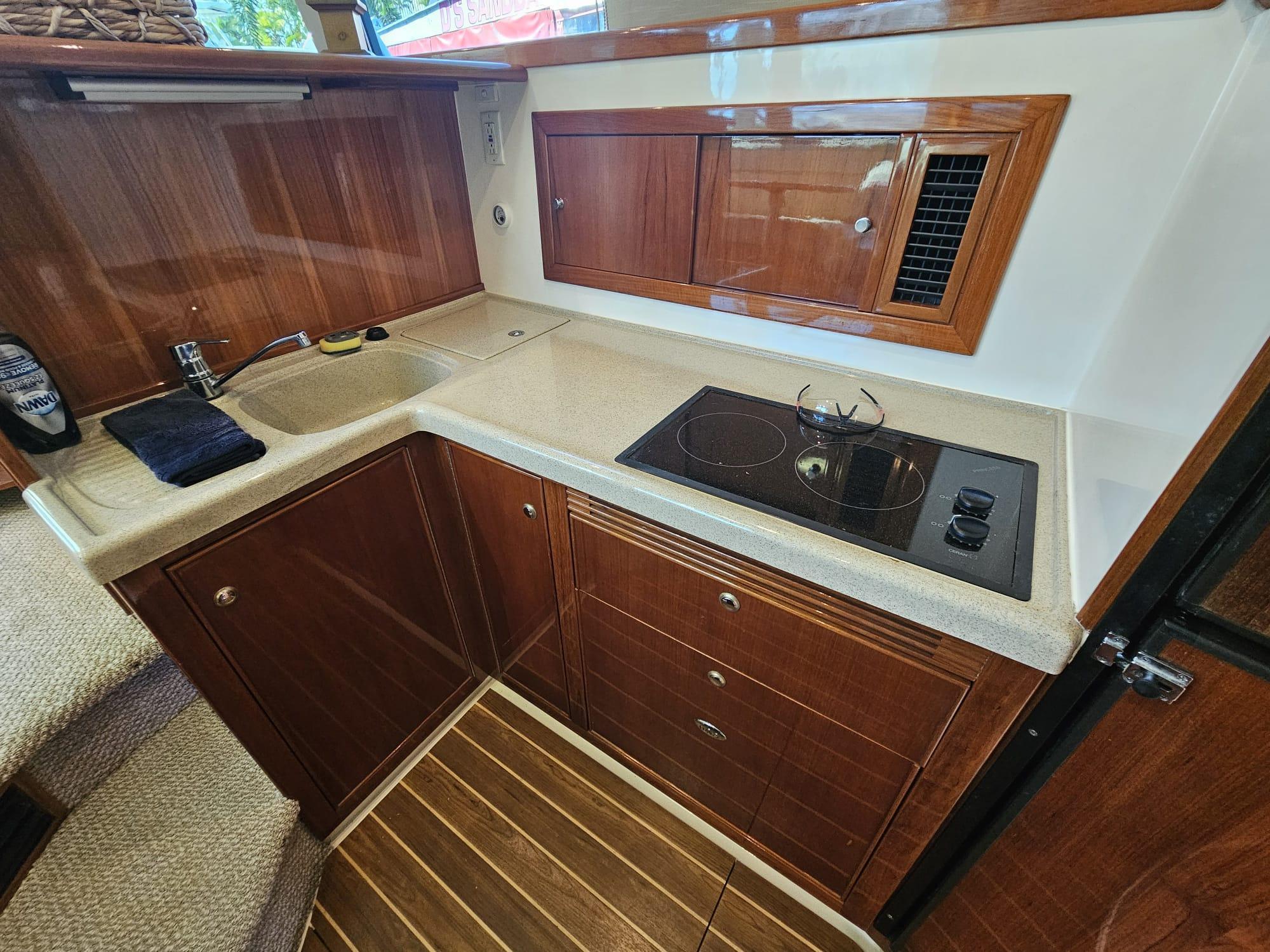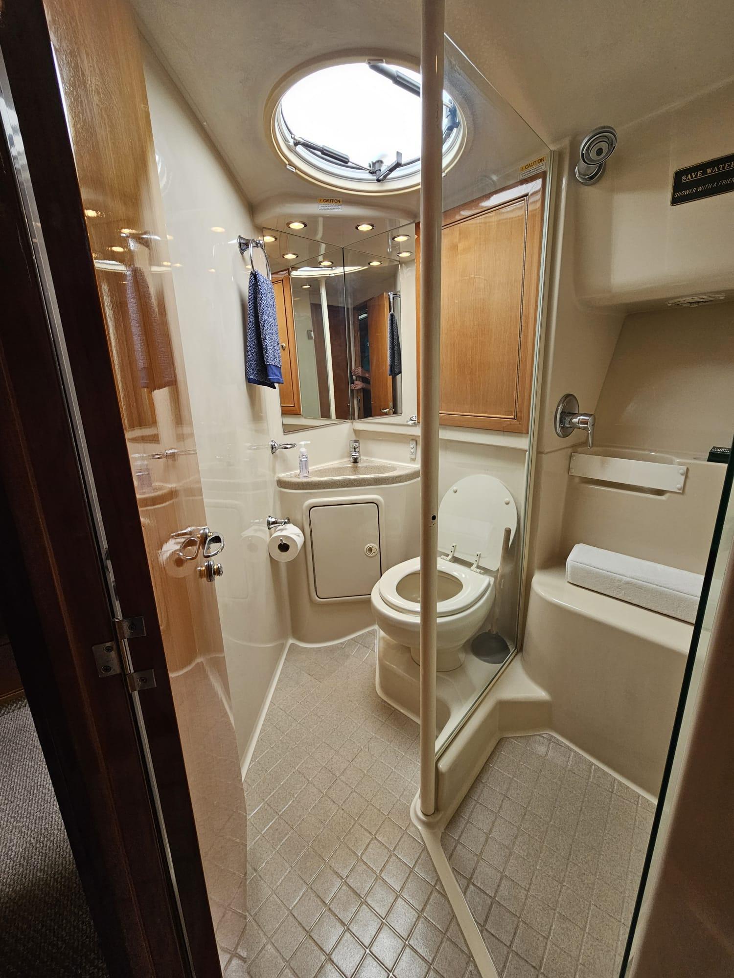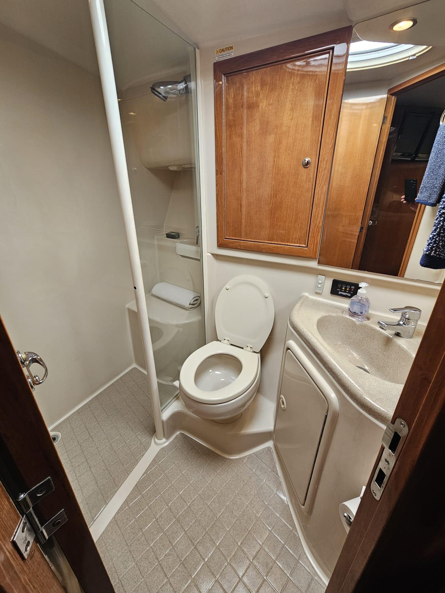 - Queen berth (walkaround) with Innerspring mattress and storage.