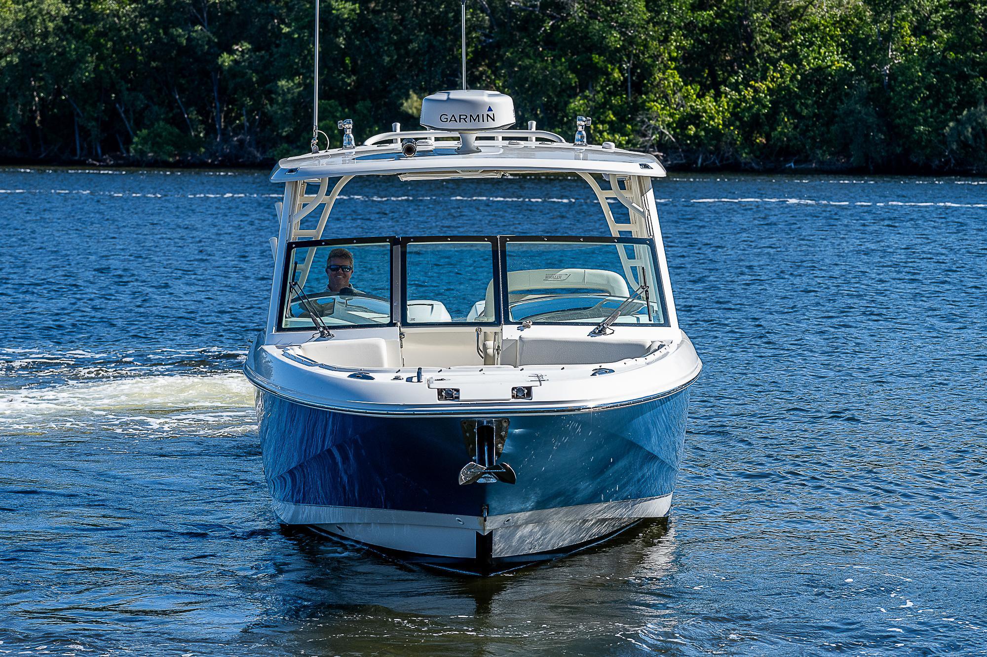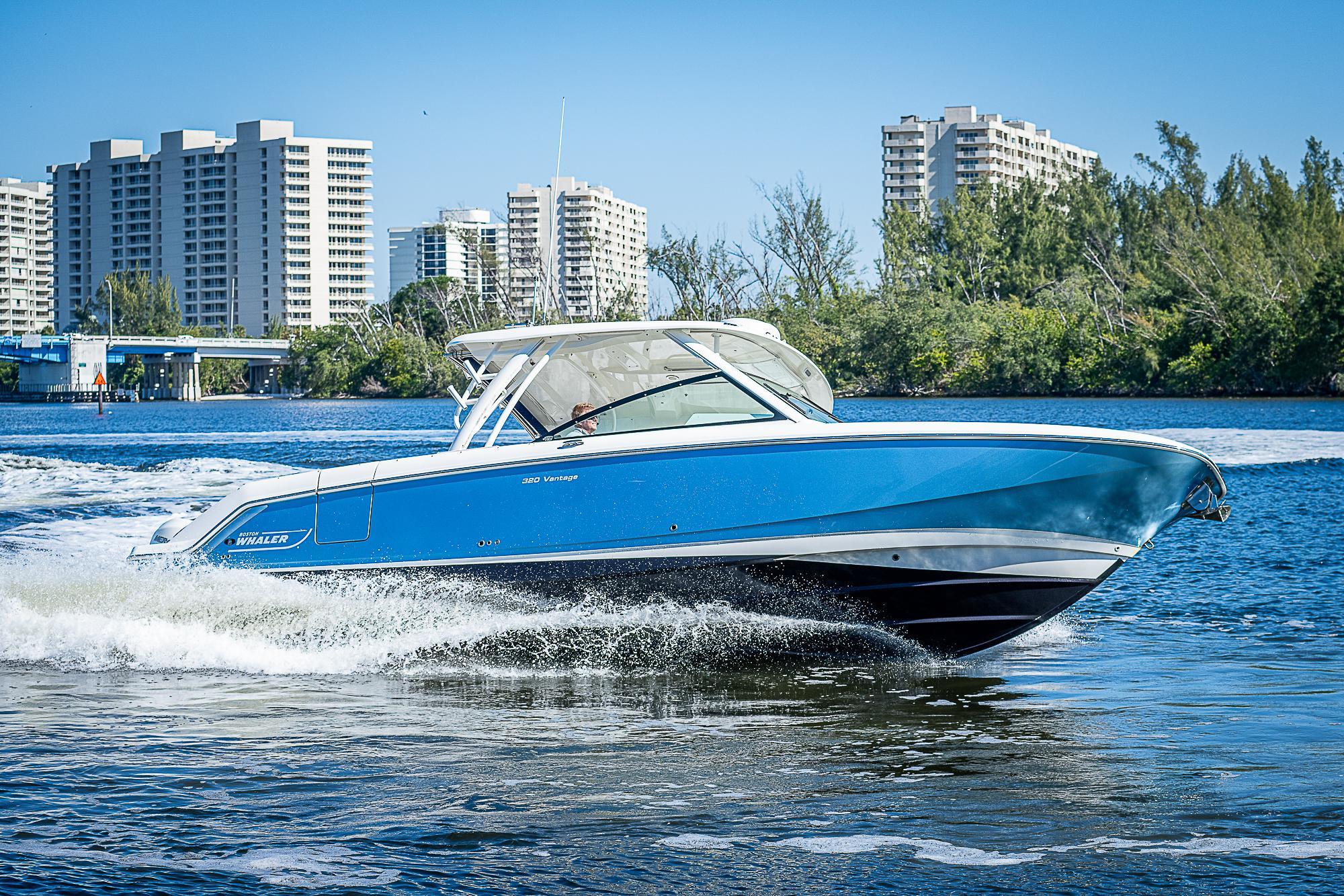 Cutting-edge features, great capacity and easy adaptability are hallmarks of the dual-console 320 Vantage®, winner of the National Marine Manufacturers Association’s 2015 Innovation Award. Rock-solid control meets the ultimate in versatility and comfort with the many accessories and options the 320 provides. Serious fishing, joyful entertaining, day-long watersports or cruising and even a place to sneak in a nap or an overnight stay–the 320 is ready for your day. When the softest, safest ride meets the best equipped dual-console around, new possibilities become eminently possible. With Whaler, you can be confident to the core.