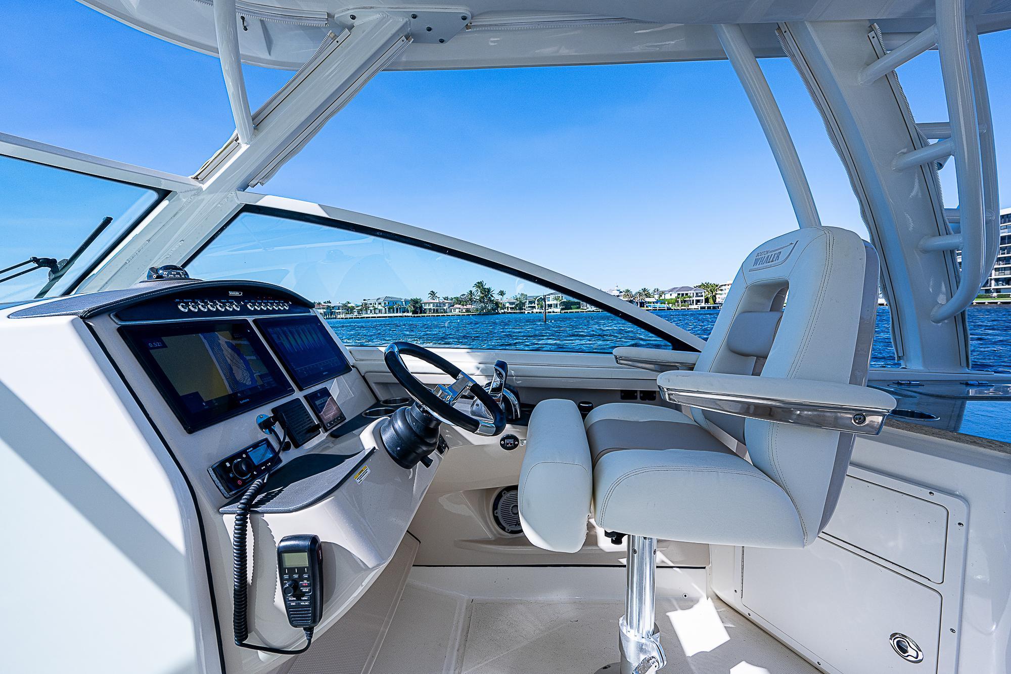 - Deluxe custom helm seat with electric high/low pedestal