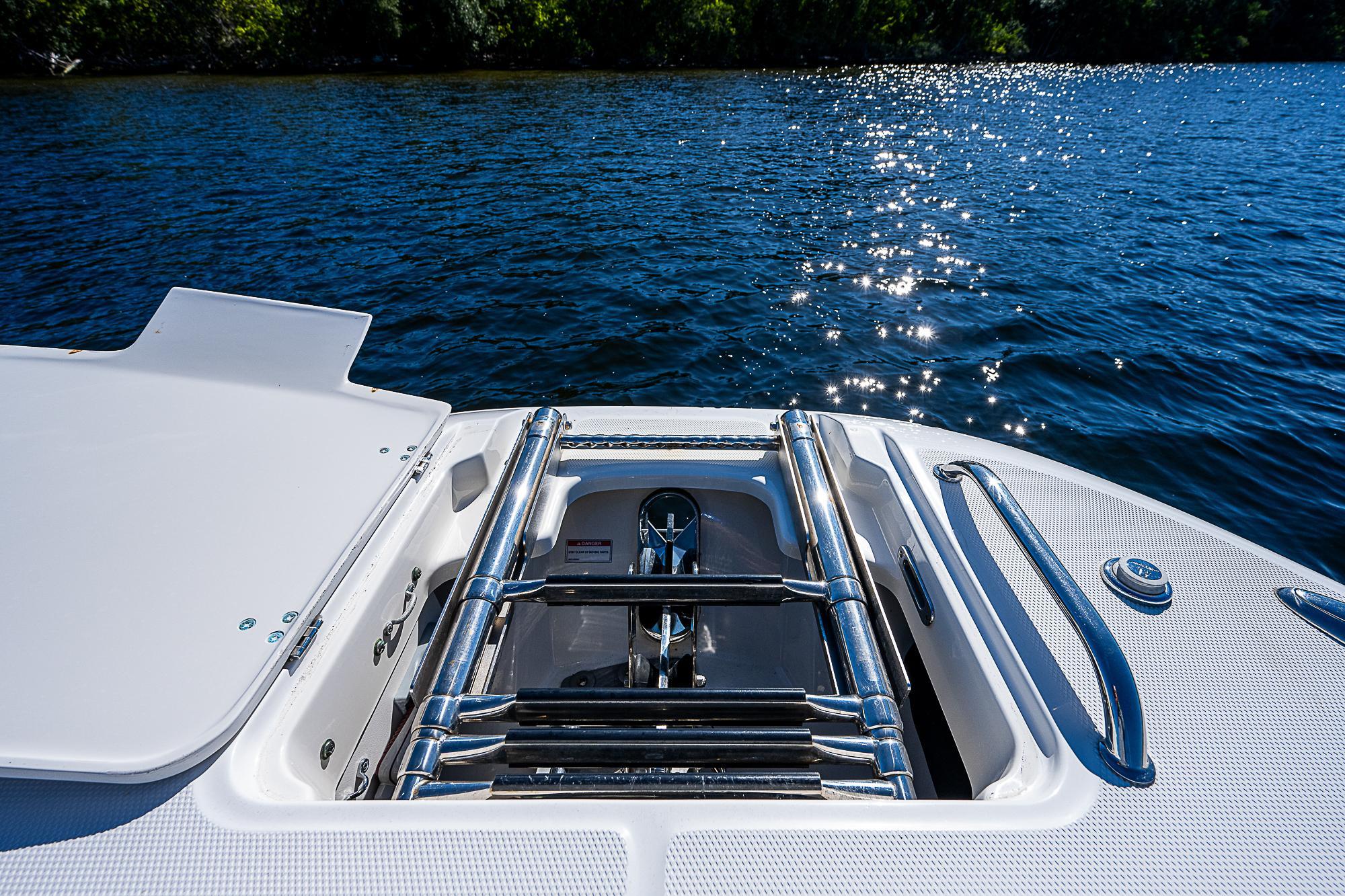 - Molded fiberglass starboard dive/boarding door with removable stainless steel dive ladder