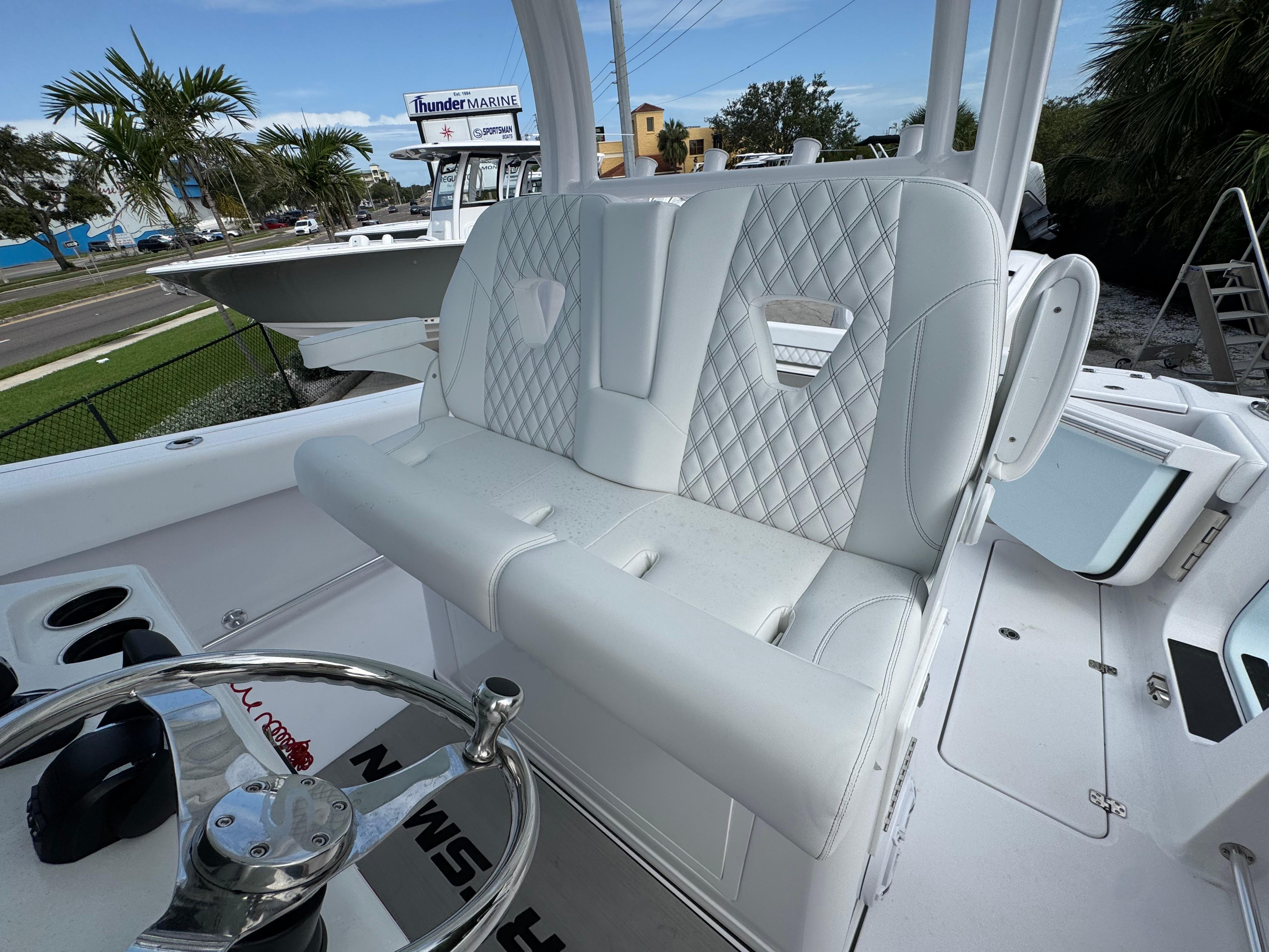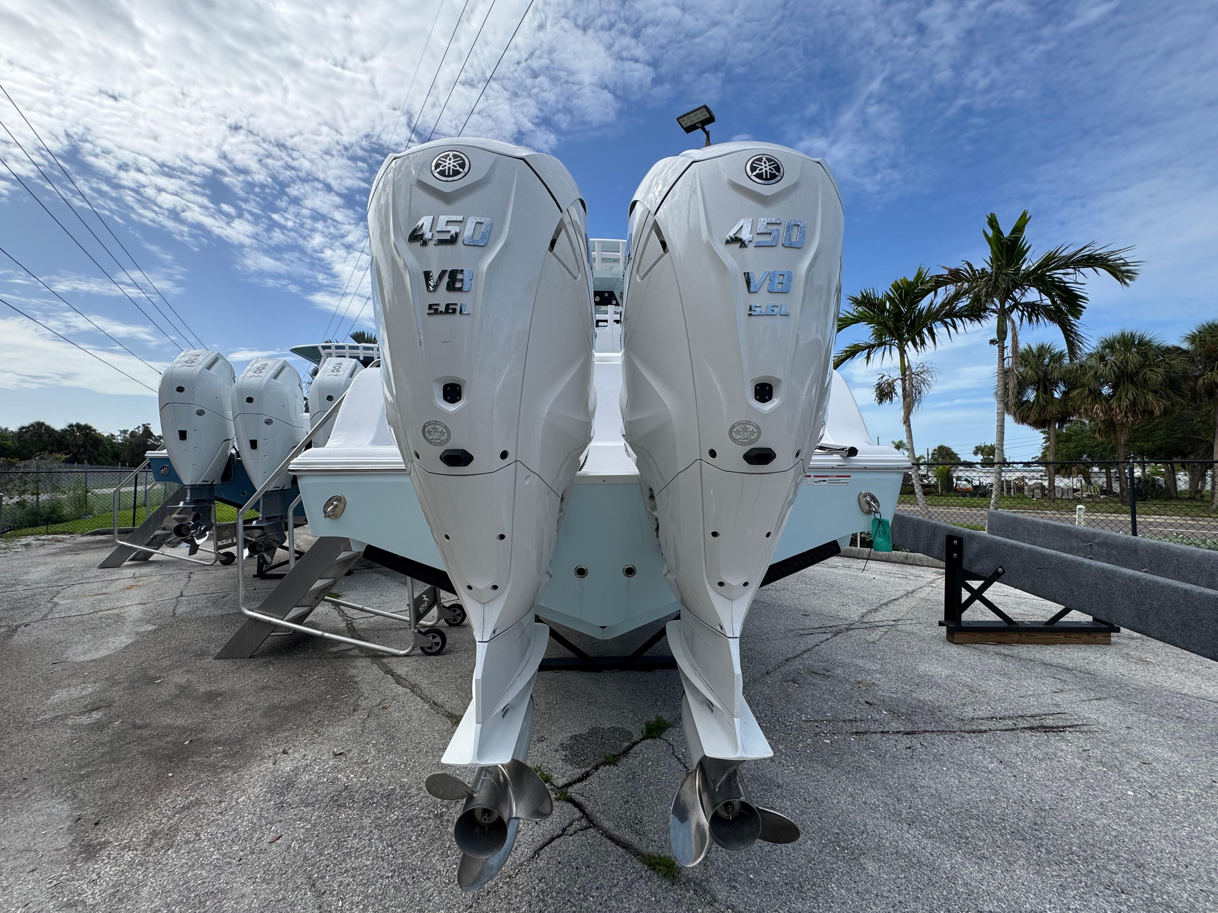 Introducing the stunning 2025 Sportsman Open 322 Center Console, a remarkable vessel that embodies modern boating excellence. With an impressive overall length of 32 feet, this new model features a robust fiberglass hull designed in a sleek Deep Vee shape, ensuring superior performance and stability on the water. Powered by dual Yamaha 450XL outboard engines, this boat delivers exceptional power and efficiency, making it perfect for thrilling adventures or leisurely cruises. The stainless steel 3-blade propellers enhance maneuverability and responsiveness, ensuring a smooth ride. Designed for comfort and convenience, the Open 322 includes a well-appointed head, catering to your onboard needs. This center console is equipped with essential features, making it a fantastic choice for both fishing enthusiasts and family outings. Experience the perfect blend of style, performance, and functionality with the Sportsman Open 322 Center Console, your gateway to unforgettable maritime experiences.