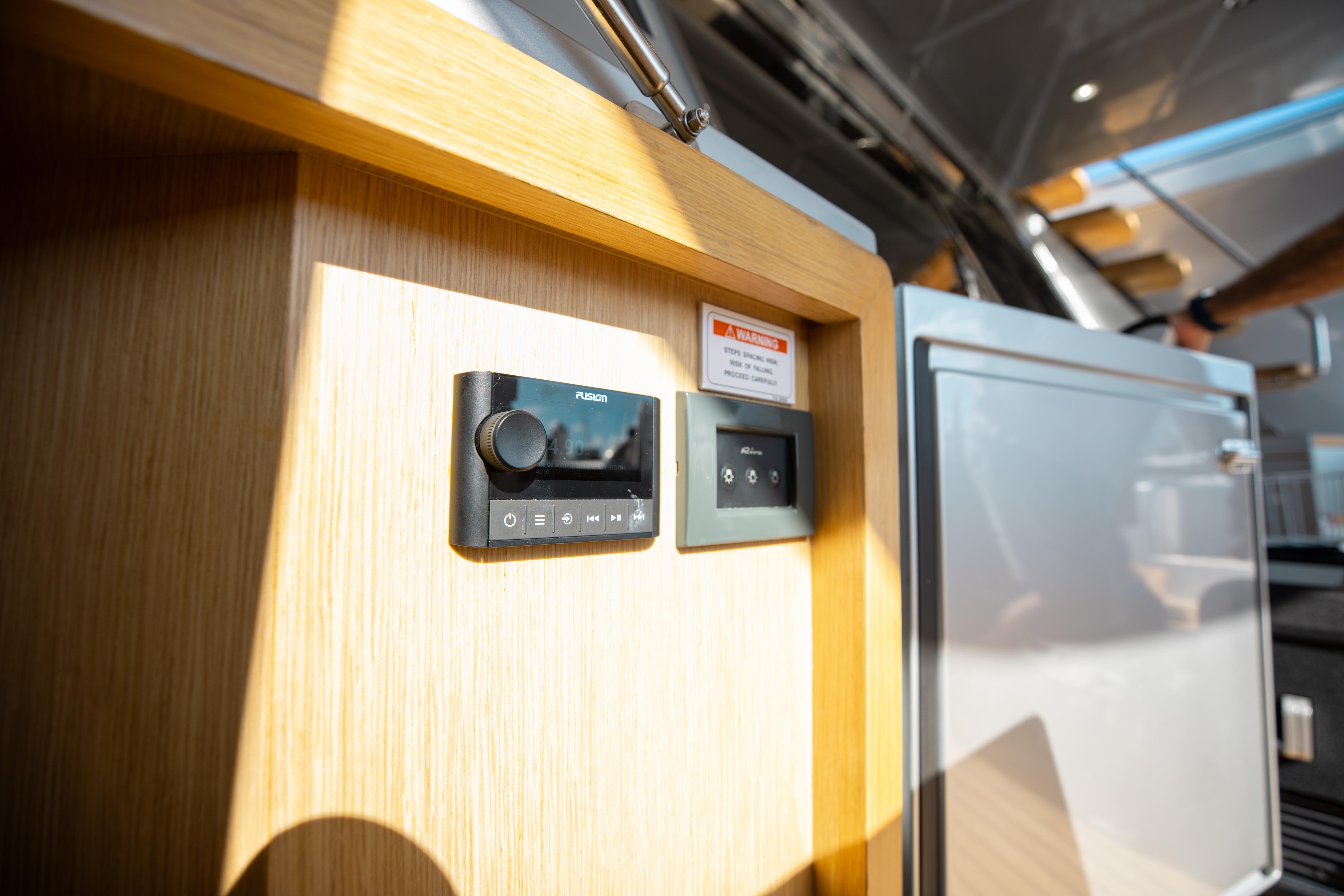 All speakers , grilles and navigation have been custom painted to match the vessel's exterior color scheme, ensuring a seamless integration into the vessel's aesthetics.