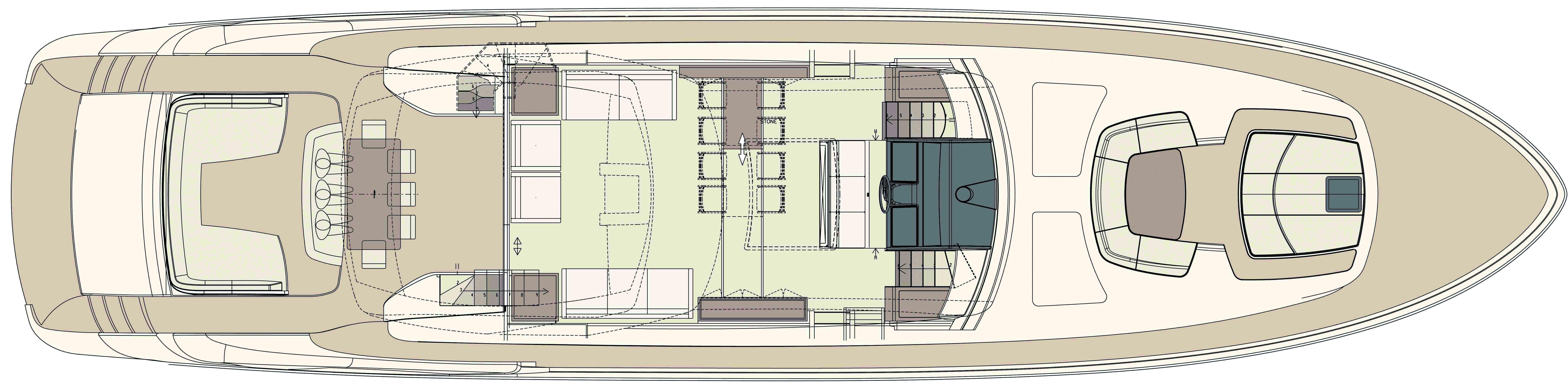 Triple Axiom XL 19 - 18.5" MFD Displays at the Main Lower Helm, and dual Axiom XL 16 - 15.6" MFD Displays at the Flybridge Helm for comprehensive control and display.