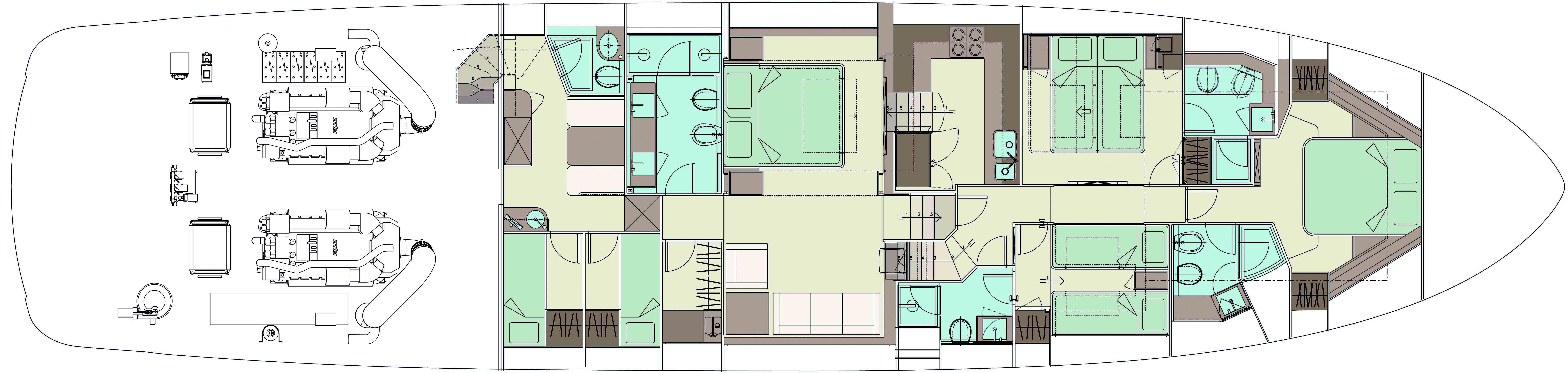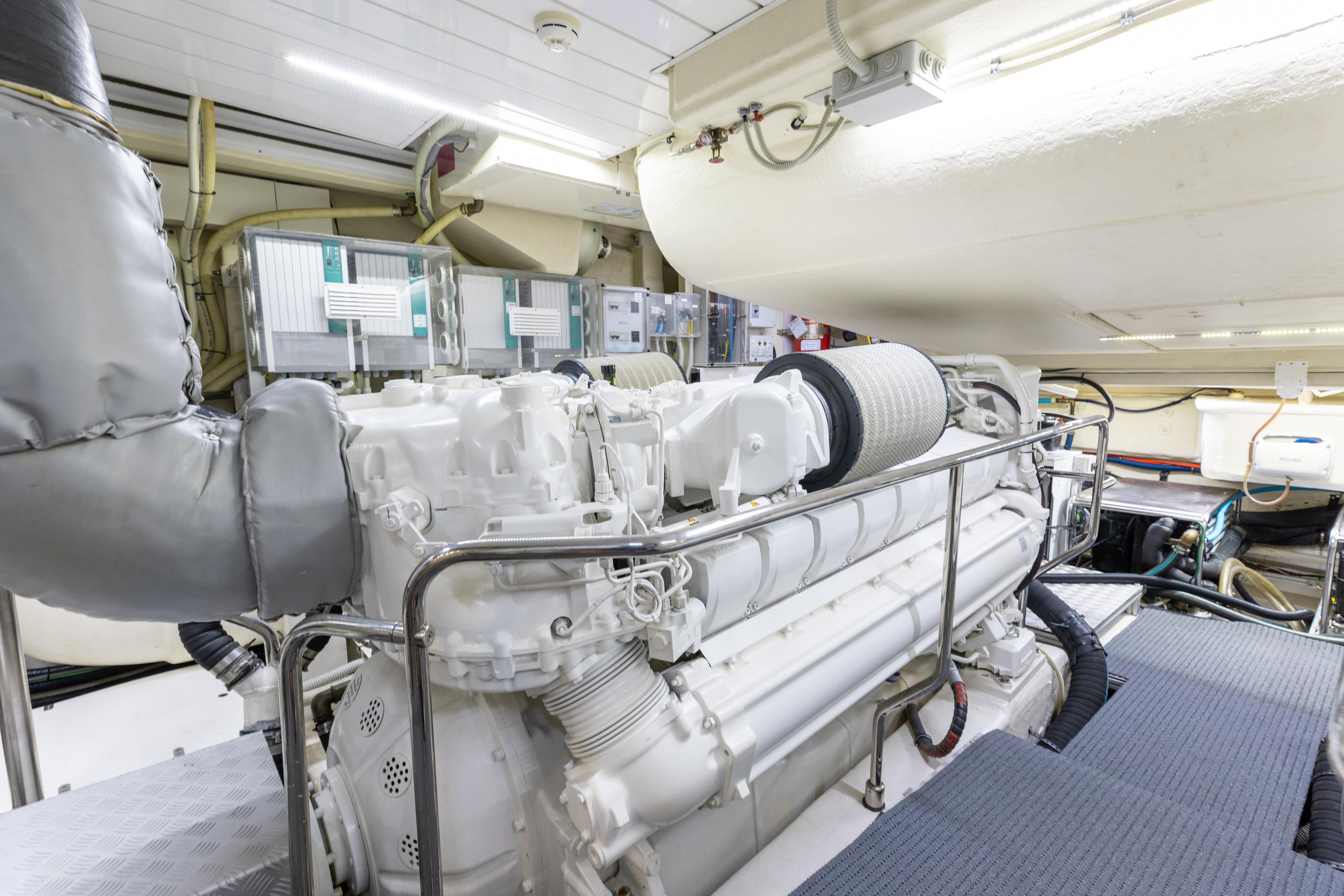 A complete running gear overhaul has been performed, including new cutlass bearings, shaft seals and housings, and reconditioning and dynamically balancing VEEM 5-blade propellers. Shafts have been revised, with full alignment of the engine and running gear achieved.