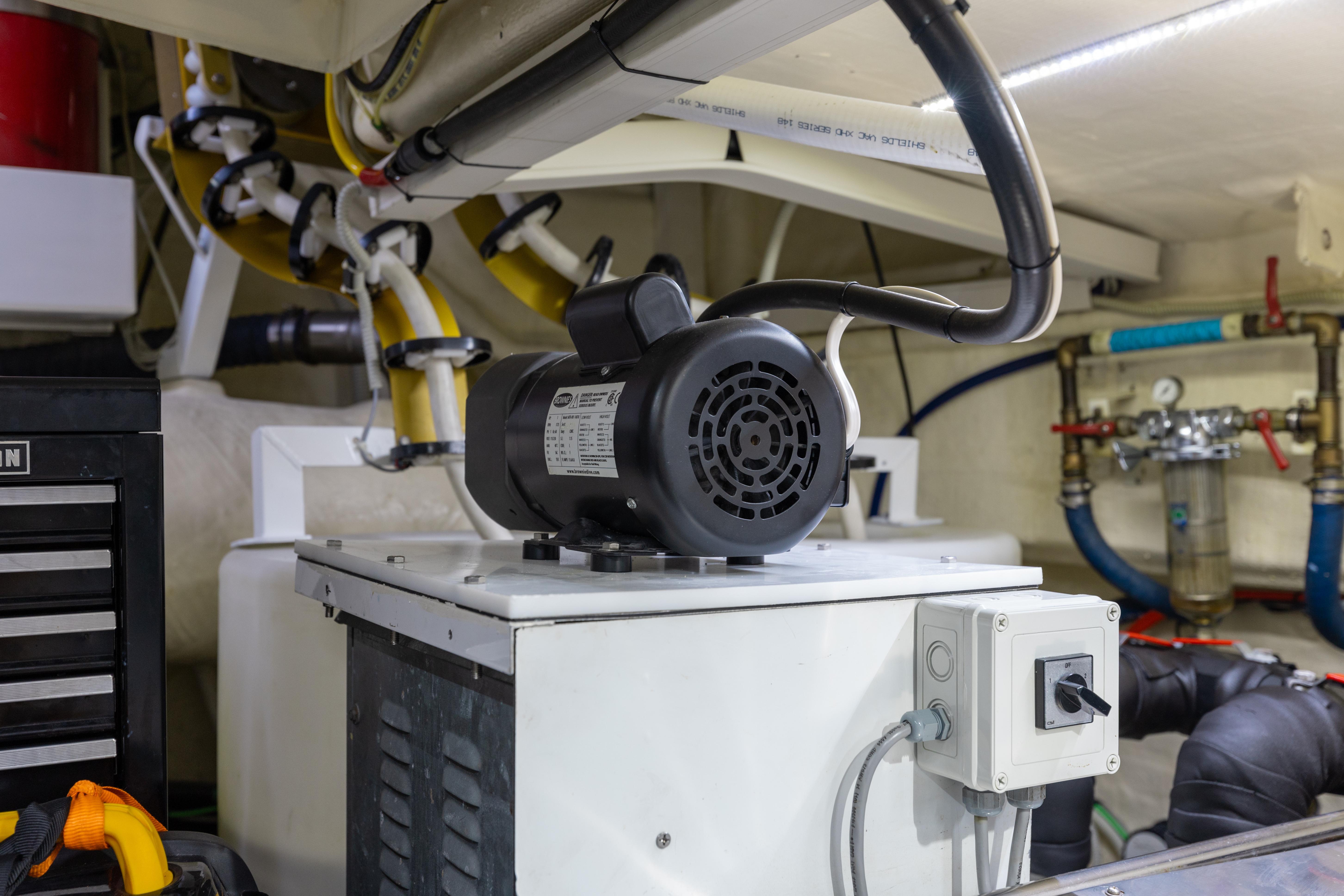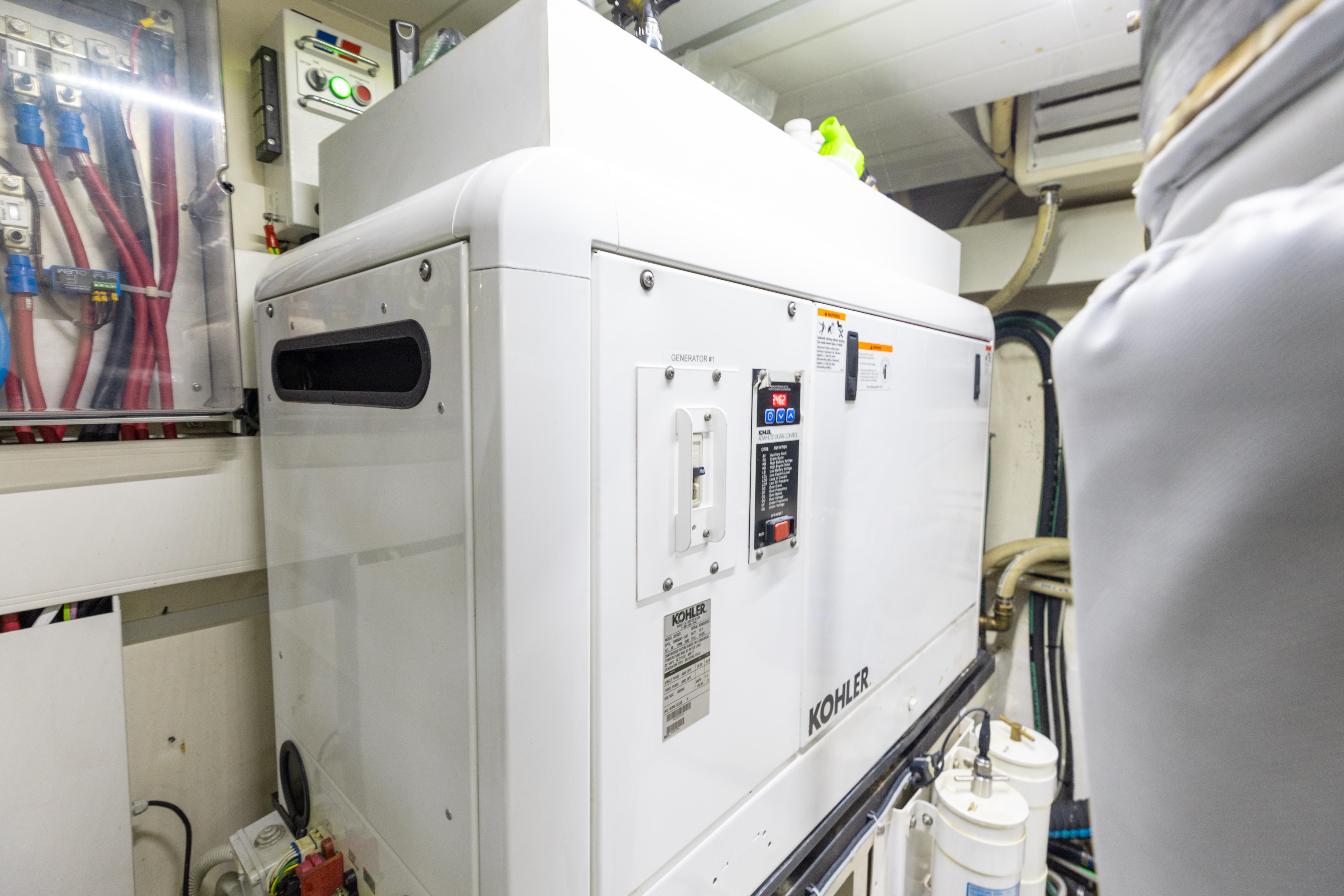 Our Twin KOHLER 32EOZD Generators have been meticulously serviced, receiving new water pumps, heat exchangers, fuel pressure pumps, alternators, and Water/Exhaust Hoses. Both generators have also had all-new insulation in their sound shields. Port generator now has 2640 hours, and starboard generator has 2462 hours.