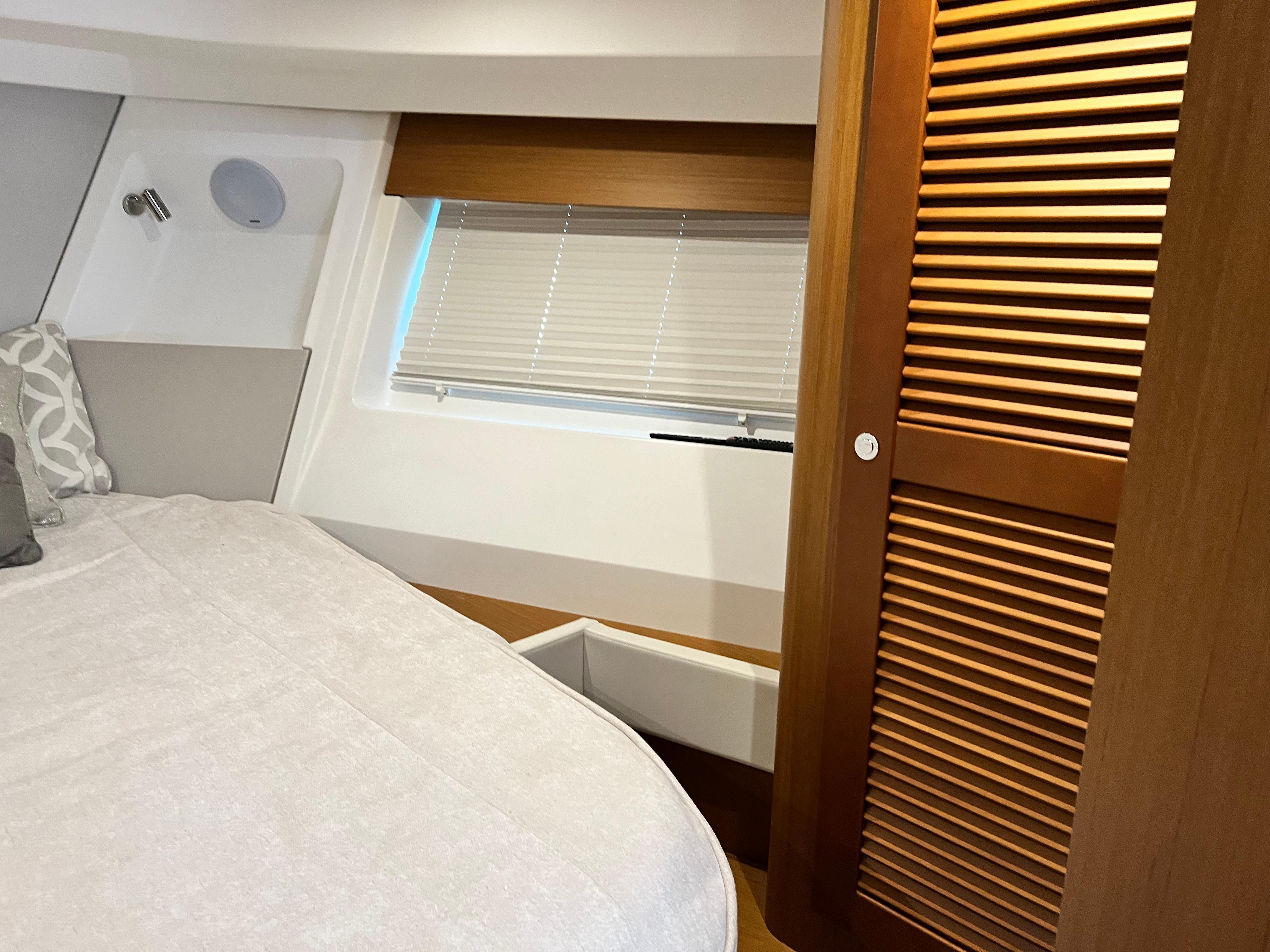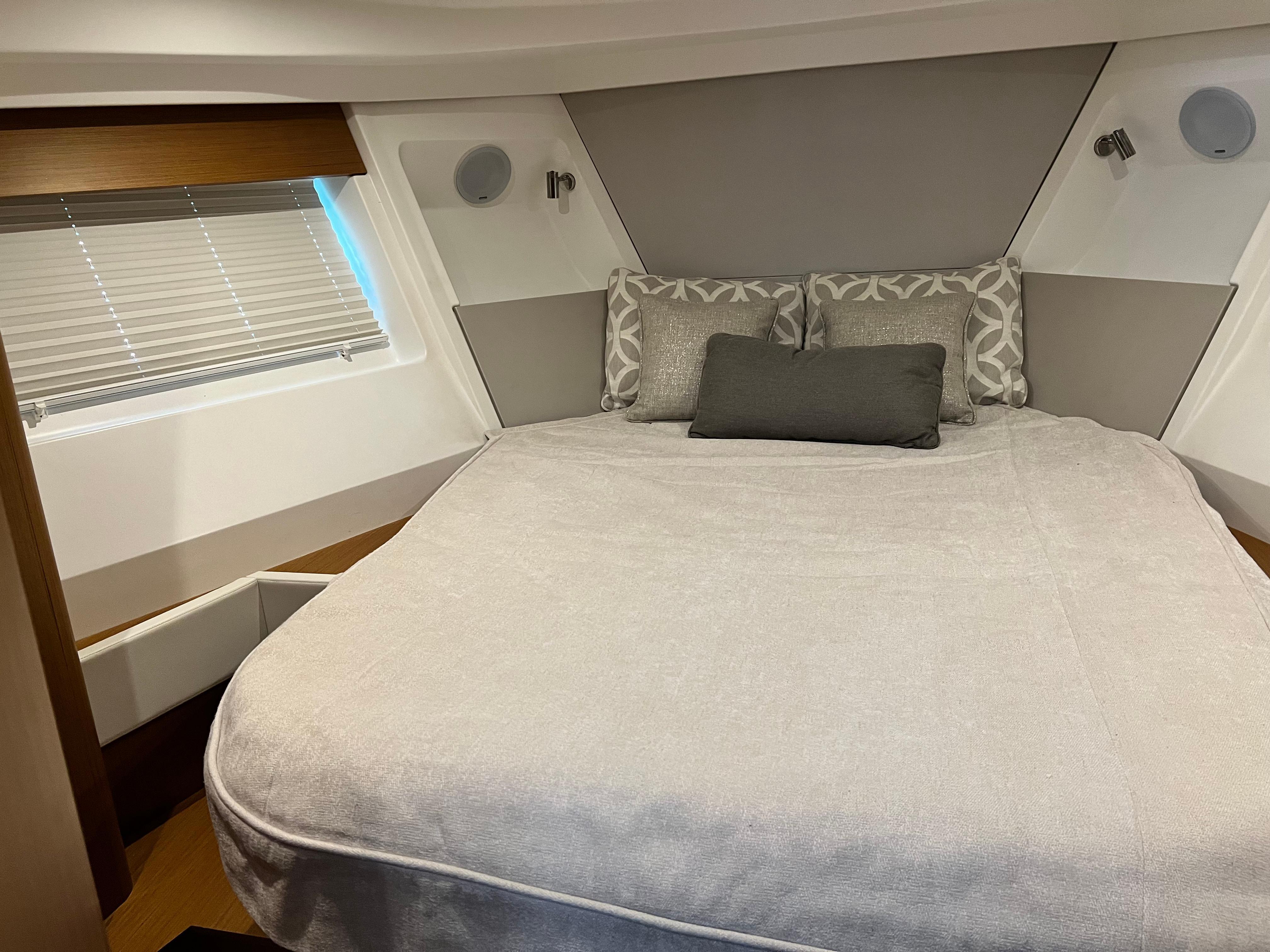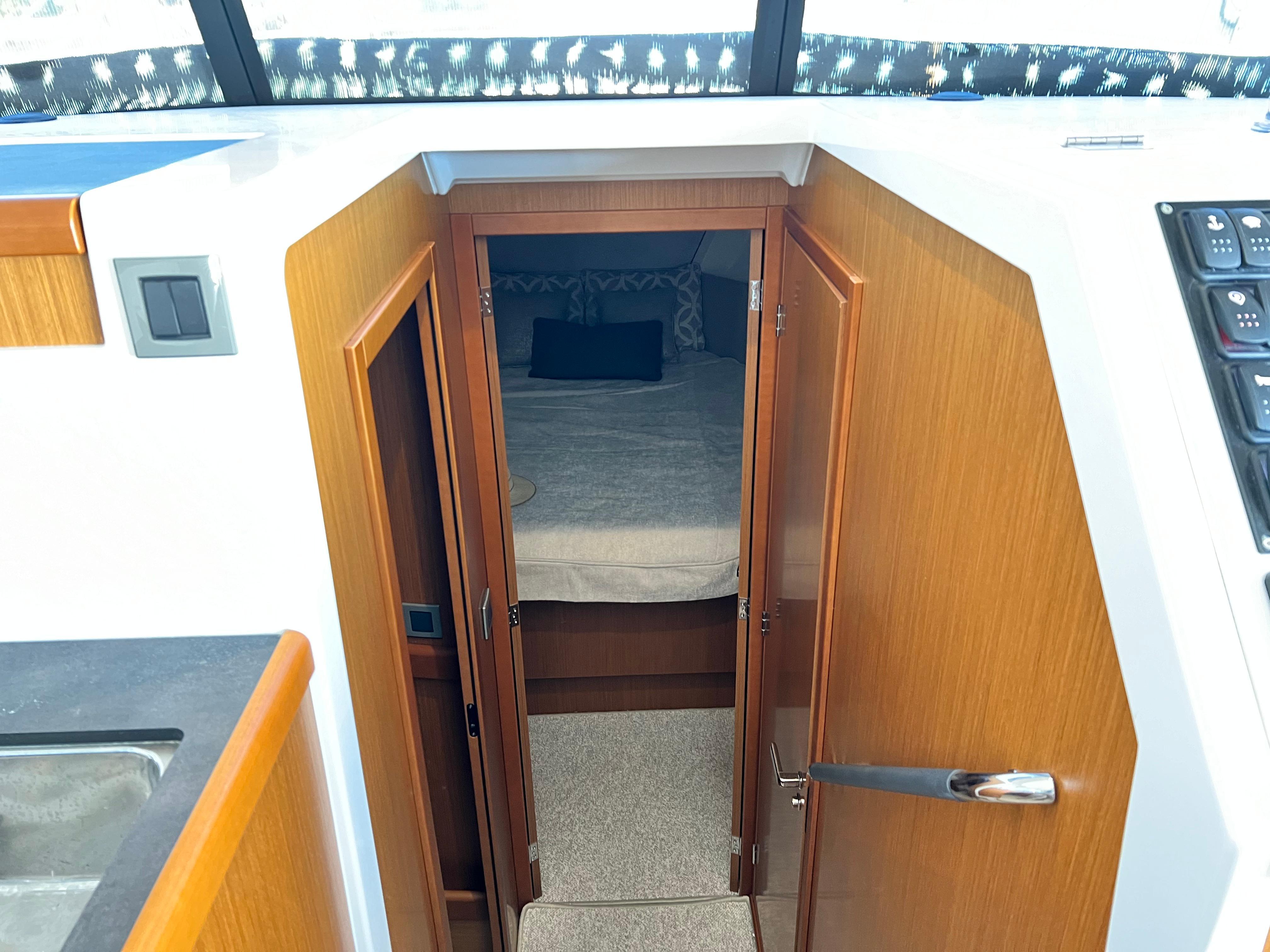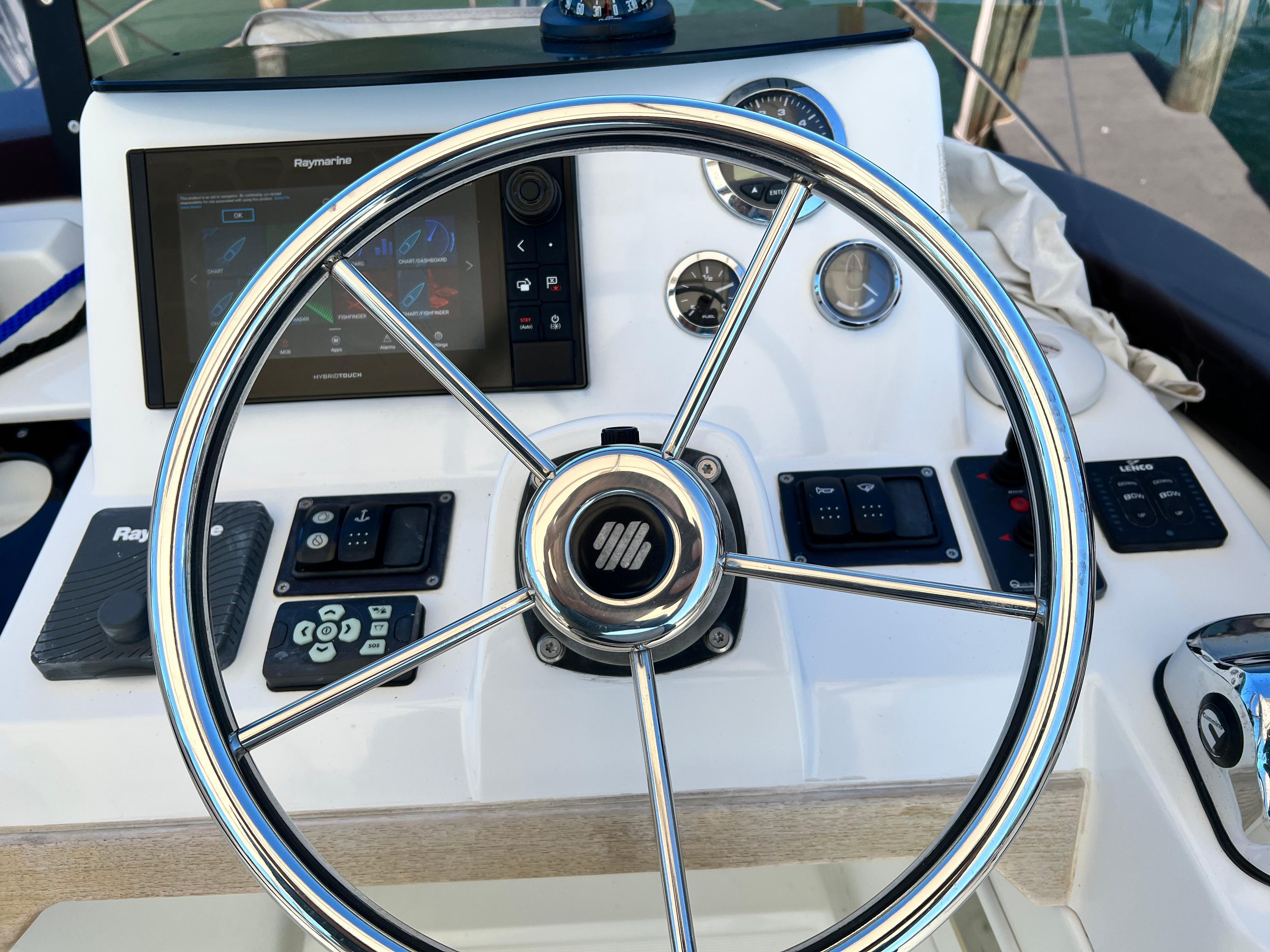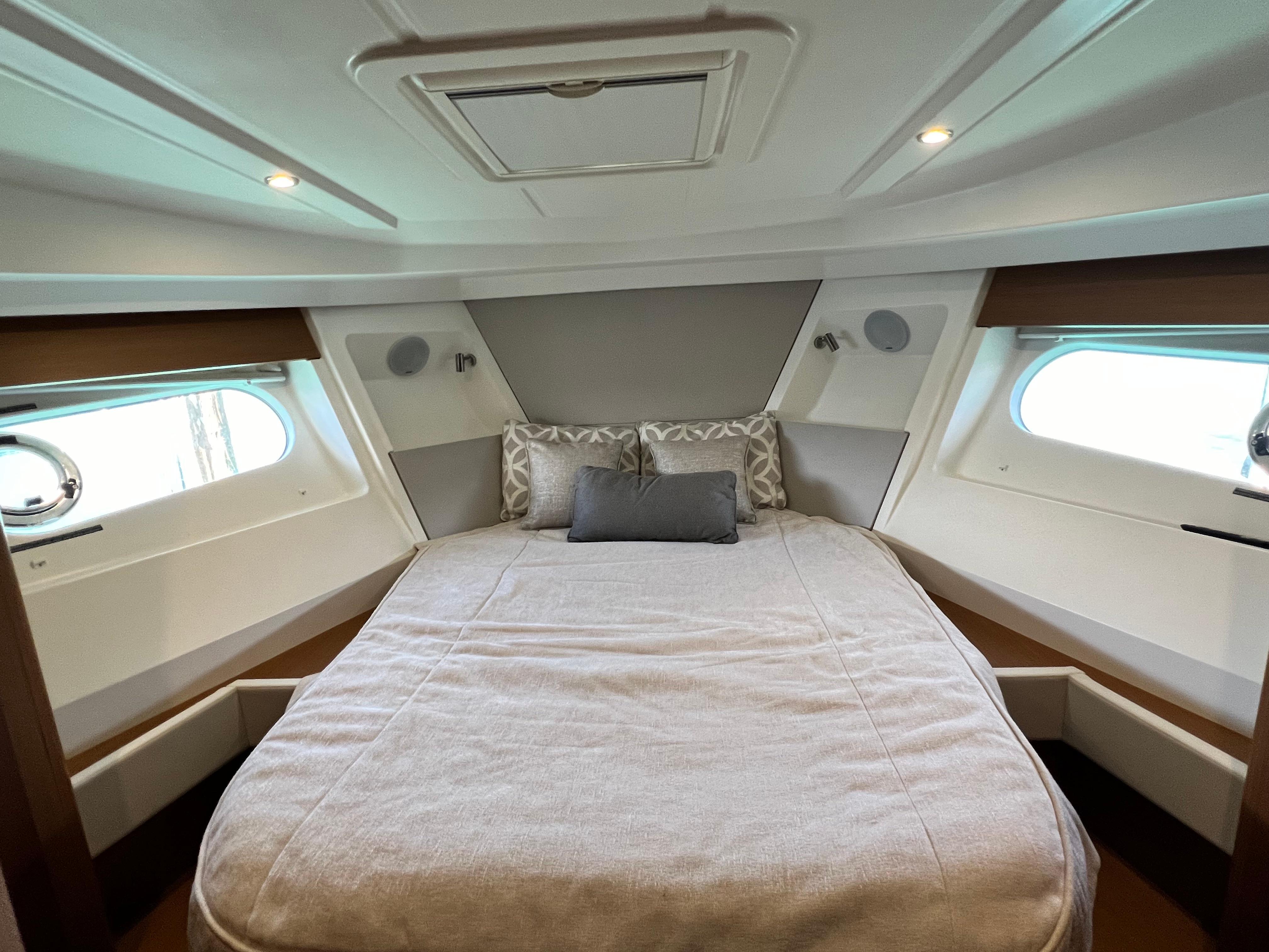 The Swift Trawler 35 has strong harmonious lines making you feel reassuringly safe, and this quality is repeated in the design and fit out choices. Built on a semi-planing hull developed through the expertise of Beneteau Power, the Swift Trawler 35 has a Cummins 425 hp engine, and together they procure pleasure underway and offer easy manoeuvring. Protected by either a Bimini or a soft top, the Swift Trawler 35's flybridge has a comfortable living space with a sea view.